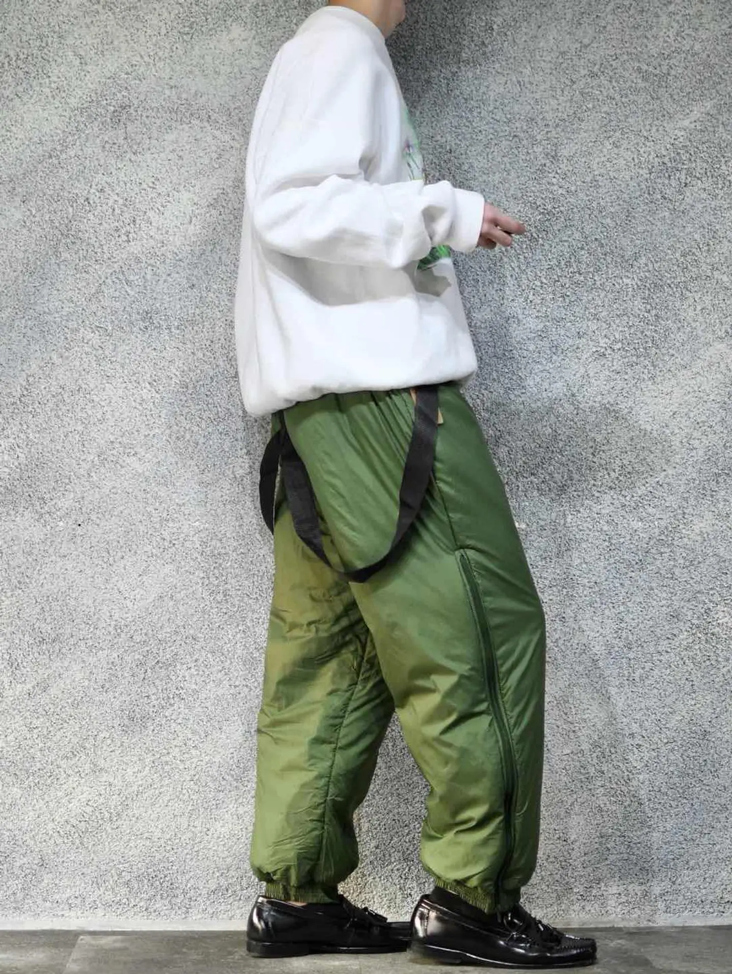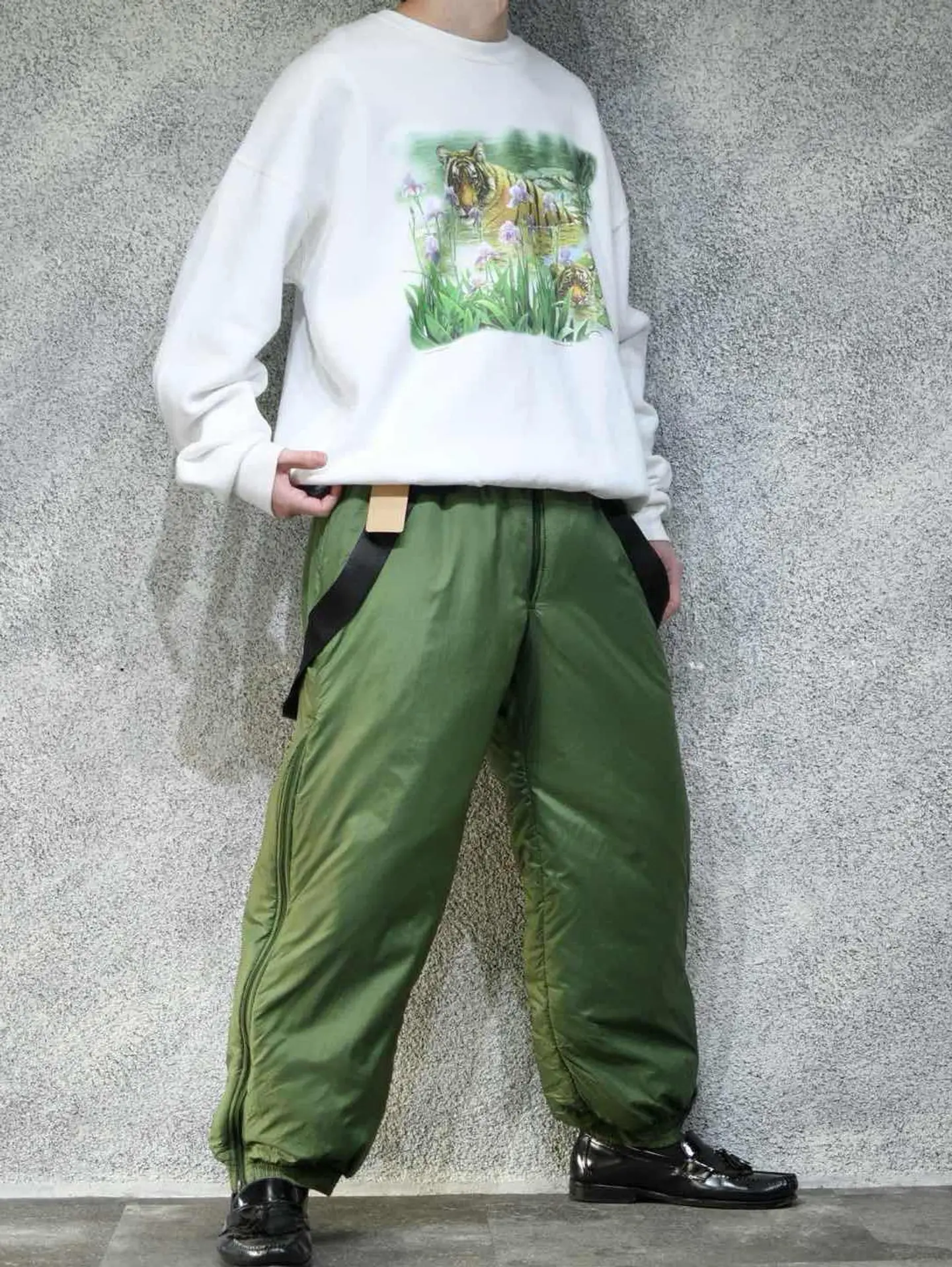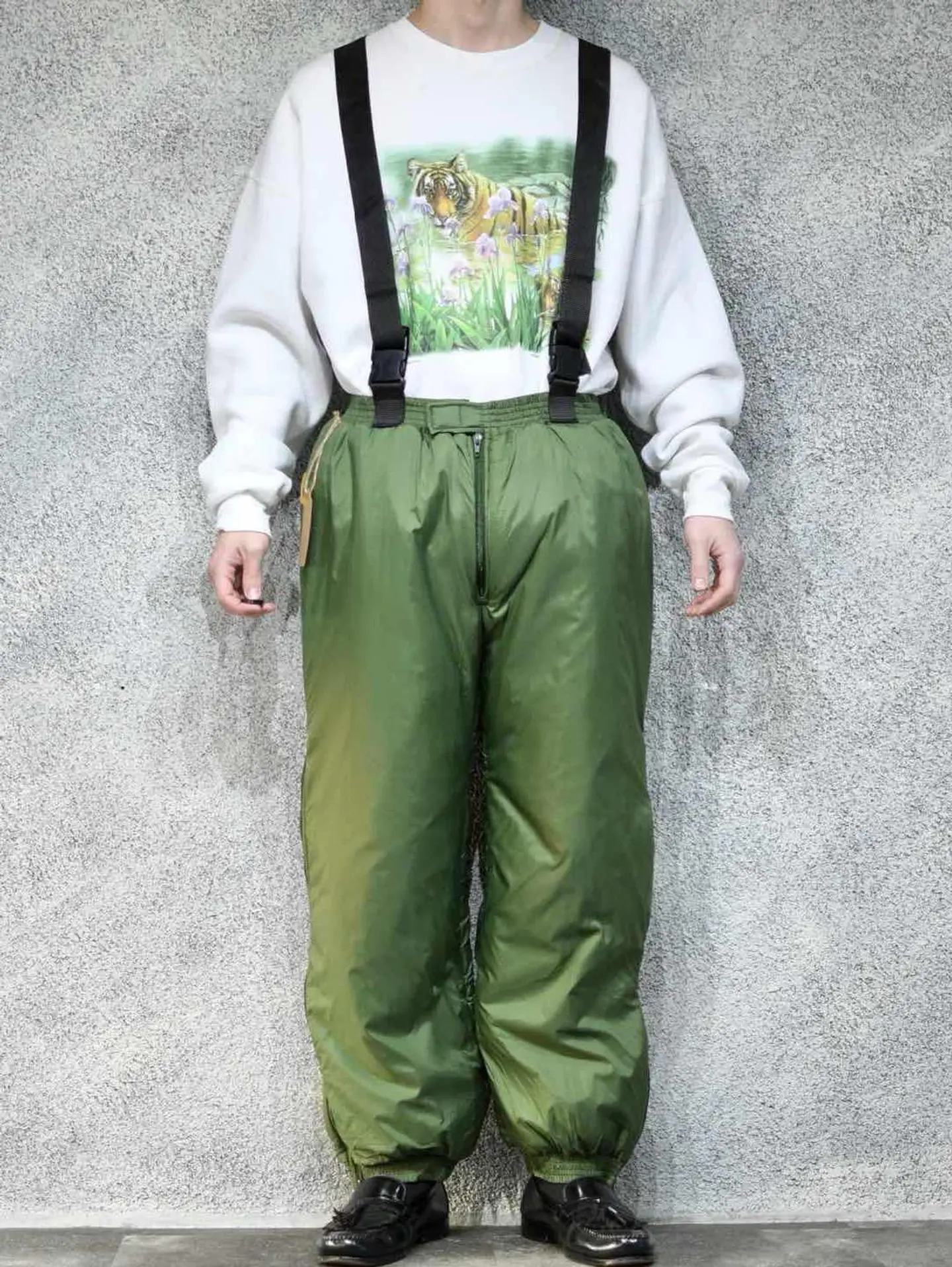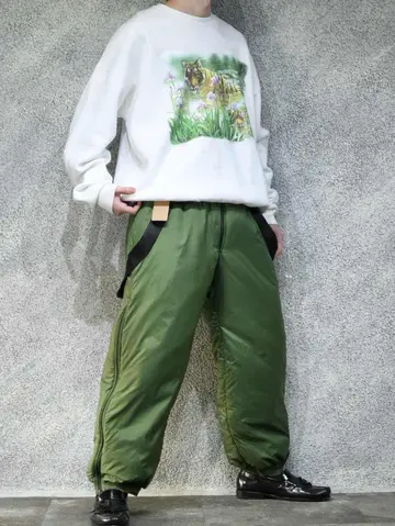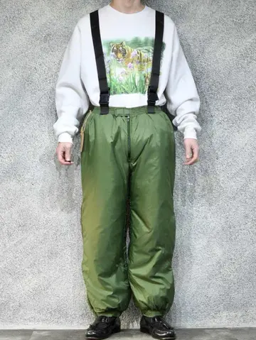 ウエスト72cm~110cm(ウエストゴム) 総丈~146cm 股下70cm わたり41cm 裾幅19cm~27cm(ゴム) fabric/polyamide 着用画像 177cm/64kg あまり見ないミリタリーですが、 こちらルーマニア軍より。 ダウンの様なオーバーパンツと言えば、 伝わり易いかと思います。 ウエストにはゴムが入り、肩のベルトを降ろしても 履けるのがポイント。 降ろして履くことでアクセントにもなり、 その上から同じ生地感のブルゾンなんかを着ると もう完成です。 暖かく、可愛く。 古いミリタリーの方が、評価されがちですが 年代の若いミリタリーでも、こんな可愛いやつ。 あるんです。 ※撮影状況により、実物と多少色が異なる場合が ございます。 ※古着を取り扱っているため、気づかない汚れや ほつれ等がある場合がございます。 予めご了承ください。 ※お値下げに関しましては、プロフィールを ご覧下さい。 ※サイズは着用感で選んでおり、表記サイズではございません。 古着 オーバーサイズ old vintage ヴィンテージ used 80's 90's アメリカ古着 ユーロ古着 メンズ レディース POLO RALPH LAUREN Eddie Bauer OLD GAP Eddie Bauer LANDS' END ランズエンド LLBean エルエルビーン オールドギャップ エディーバウアー ラルフローレン ブルックスブラザーズ Brooks Brothers カーキ 緑 グリーン ミリタリー アメリカ軍 usarmy イタリア軍 イギリス軍 フランス軍 スウェーデン軍 チェコ軍 などがお好きな方 #vintage #オーバーサイズ #old #used #90s #80s #古着 #ヴィンテージ #アメリカ古着 #ユーロ古着 #古着男子 #古着女子 #LLBean #エルエルビーン #EddieBauer #エディーバウアー #oldgap #オールドギャップ #LANDSEND #ランズエンド #NAUTICA #ノーティカ #ラルフローレン #POLORALPHLAUREN #ブルックスブラザーズ #BrooksBrothers #ミリタリー #ルーマニア軍 #オーバーパンツ #オーバーオール