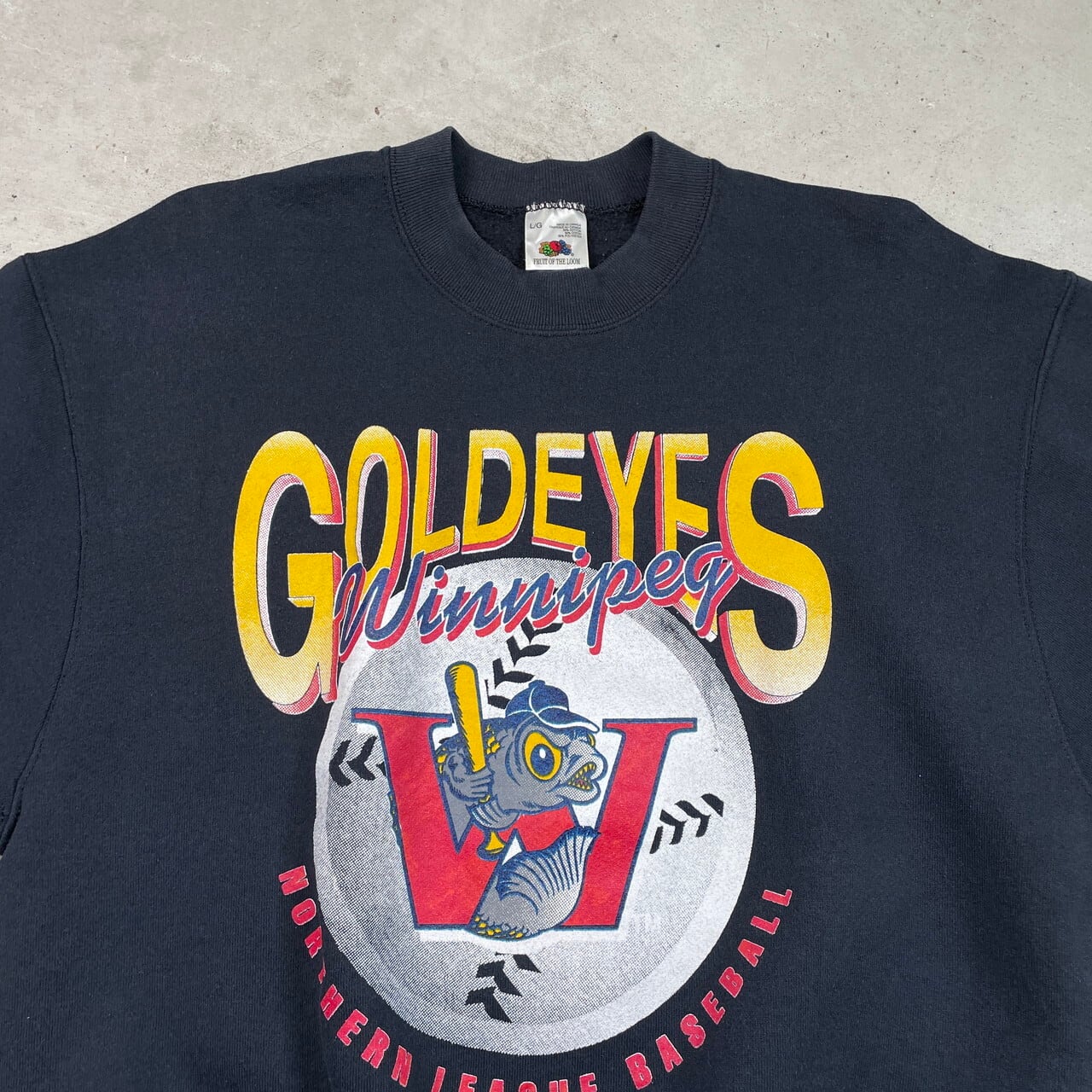 ■90年代 WINNIPEG GOLDEYES スウェットシャツ チームロゴプリント アニマル 魚 メンズL 古着 90s ヴィンテージ VINTAGE プロ野球独立リーグ トレーナー 黒【スウェット】/ブラック 【ブランド】FRUIT OF THE LOOM フルーツオブザルーム 【サイズ】表記 L ※計測値をご確認ください。 着丈…68 身幅…57 肩幅…57 袖丈…59.5 【生産国】カナダ製 【素材】コットン50% ポリエステル50% 【状態】多少のフェード等の使用感はございますが、 目立った汚れやダメージ等は無くまだまだ長く愛用していただけます。 画像にてご確認ください。 【c250226012】 ※古着は洗濯、検品などのケアを行っております。(新品・デッドストックは洗濯していません。) ※モニターの発色により実物と異なる場合がございます。予めご了承ください。 ※ 海外直輸入USED品になります。