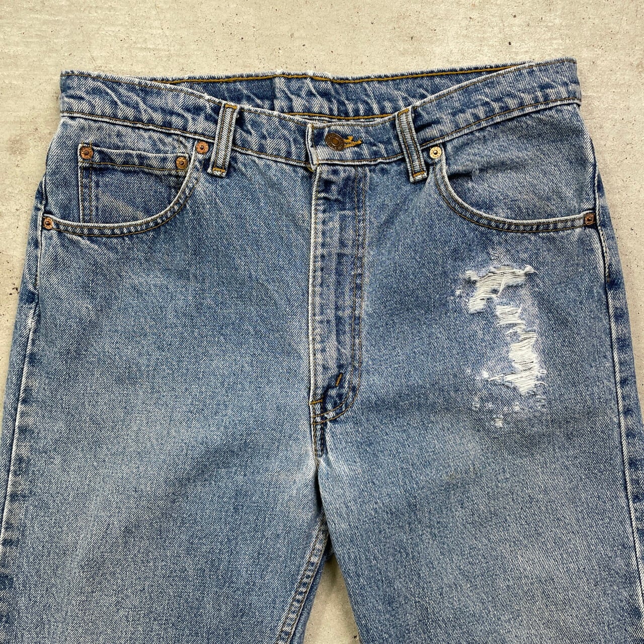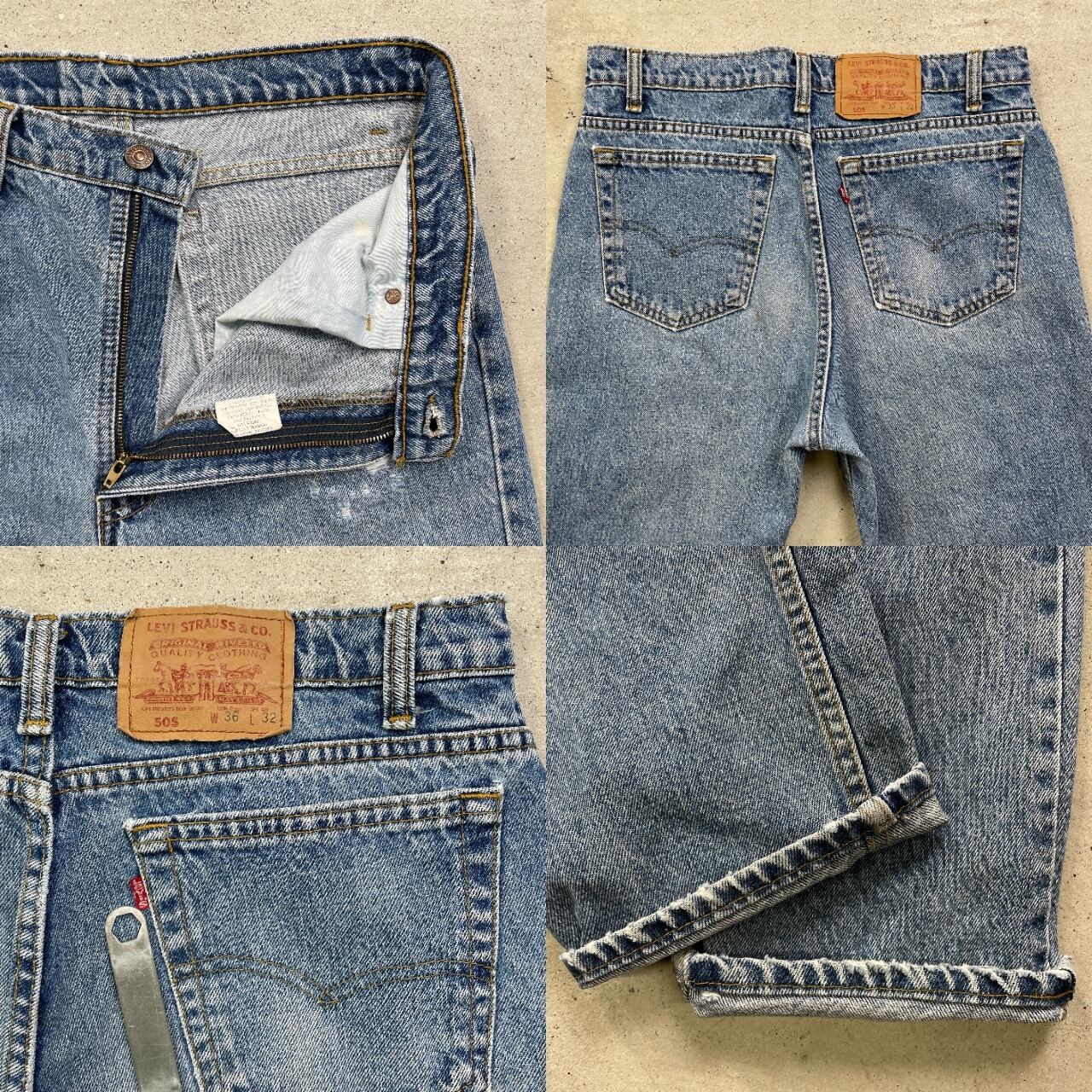 ■ 90年代 Levi's リーバイス 505 テーパード デニムパンツ メンズW33相当 古着 アメカジ 90s ヴィンテージ VINTAGE ジーンズ 【デニムパンツ】/ブルー 【ブランド】Levi's リーバイス ボタン裏刻印:216 【サイズ】表記 W36 L32(実寸W33相当) ※計測値をご確認ください。 ウエスト(平置き×2)…84 ワタリ幅…29 股上…31 股下...83 裾幅…19 【生産国】不明 【素材】コットン100% 【状態】ポケット裏に汚れ、ウエスト部分・左ポケット・裾などに生地擦れ、 左太もものクラッシュ部分にリペアが施されています。 画像にてご確認ください。 【c250225153】 ※古着は洗濯、検品などのケアを行っております。(新品・デッドストックは洗濯していません。) ※モニターの発色により実物と異なる場合がございます。予めご了承ください。 ※ 海外直輸入USED品になります。