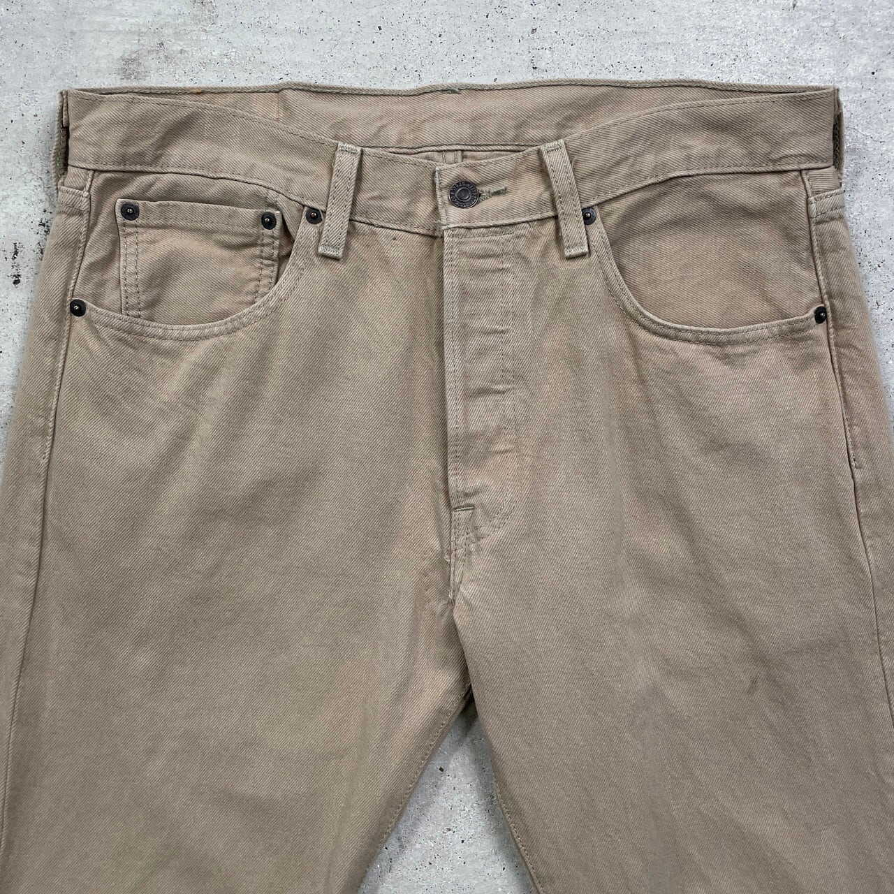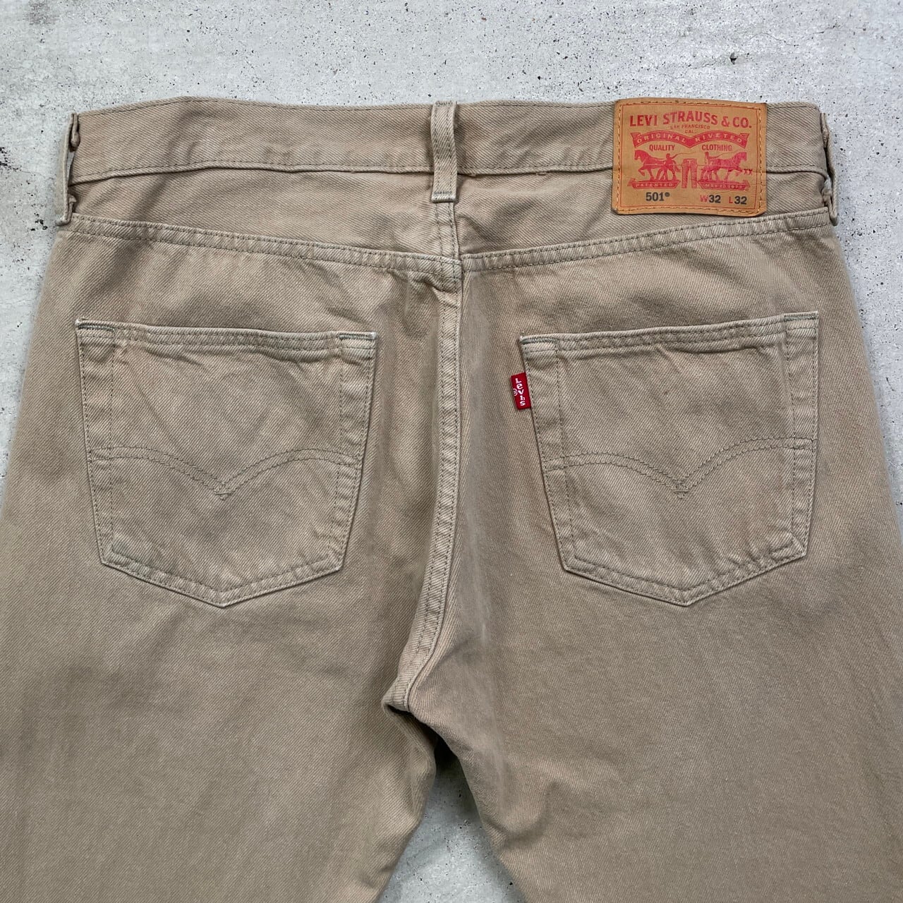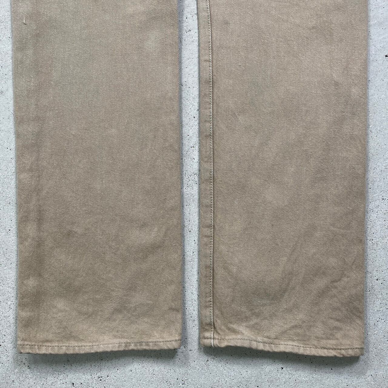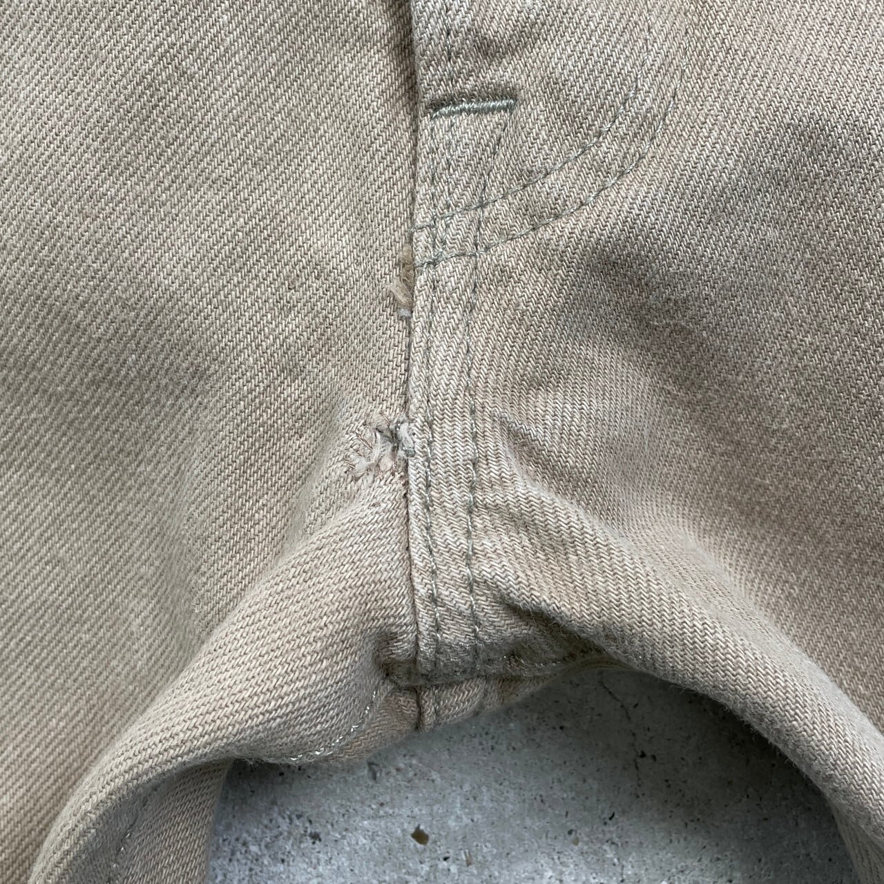 ■Levi's リーバイス 501 ストレート カラーデニムパンツ メンズW33相当 古着 アメカジ ジーンズ チノパン【デニムパンツ】/ベージュ 【ブランド】Levi's リーバイス 【サイズ】表記 W32 L32 実寸W33相当 ※計測値をご確認ください。 ウエスト(平置き×2)…84 ワタリ幅…27 股上…27 股下...82 裾幅…19 【生産国】不明 【素材】不明 おそらくコットンかと思われます。 【状態】左太もも付近・裾付近などに汚れ」、股部分にリペア跡が御座います。 画像にてご確認ください。 【c250225152】 ※古着は洗濯、検品などのケアを行っております。(新品・デッドストックは洗濯していません。) ※モニターの発色により実物と異なる場合がございます。予めご了承ください。 ※ 海外直輸入USED品になります。