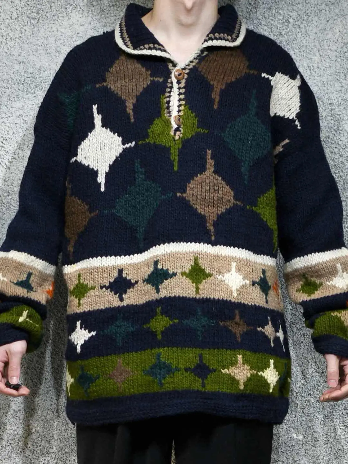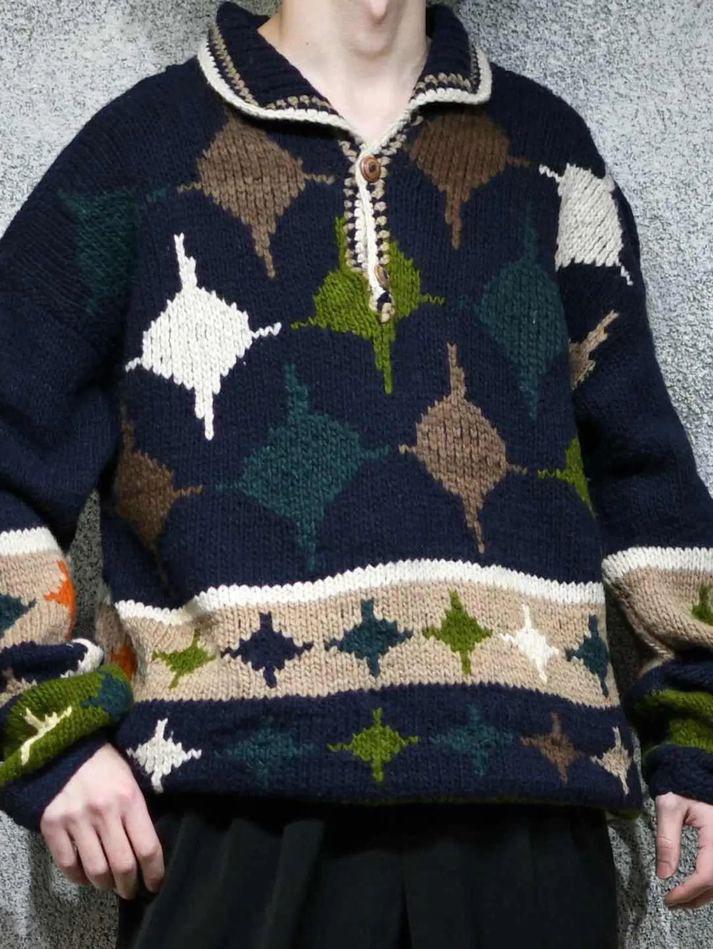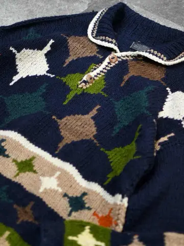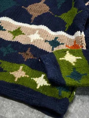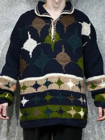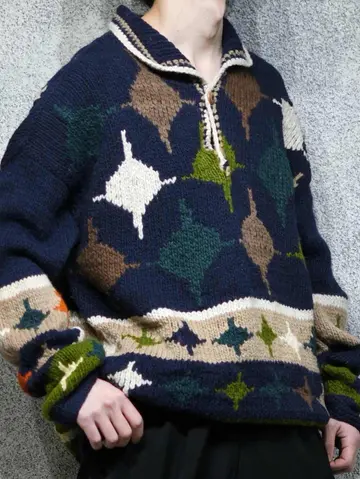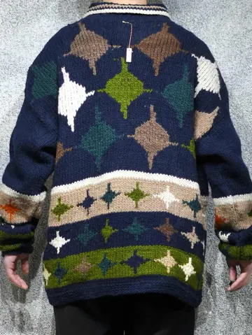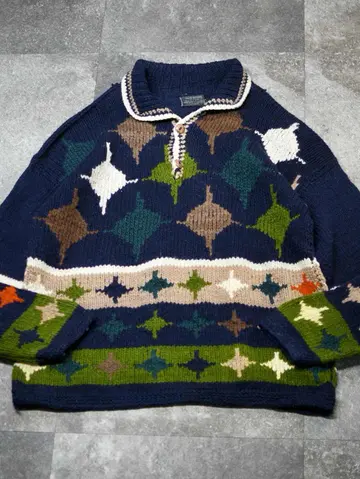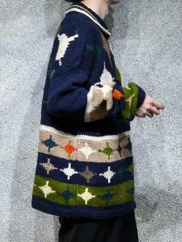 着丈76cm 肩幅76cm 身幅66cm 袖丈62cm fabric/wool 着用画像 177cm/64kg エクアドルニットらしい、暖かく肉厚な ウール生地。 そしてハンドニットだからこそのざっくりとした ローゲージと、手首に溜まる愛嬌あるシルエット。 主張が激し過ぎない、ネイビー色をベースとした ボディで、どんなパンツとも相性の良い ニットですが、ニットの色を拾ってあげると より纏まりのあるコーデになるかと思います。 ※撮影状況により、実物と多少色が異なる場合が ございます。 ※古着を取り扱っているため、気づかない汚れや ほつれ等がある場合がございます。 予めご了承ください。 ※サイズは着用感で選んでおり、表記サイズではございません。 古着 オーバーサイズ old vintage ヴィンテージ used 80's 90's アメリカ古着 ユーロ古着 メンズ レディース POLO RALPH LAUREN Eddie Bauer OLD GAP Eddie Bauer LANDS' END ランズエンド LLBean エルエルビーン オールドギャップ エディーバウアー ラルフローレン ブルックスブラザーズ Brooks Brothers ネイビー 紺色 デザインニット ニットポロ ニット セーター ウールニット などがお好きな方 #vintage #オーバーサイズ #old #used #90s #80s #古着 #ヴィンテージ #アメリカ古着 #ユーロ古着 #古着男子 #古着女子 #LLBean #エルエルビーン #EddieBauer #エディーバウアー #oldgap #オールドギャップ #LANDSEND #ランズエンド #NAUTICA #ノーティカ #ラルフローレン #POLORALPHLAUREN #ブルックスブラザーズ #BrooksBrothers #ニットポロ #ニット #セーター #ウールニット #エクアドルニット #デザインニット #ハンドニット