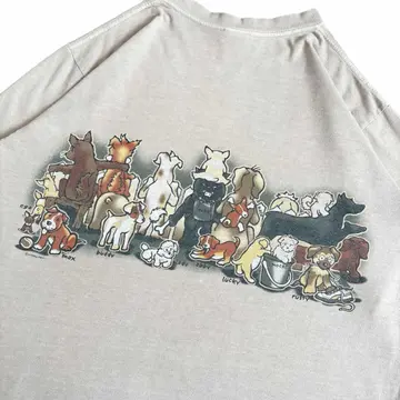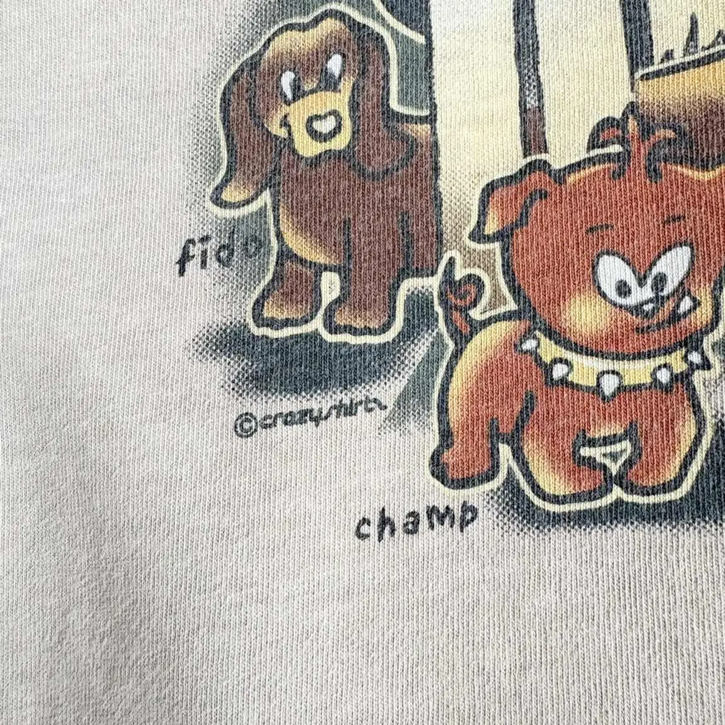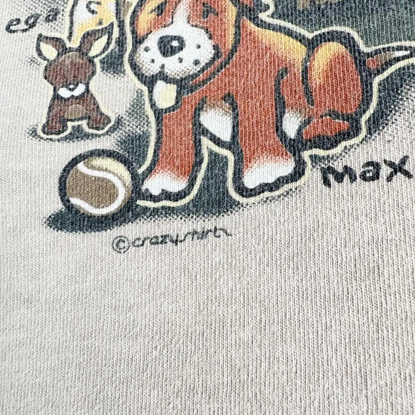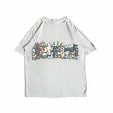 ○商品説明 crazyshirts フロントは犬たちが柵越しに顔を出して こっちを見ています。 バックは犬たちの後ろ姿がプリント されています。 犬たちの名前がしっかり入っていて いいデザインかと。 ビビッときた方は是非。 ○サイズ 表記M 平置き ・肩幅47cm ・身幅55cm ・袖丈22cm ・着丈65cm ○商品の状態 B A:使用感がほとんどなく、汚れやシミもなし B:多少使用感はあるが、汚れやシミも少ない C:使用感があり、汚れやシミがある D:使用感があり、大きな汚れや破れあり ○色 ベージュグレー #crazythirts#クレイジーシャツ#animal#アニマル#Tシャツ