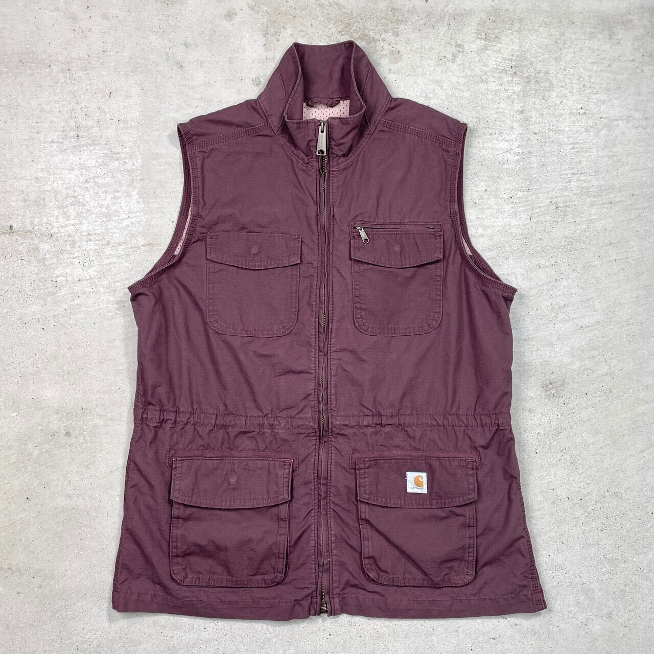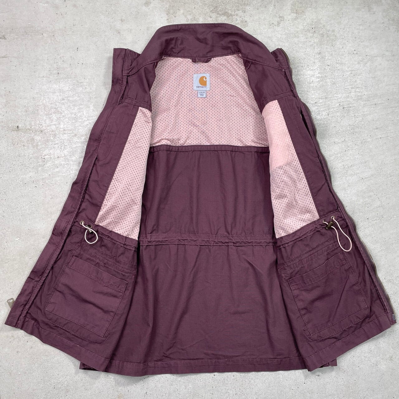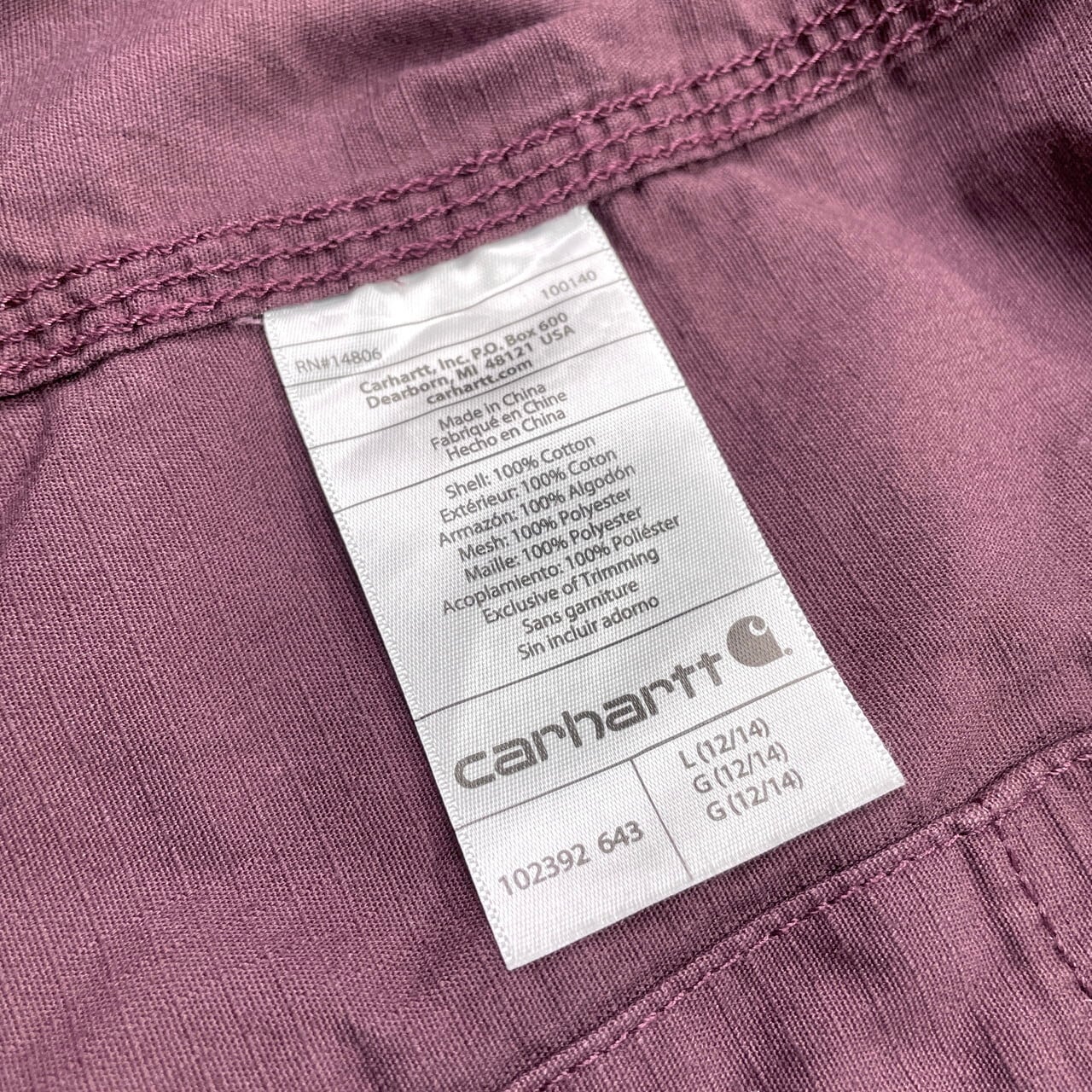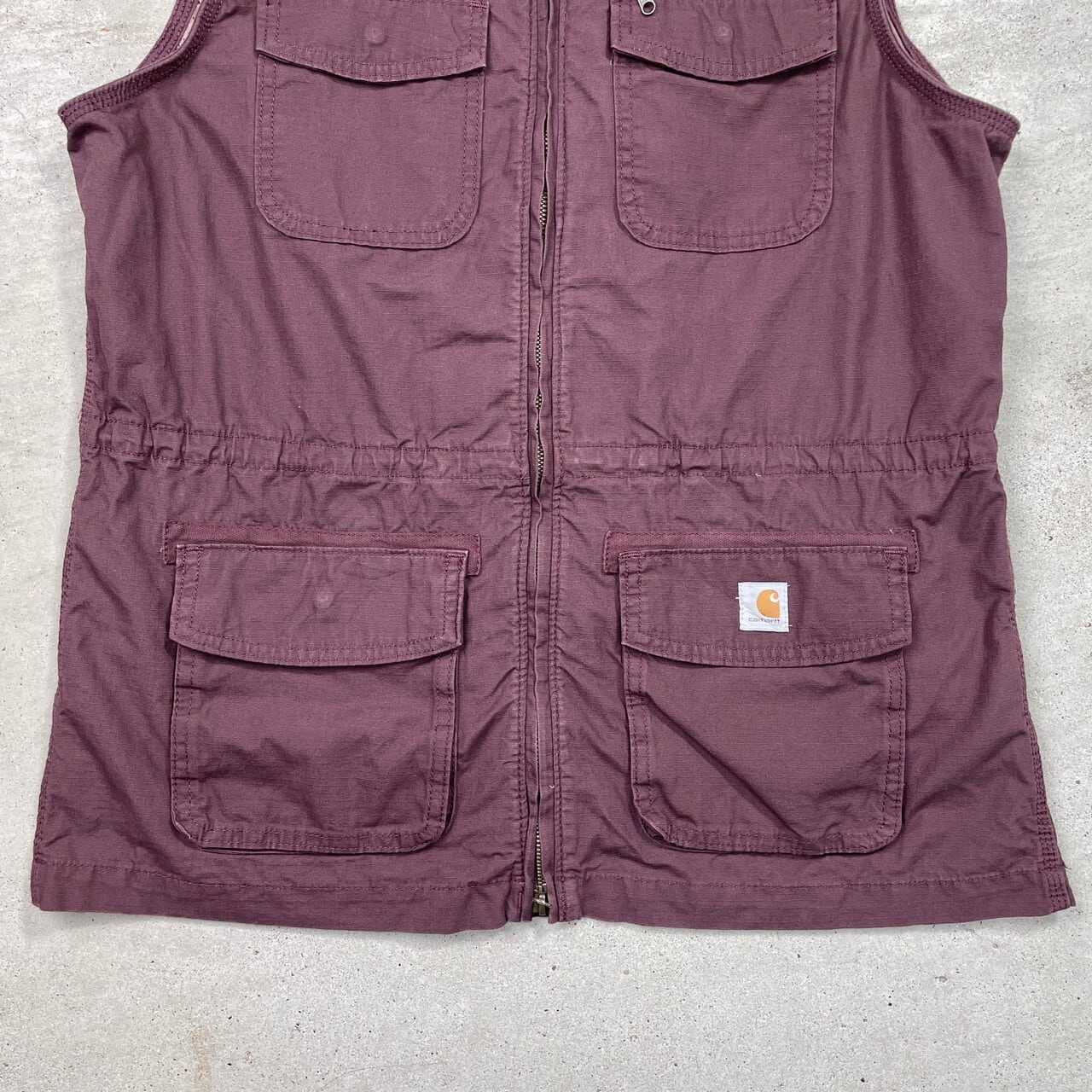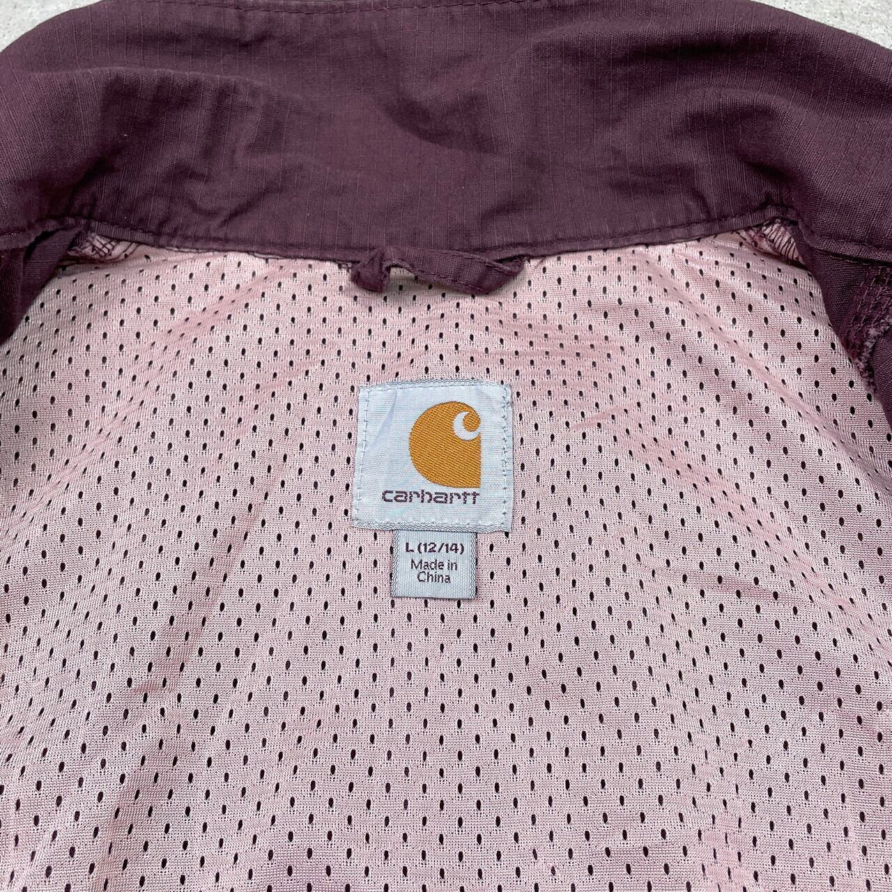 ■Carhartt カーハート リップストップ ワークベスト コットンベスト メッシュライナー メンズM相当 古着 パープル 紫色【ワークジャケット】/ワイレンレッド 【ブランド】Carhartt カーハート 【サイズ】表記 L(12/14)(着用感メンズM相当) モデル身長173cm ※計測値をご確認ください。 着丈…70 身幅…56 肩幅…39 【生産国】中国製 【素材】コットン100% 裏地 ポリエステル100% 【状態】多少の使用感は御座いますが、目立ったダメージや汚れは御座いません。 画像にてご確認ください。 【c250325154】 ※古着は洗濯、検品などのケアを行っております。(新品・デッドストックは洗濯していません。) ※モニターの発色により実物と異なる場合がございます。予めご了承ください。 ※ 海外直輸入USED品になります。
