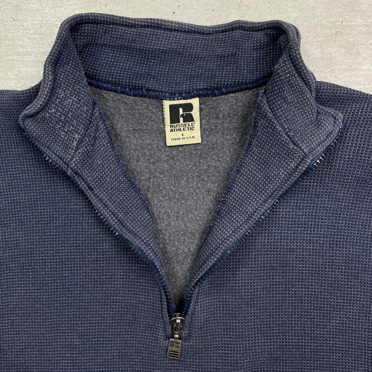 ■90年代 USA製 RUSSELL ATHLETIC ラッセル ワッフル地 ハーフジップスウェットシャツ ブランクスウェット 無地 メンズXL 古着 90s ヴィンテージ VINTAGE アメカジ トレーナー ハイネック 紺色【スウェット】/ネイビー 【ブランド】RUSSELL ATHLETIC ラッセル アスレチックス 【サイズ】表記 L(着用感メンズXL相当) ※計測値をご確認ください。 着丈…67 身幅…56 肩幅…58 袖丈…63 【生産国】USA製 【素材】コットン62% ポリエステル38% 【状態】左袖口に生地擦れやリペア跡がございます。 画像にてご確認ください。 【c250331165】 ※古着は洗濯、検品などのケアを行っております。(新品・デッドストックは洗濯していません。) ※モニターの発色により実物と異なる場合がございます。予めご了承ください。 ※ 海外直輸入USED品になります。