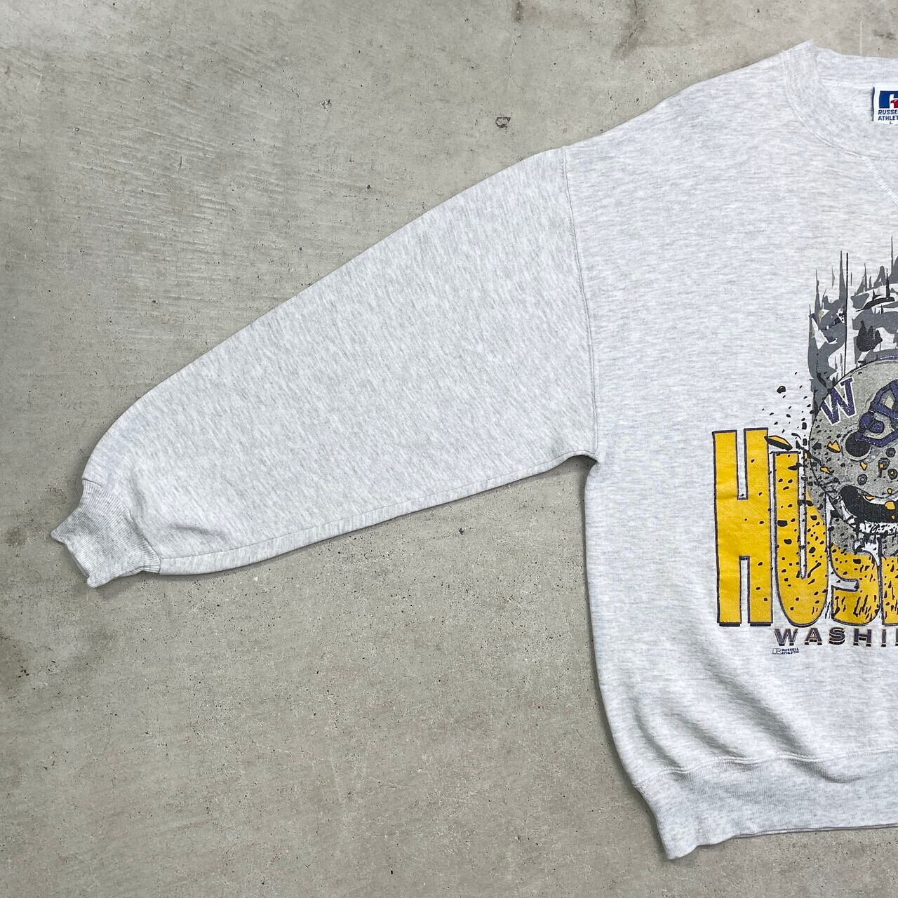 ■90年代 USA製 RUSSELL ATHLETIC ラッセル WASHINGTON HUSKIES チームロゴプリント スウェットシャツ メンズL 古着 90s ヴィンテージ VINTAGE 前Vガゼット アメカジ トレーナー 刺繍タグ ライトグレー 灰色【スウェット】/グレー 【ブランド】RUSSELL ATHLETIC ラッセルアスレチック 【サイズ】表記 L ※計測値をご確認ください。 着丈…66 身幅…57 肩幅…59 袖丈…56 【生産国】USA製 【素材】コットン50% ポリエステル50% 【状態】多少の使用感は御座いますが、目立ったダメージや汚れは御座いません。 画像にてご確認ください。 【c250331173】 ※古着は洗濯、検品などのケアを行っております。(新品・デッドストックは洗濯していません。) ※モニターの発色により実物と異なる場合がございます。予めご了承ください。 ※ 海外直輸入USED品になります。