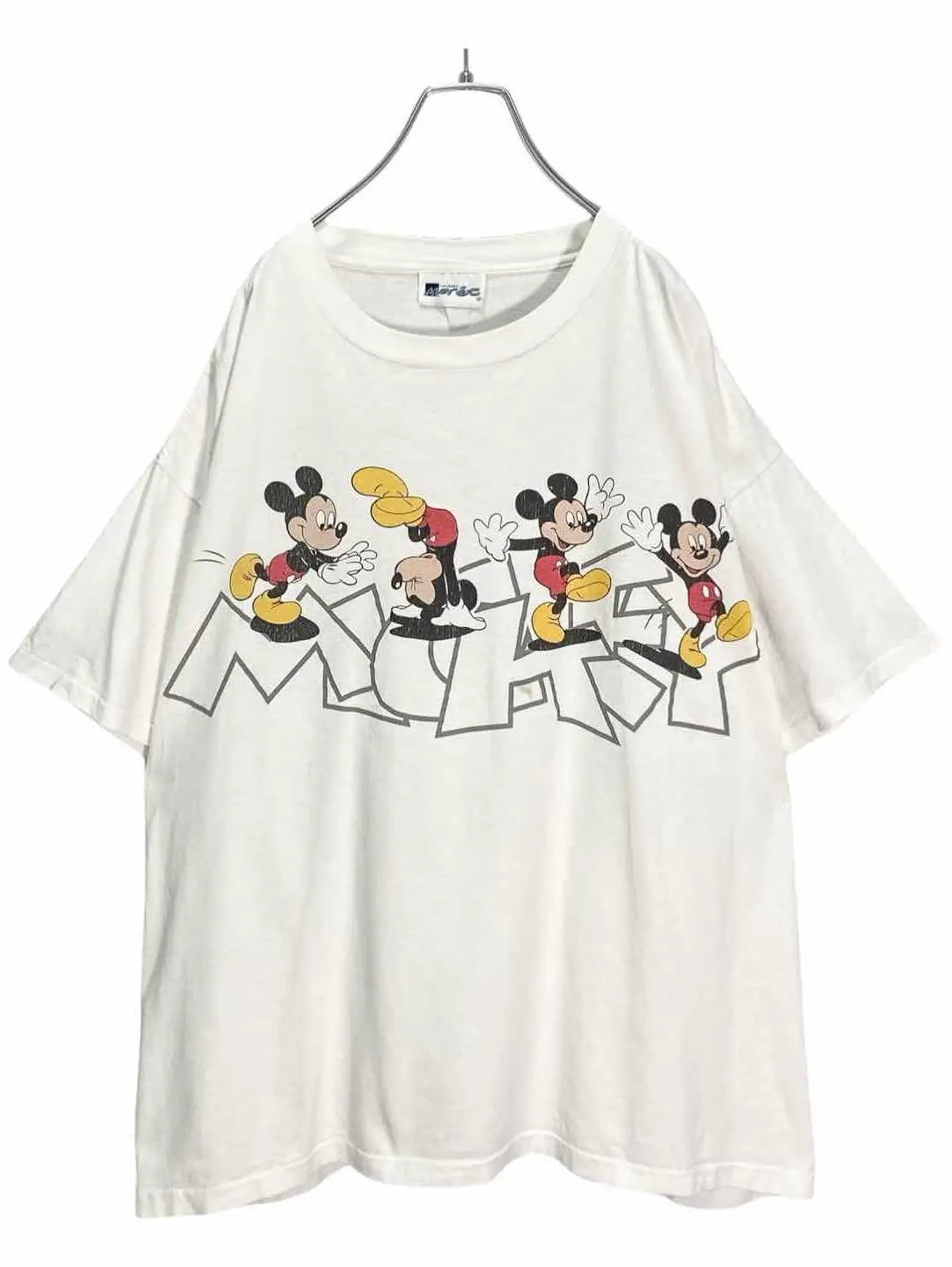 【商品名】90s Disney/JAQUES Moret "MICKEY" print T-SHIRT 【ブランド】 【コンディション】B-C ______________________ 90年代ミッキーマウスのプリントTシャツ。 ハリ・コシのある白のコットンボディに 身幅広めの、 ゆったりとしたオーバーシルエット。 "MICKEY"の文字にミッキーマウスが描かれた ユニークな1着。 独特なシルエットですが 着用時のドレープ感もよく、 着丈も長すぎないので意外と着用しやすいです。 実寸はメンズXL程度。オススメです。 サイズ: 着丈66 身幅70 肩幅60 袖丈19 ※その他画像はオンラインストアに掲載中です。 ※佐川急便にて発送致します。ご了承の程宜しくお願い致します。