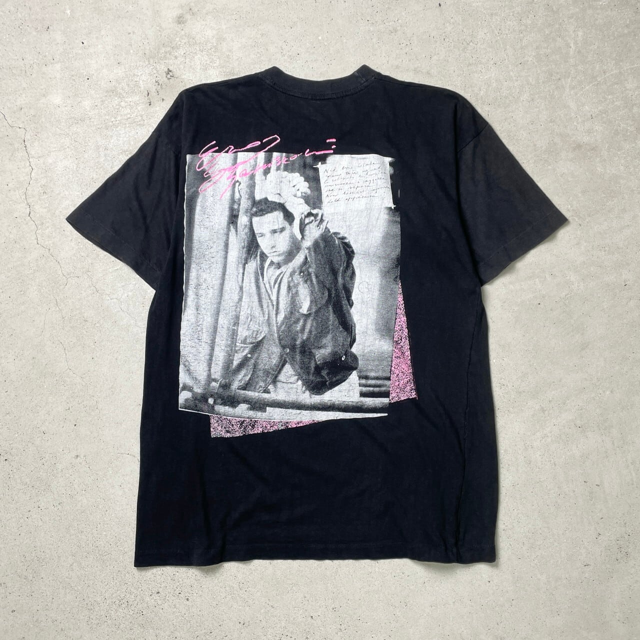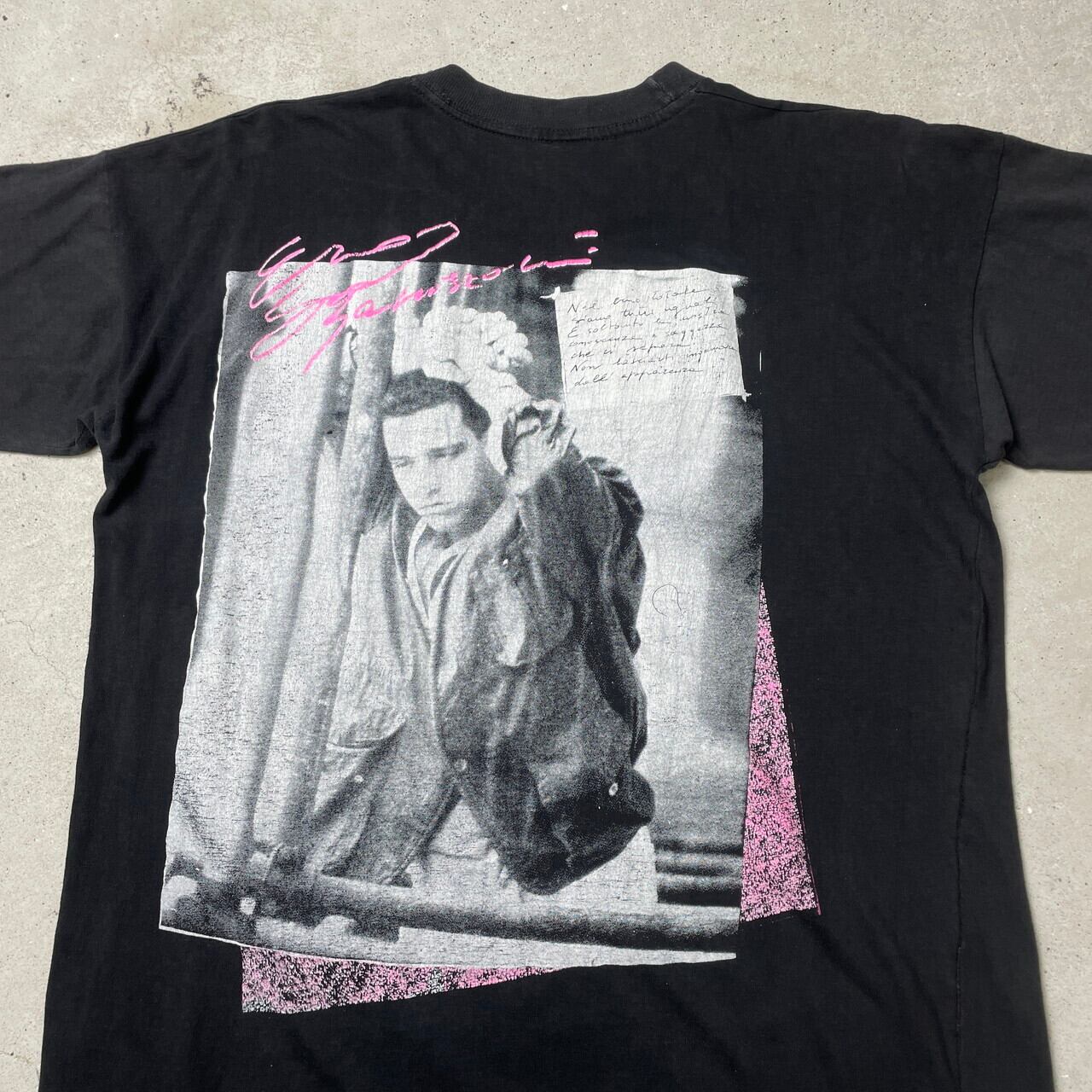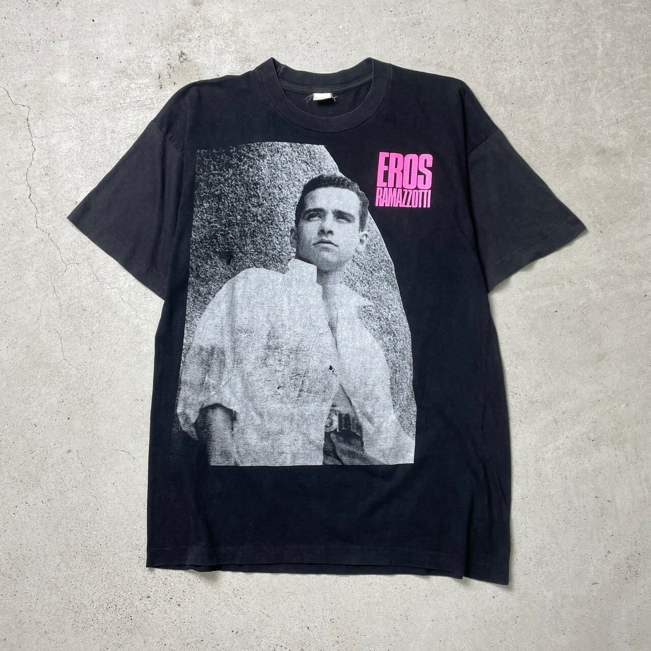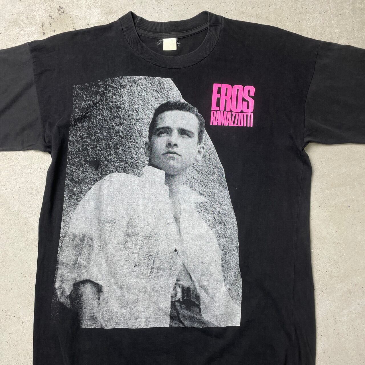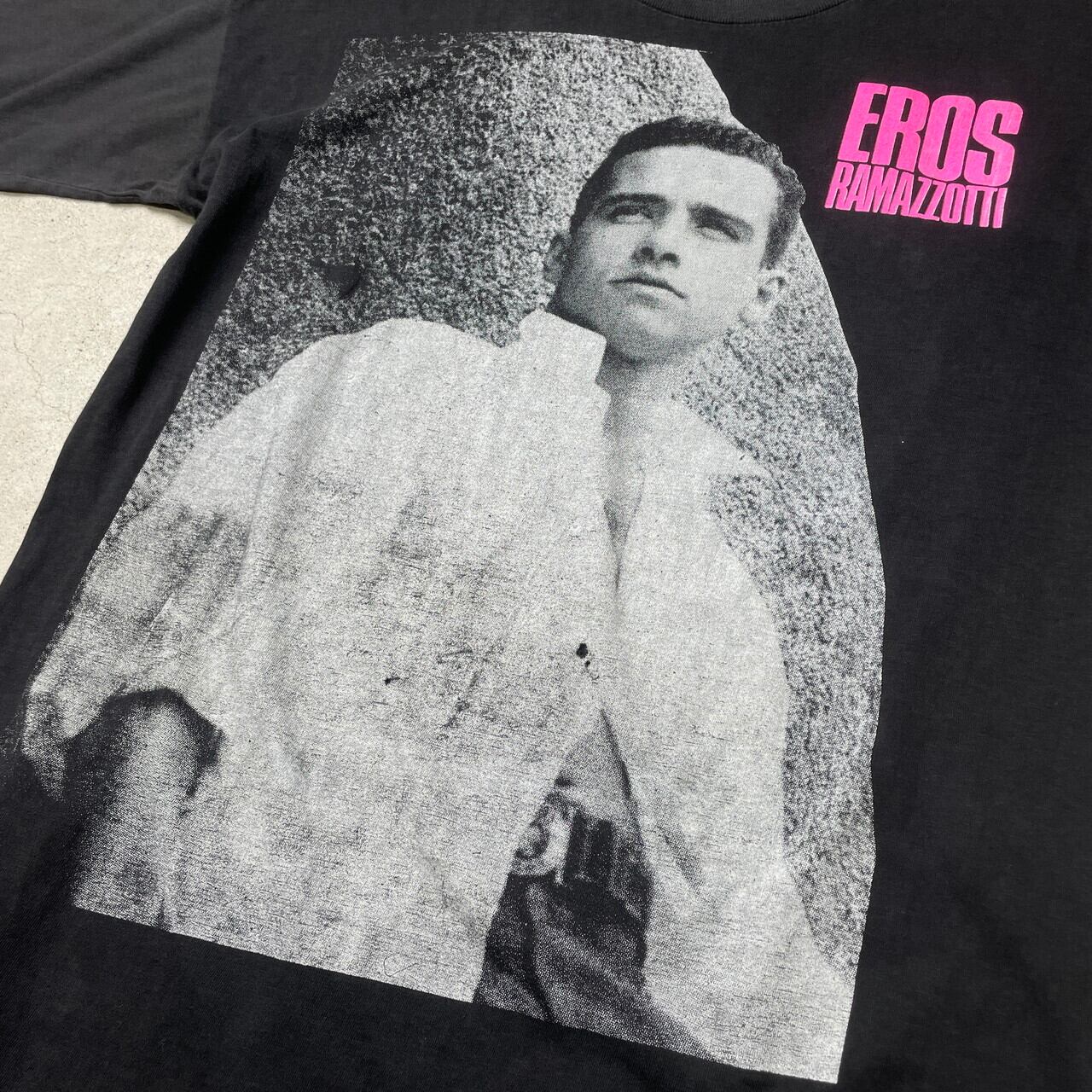 ■90年代 EROS RAMAZZOTTI エロス・ラマゾッティ アーティスト バンドTシャツ フォトプリント バンT メンズL-XL相当 古着 90s シングルステッチ ヴィンテージ VINTAGE 人物 黒色【Tシャツ】/ブラック 【ブランド】不明 【サイズ】表記 不明(着用感メンズL-XL相当) ※計測値をご確認ください。 着丈...68 身幅...54 肩幅…54.5 袖丈…19 【生産国】不明 【素材】不明(おそらくコットン,ポリエステルの混紡かと思われます。) 【状態】 生地が薄くなっております。 プリント部分に小穴、全体的に色あせが御座います。 画像にてご確認ください。 【c250401009】 ※古着は洗濯、検品などのケアを行っております。(新品・デッドストックは洗濯していません。) ※モニターの発色により実物と異なる場合がございます。予めご了承ください。 ※ 海外直輸入USED品になります。