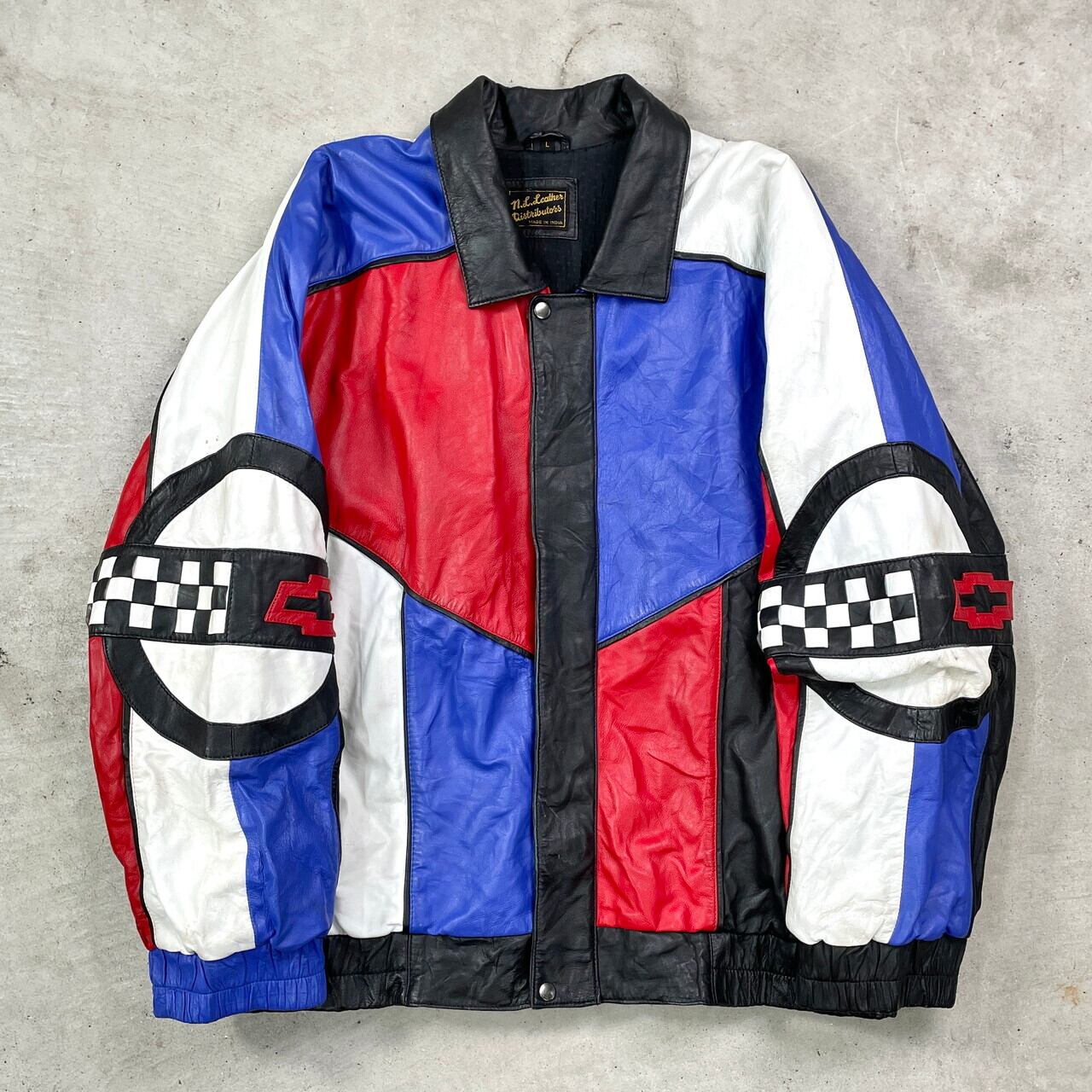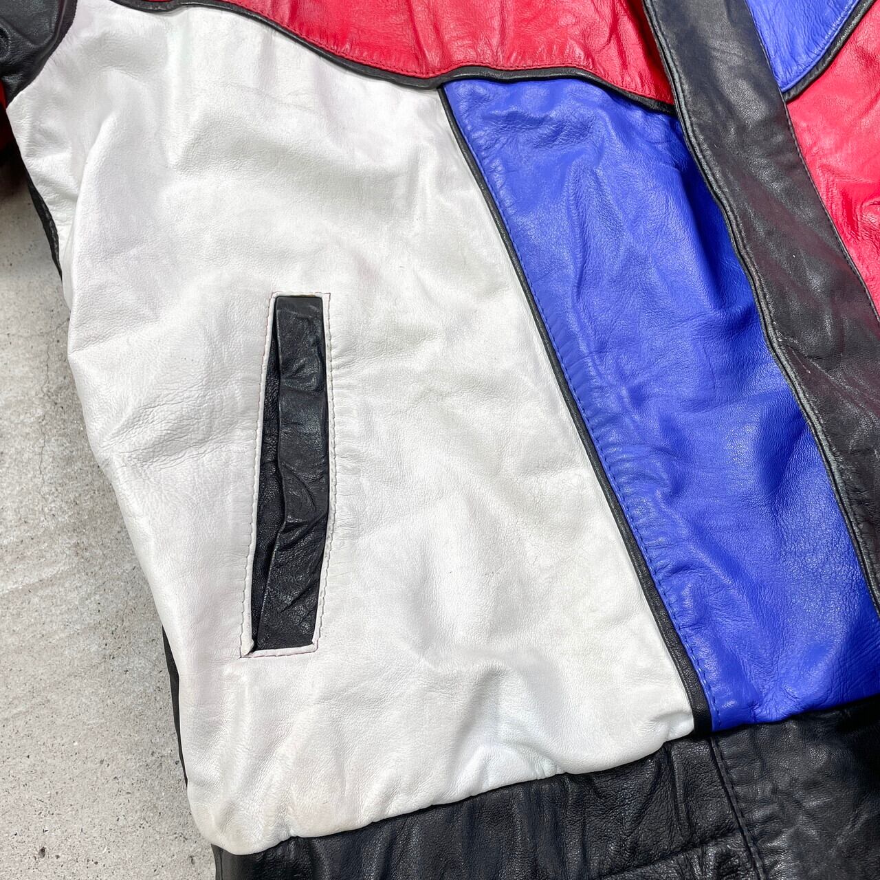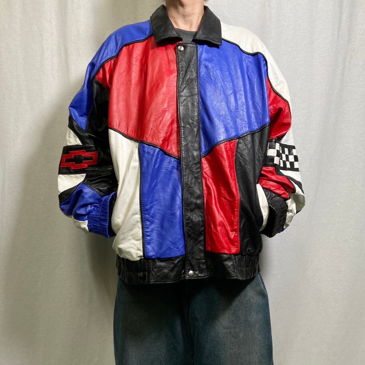 ■90年代 CORVETTE コルベット レザージャケット クレイジーパターン メンズ2XL相当 古着 90s ヴィンテージ VINTAGE CHEVROLET シボレー チェッカーフラッグ 革ジャン 肩パッド レッド ブルー ホワイト ブラック 赤色 青色 黒 白 ビッグサイズ 大きいサイズ【ブルゾン・ジャケット】/マルチカラー 【ブランド】N.L.LEATHER DISTRIBUTORS 【サイズ】表記 L(着用感メンズ2XL相当) モデル身長173cm 計測値をご確認ください。 着丈…71.5 身幅…72 肩幅…93 袖丈…58 【素材】本革 裏地 ビスコース67% アセテート33% 【生産国】インド製 【状態】全体的に数か所汚れ、スレ等の使用感がございます。 画像にてご確認ください。 【c250328007】 ※古着は洗濯、検品などのケアを行っております。(新品・デッドストックは洗濯していません。) ※モニターの発色により実物と異なる場合がございます。予めご了承ください。 ※ 海外直輸入USED品になります。