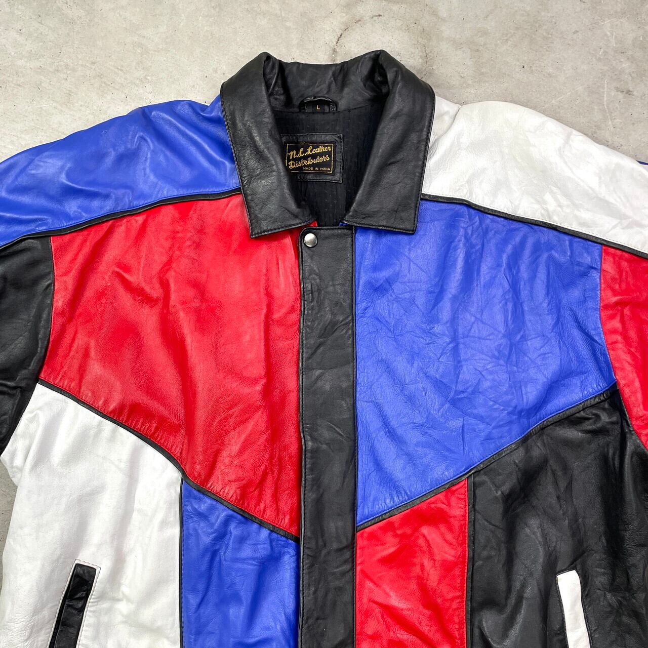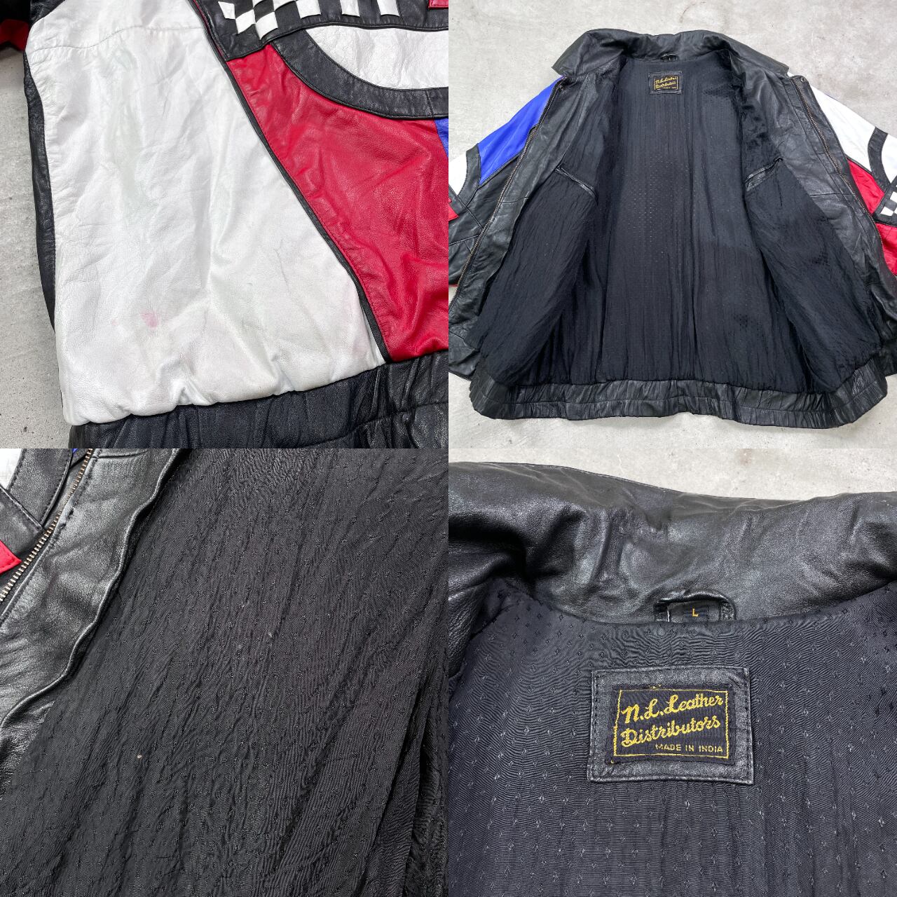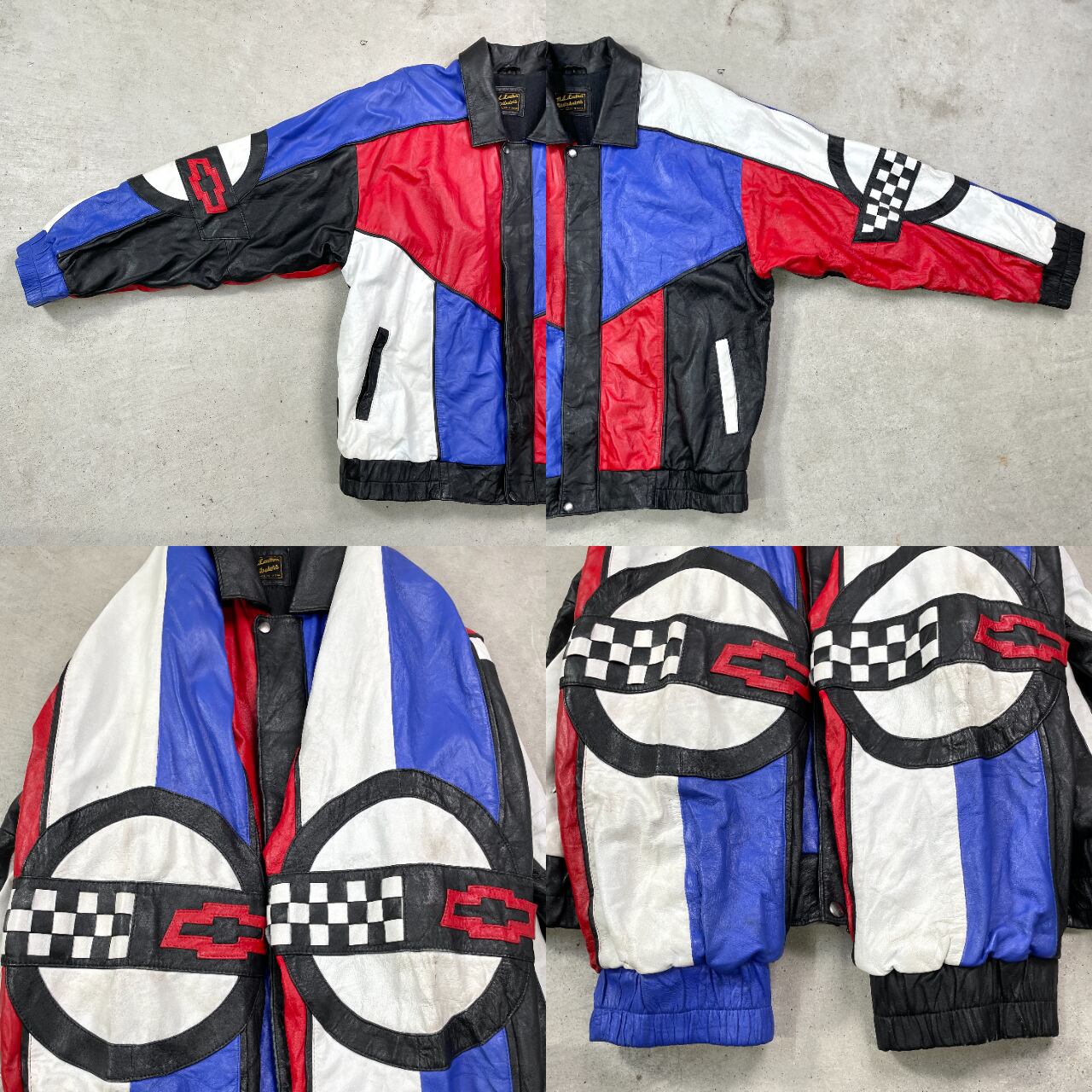 ■90年代 CORVETTE コルベット レザージャケット クレイジーパターン メンズ2XL相当 古着 90s ヴィンテージ VINTAGE CHEVROLET シボレー チェッカーフラッグ 革ジャン 肩パッド レッド ブルー ホワイト ブラック 赤色 青色 黒 白 ビッグサイズ 大きいサイズ【ブルゾン・ジャケット】/マルチカラー 【ブランド】N.L.LEATHER DISTRIBUTORS 【サイズ】表記 L(着用感メンズ2XL相当) モデル身長173cm 計測値をご確認ください。 着丈…71.5 身幅…72 肩幅…93 袖丈…58 【素材】本革 裏地 ビスコース67% アセテート33% 【生産国】インド製 【状態】全体的に数か所汚れ、スレ等の使用感がございます。 画像にてご確認ください。 【c250328007】 ※古着は洗濯、検品などのケアを行っております。(新品・デッドストックは洗濯していません。) ※モニターの発色により実物と異なる場合がございます。予めご了承ください。 ※ 海外直輸入USED品になります。