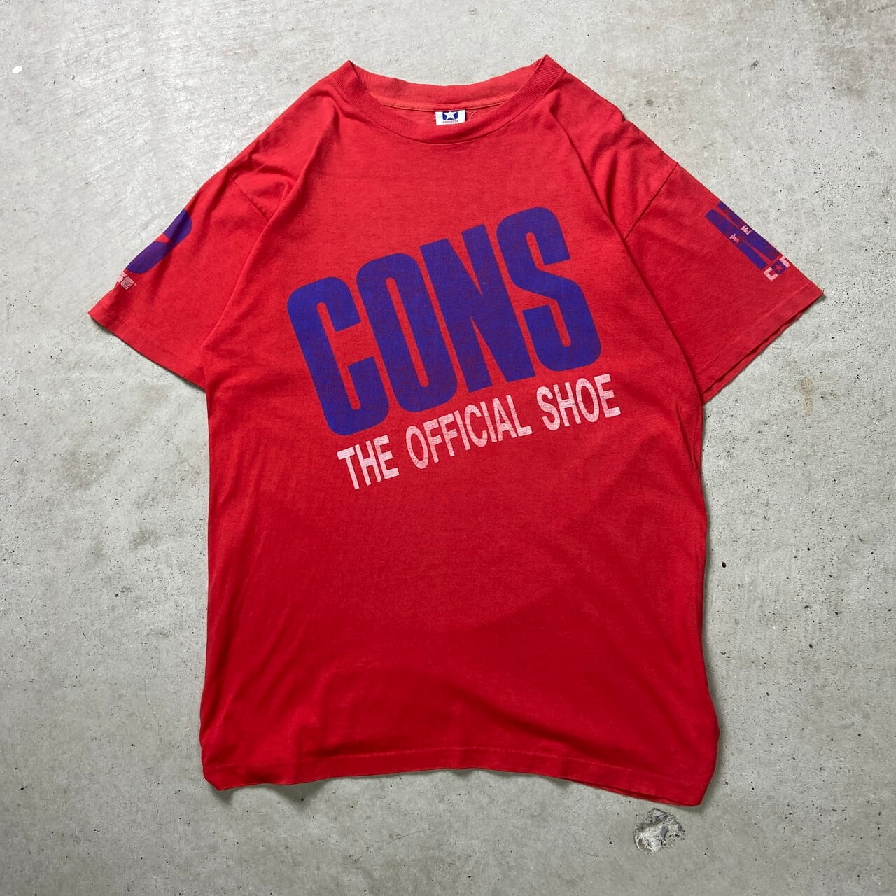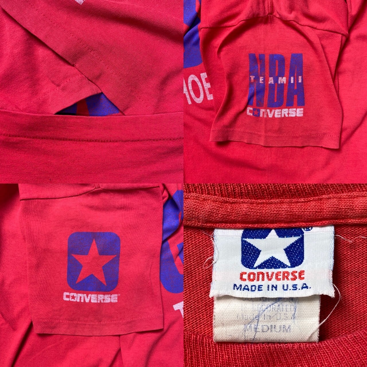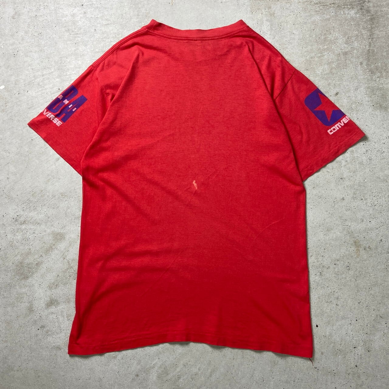 ■80年代 USA製 CONS NBA CONVERSE コンバース プリントTシャツ メンズL相当 古着 80s シングルステッチ ヴィンテージ VINTAGE 赤色【Tシャツ】/レッド 【ブランド】CONVERSE 【サイズ】表記 MEDIUM(着用感メンズL相当) ※計測値をご確認ください。 着丈…71 身幅…55.5 肩幅…53.5 袖丈…22 【生産国】USA製 【素材】コットン100% 【状態】脇に小穴、背面に変色が御座います。 また全体的に色あせが御座います。 画像でお確かめください。 【c250329017】 ※古着は洗濯、検品などのケアを行っております。(新品・デッドストックは洗濯していません。) ※モニターの発色により実物と異なる場合がございます。予めご了承ください。 ※ 海外直輸入USED品になります。