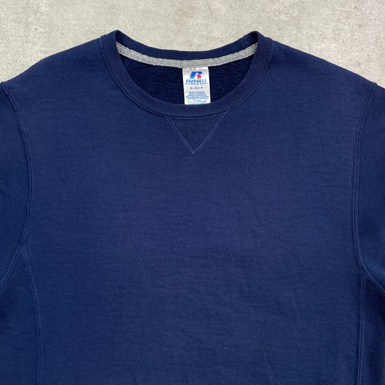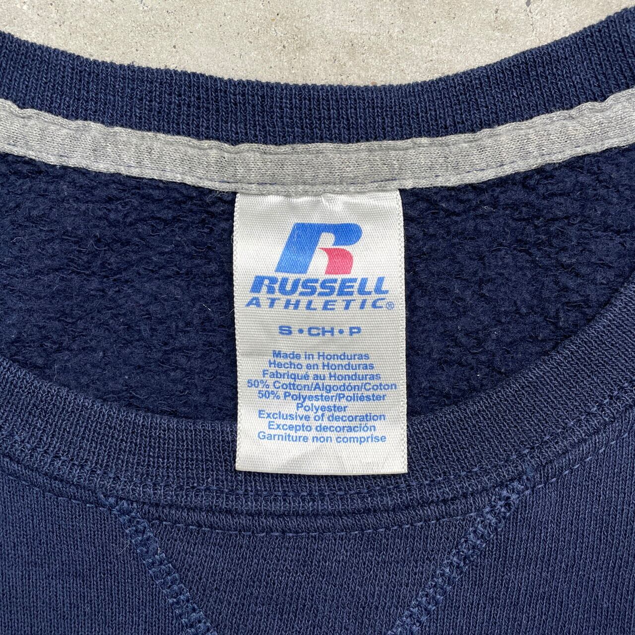 ■00年代 RUSSELL ATHLETIC ラッセル ブランクスウェットシャツ 無地 メンズS レディース 古着 00s Y2K VINTAGE ヴィンテージ アメカジ トレーナー 前Vガゼット 紺色【スウェット】/ネイビー 【ブランド】RUSSELL ATHLETIC ラッセル アスレチックス 【サイズ】表記 S ※計測値をご確認ください。 着丈…63.5 身幅...53.5 肩幅…47 袖丈…61 【生産国】ホンジュラス製 【素材】コットン50% ポリエステル50% 【状態】左袖口付近に細かい汚れがございます。 画像にてご確認ください。 【c250402027】 ※古着は洗濯、検品などのケアを行っております。(新品・デッドストックは洗濯していません。) ※モニターの発色により実物と異なる場合がございます。予めご了承ください。 ※ 海外直輸入USED品になります。