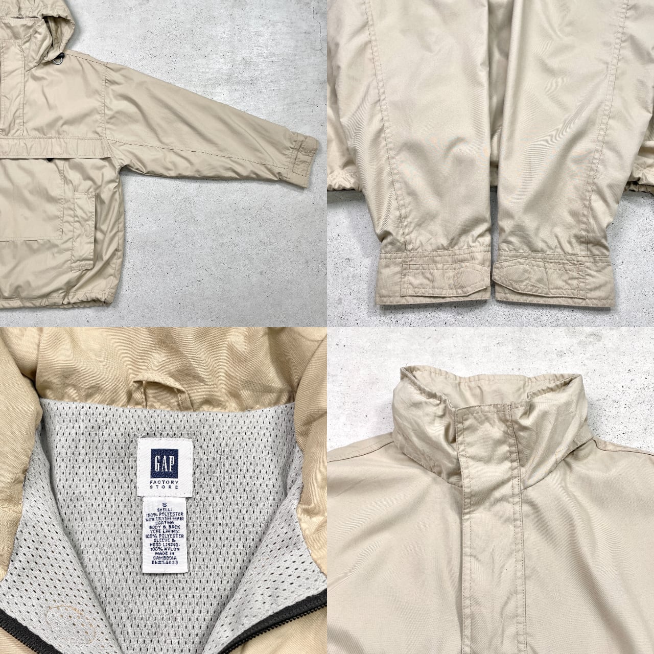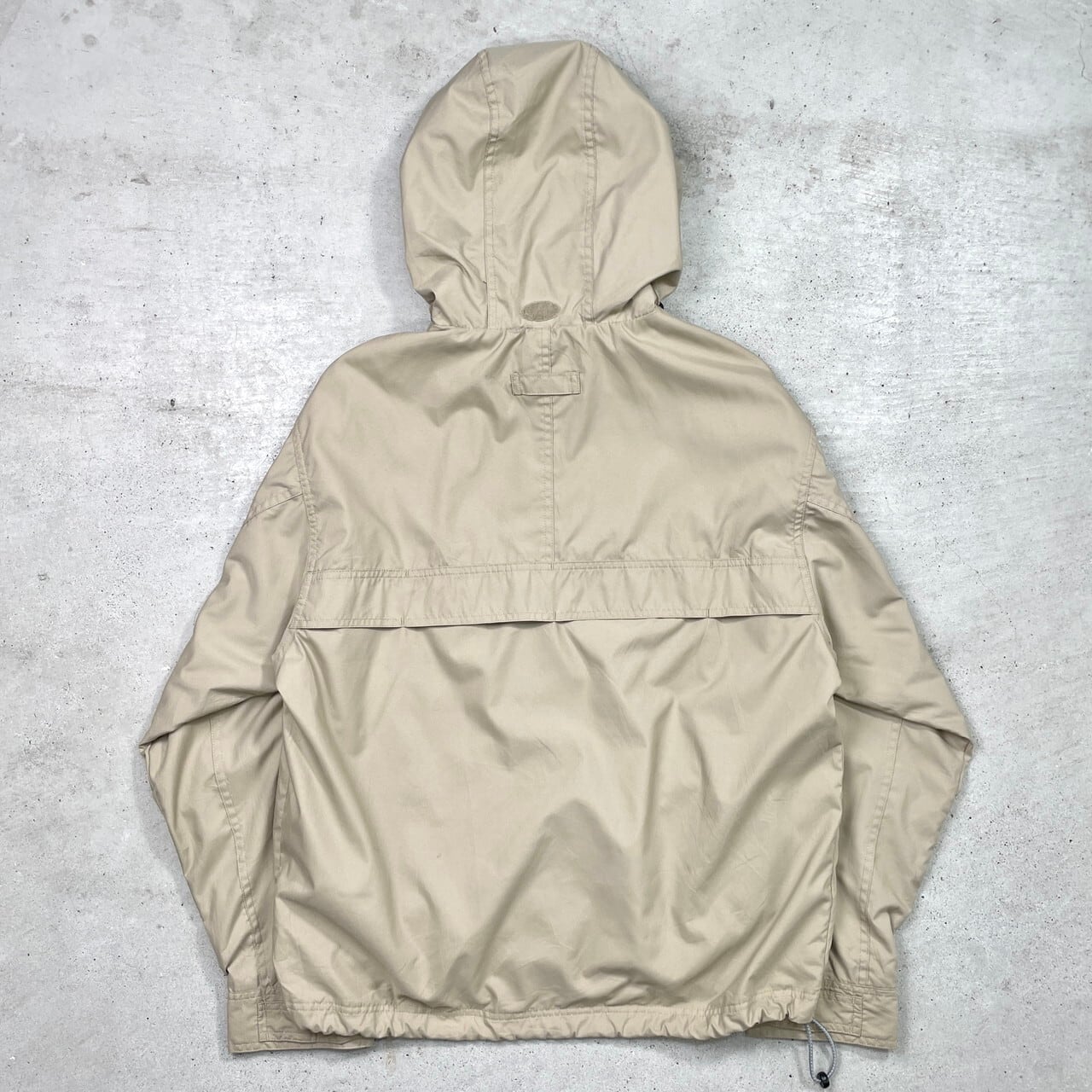 ■00年代 OLD GAP オールドギャップ アノラックパーカー ピーチスキン メンズM相当 古着 00s ヴィンテージ VINTAGE 裾ドローコード フード収納式【ナイロンジャケット】/ベージュ ◎薄手でサラッとした肌触りの良い生地感です。 【ブランド】GAP 【サイズ】表記 S(着用感メンズM相当) モデル身長173cm ※計測値をご確認ください。 着丈…69 身幅…62 肩幅…52 袖丈...59.5 【生産国】カンボジア製 【素材】ポリエステル100% 【状態】フロントポケット・背面に汚れがございます。 画像にてご確認ください。 【c250325002】 ※古着は洗濯、検品などのケアを行っております。(新品・デッドストックは洗濯していません。) ※モニターの発色により実物と異なる場合がございます。予めご了承ください。 ※ 海外直輸入USED品になります。