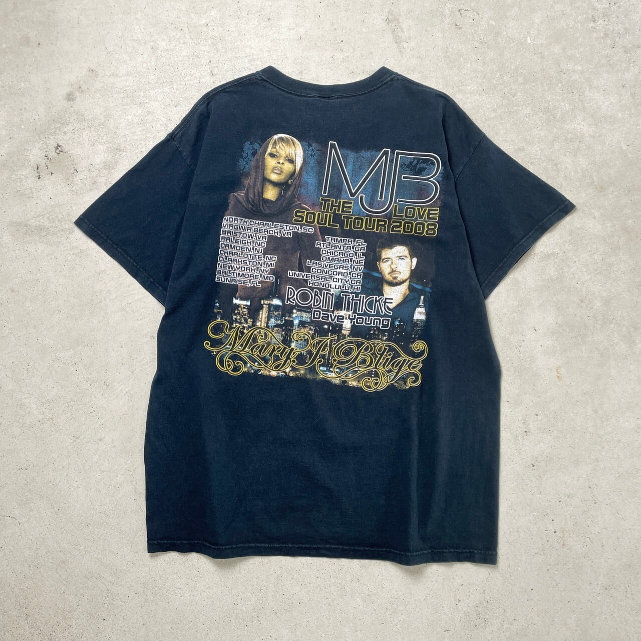 ■00年代 Mary J Blige & ROBIN THICKE THE LOVE SOUL TOUR 2008 プリントTシャツ メンズXL 古着 00s ヴィンテージ VINTAGE Y2K R&B アーティスト バンT バンドTシャツ 黒 フェードブラック【Tシャツ】/ブラック 【ブランド】FROUIT OF THE LOOM フルーツオブザルーム 【サイズ】表記 XL ※計測値をご確認ください。 着丈…69.5 身幅…56 肩幅…52 袖丈…17 【生産国】ホンジュラス製 【素材】コットン100% 【状態】多少の色あせ等使用感は御座いますが目立ったダメージ等は御座いません。 画像にてご確認ください。 【c250401023】 ※古着は洗濯、検品などのケアを行っております。(新品・デッドストックは洗濯していません。) ※モニターの発色により実物と異なる場合がございます。予めご了承ください。 ※ 海外直輸入USED品になります。