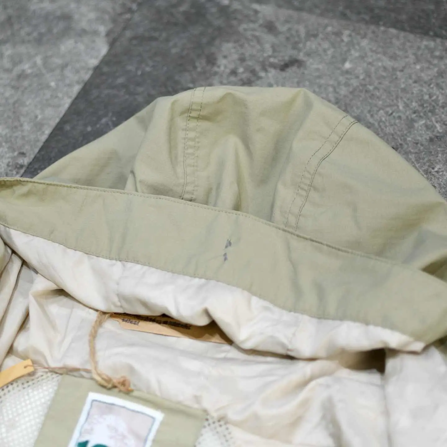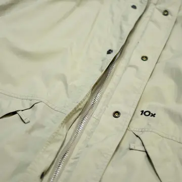 着丈83cm 身幅84cm 裄丈104cm fabric/質感よりnylon 着用画像 177cm/64kg ハンティングベストやハンティングジャケットなど ハンティングウェアを多く展開するブランド "10X" そんなブランドが手掛けたナイロンジャケット。 風の侵入を防ぐ前立ての作りや首元の作り、 そして手や物の出し入れがしやすいようにと 斜めに着くポケットなど、機能性はもちろんですが すこぶるワイドな身幅に対して、長過ぎない丈感で 抜群のシルエットという点にも惹かれた1着です。 ハンティングウェアの中でも、 日の目が当たりにくい風変わりな1着ですが、 ナイロンジャケットとしてこのアイテムに 焦点を当てると、間違いなく評価すべき1着だと 思いました。 ※フード内側に傷みあり。 ※裏地に汚れあり。 ※撮影状況により、実物と多少色が異なる場合が ございます。 ※古着を取り扱っているため、気づかない汚れや ほつれ等がある場合がございます。 予めご了承ください。 ※サイズは着用感で選んでおり、表記サイズではございません。 古着 オーバーサイズ old vintage ヴィンテージ used 80's 90's アメリカ古着 ユーロ古着 メンズ レディース POLO RALPH LAUREN Eddie Bauer OLD GAP Eddie Bauer LANDS' END ランズエンド LLBean エルエルビーン オールドギャップ エディーバウアー ラルフローレン ブルックスブラザーズ Brooks Brothers ベージュ ジャケット ハンティング マウンテンパーカー などがお好きな方 #vintage #オーバーサイズ #old #used #90s #80s #古着 #ヴィンテージ #アメリカ古着 #ユーロ古着 #古着男子 #古着女子 #LLBean #エルエルビーン #EddieBauer #エディーバウアー #oldgap #オールドギャップ #LANDSEND #ランズエンド #NAUTICA #ノーティカ #ラルフローレン #POLORALPHLAUREN #ブルックスブラザーズ #BrooksBrothers #マウンテンパーカー #ナイロンジャケット #ハンティングジャケット #10X #ジャケット
