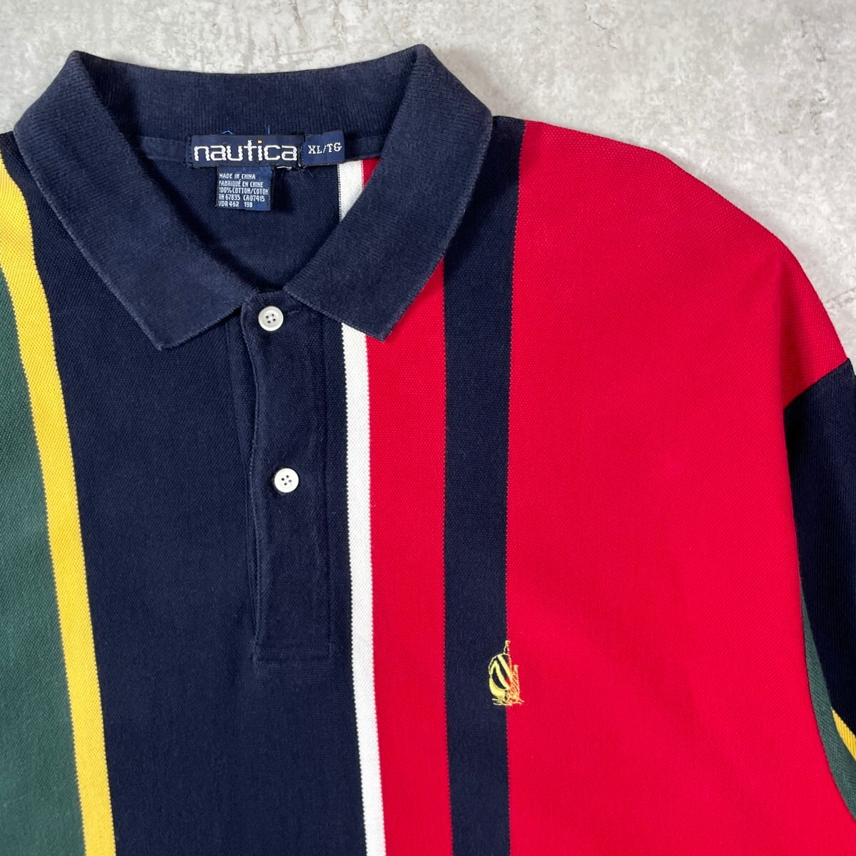 90年代 NAUTICA ノーティカ ゴルフ ワンポイント刺繍 ボーダー ポロシャツ メンズXL