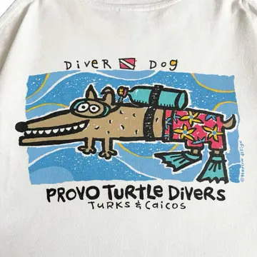 ○商品説明 anvil DIVER DOG 潜る気満々の犬。 ツッコミどころ多く 面白い一枚。 夏に最高です。 ○サイズ 表記: L 平置き ・肩幅53cm ・身幅56cm ・袖丈21cm ・着丈70cm ○商品の状態: B A:使用感がほとんどなく、汚れやシミもなし B:多少使用感はあるが、汚れやシミも少ない C:使用感があり、汚れやシミがある D:使用感があり、汚れや破れあり ○色 ホワイトライトグレー #anvil#アンビル#animal#Tシャツ
