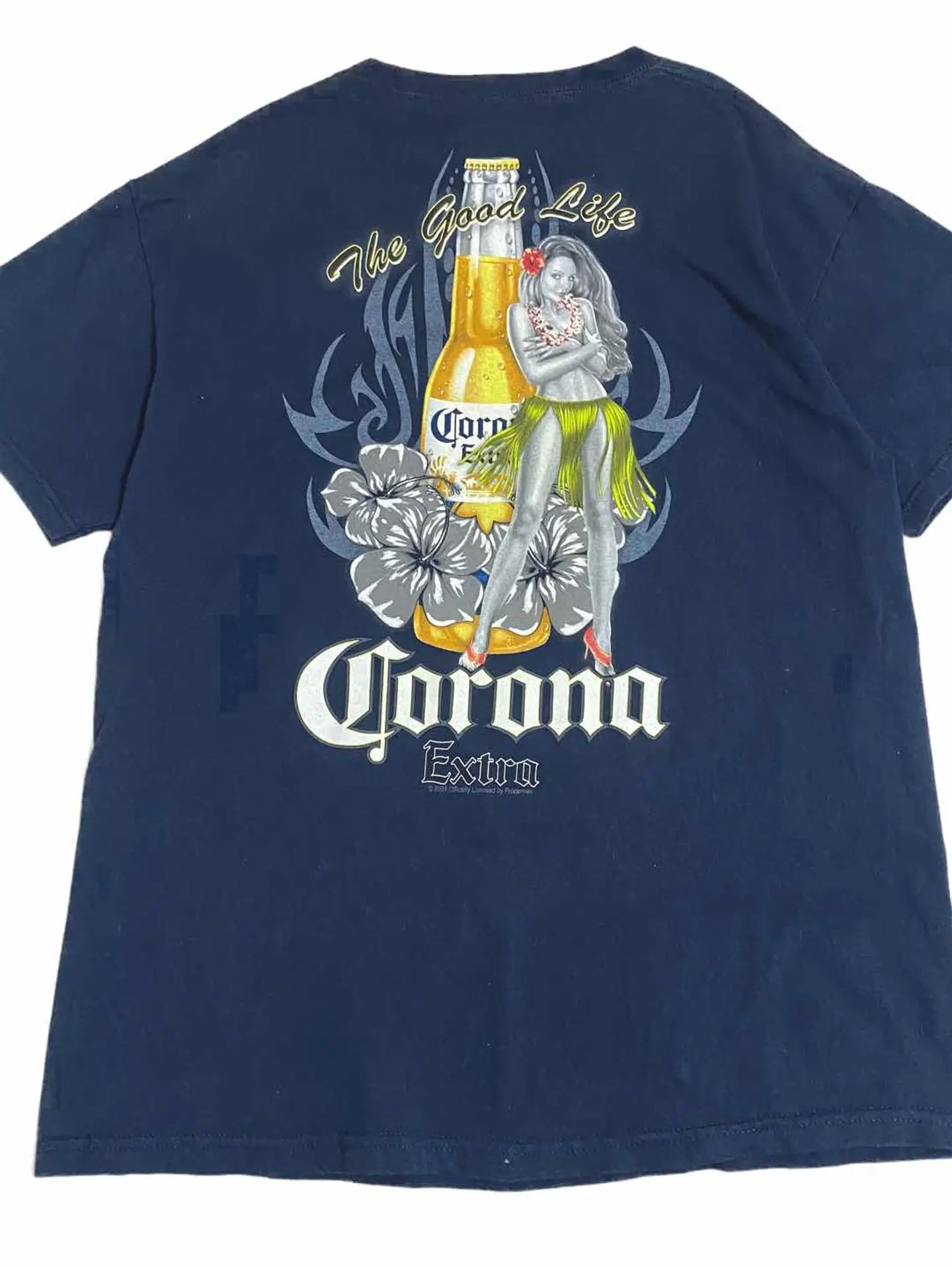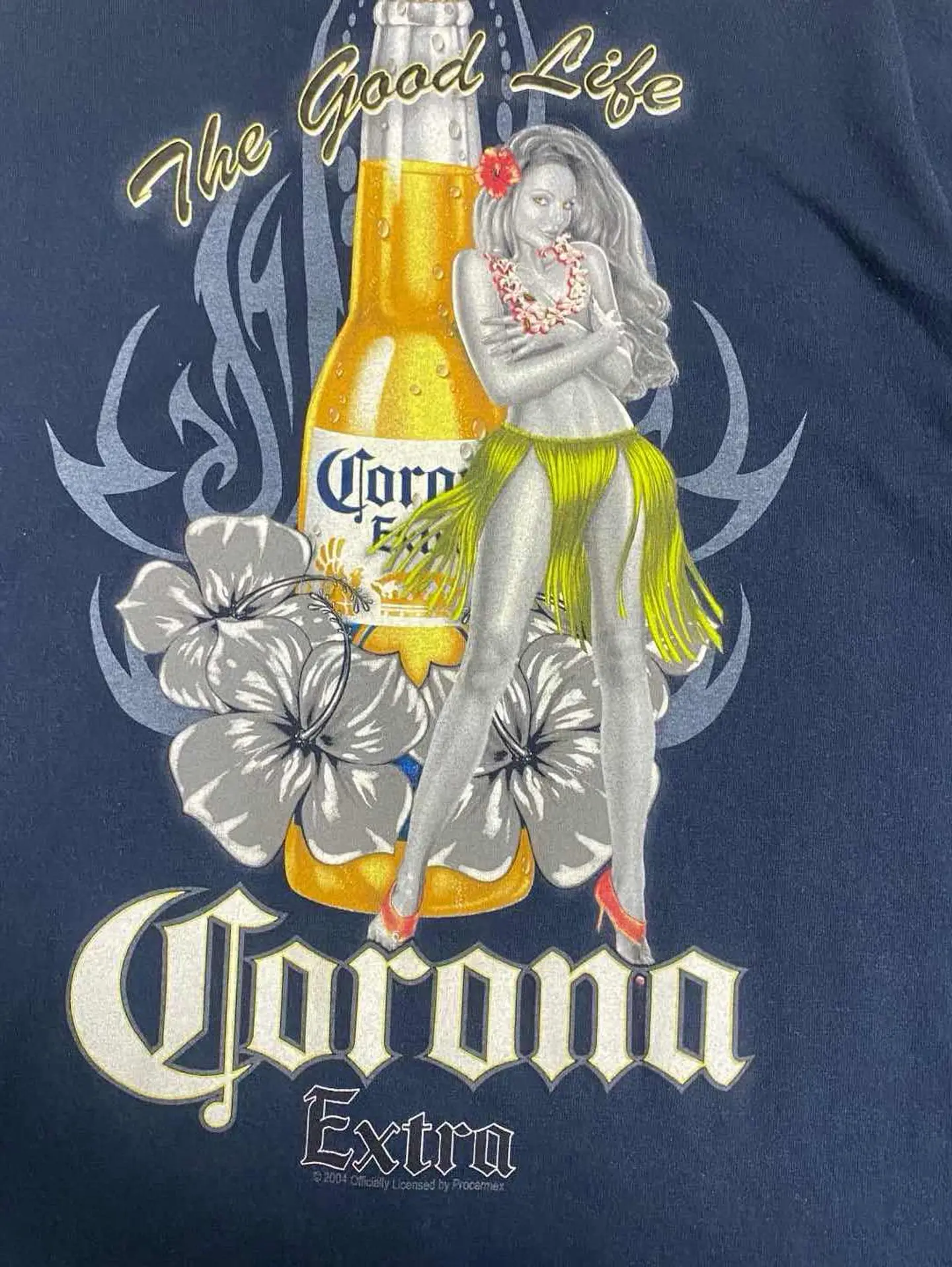 '04 Corona Extra バックプリントtシャツ ネイビー Lサイズ
