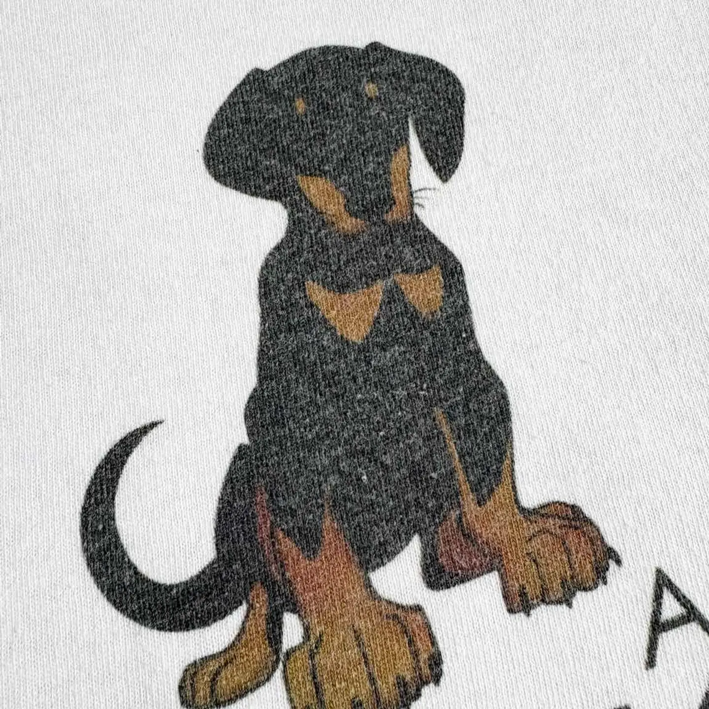 ○商品説明 anvil ドーベルマンレスキューアライアンス 2011年に設立された非営利の501(c)(3)慈善団体で、 支援を必要とするドーベルマン・ピンシャーの救助、 ケア、そして譲渡に尽力しています。 ウィスコンシン州全域で活動する、 この犬種に献身的に携わる個人による、 完全ボランティアの団体になります。 子犬のドーベルマンがプリントされていて ミニチュアダックスフンドにも見えますね。 全ての犬が大切に飼われたら良いですね。 ○サイズ 表記 L 平置き ・肩幅53cm ・身幅57cm ・袖丈20cm ・着丈65cm ○商品の状態 B A:使用感がほとんどなく、汚れやシミもなし B:多少使用感はあるが、汚れやシミも少ない C:使用感があり、汚れやシミがある D:使用感があり、大きな汚れや破れあり ○色 ホワイト #anvil#アンビル#animal#Tシャツ