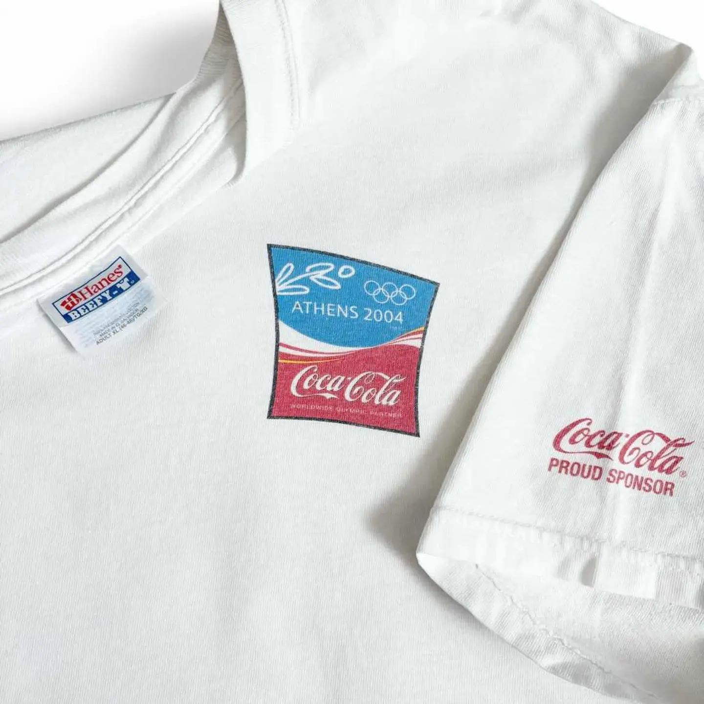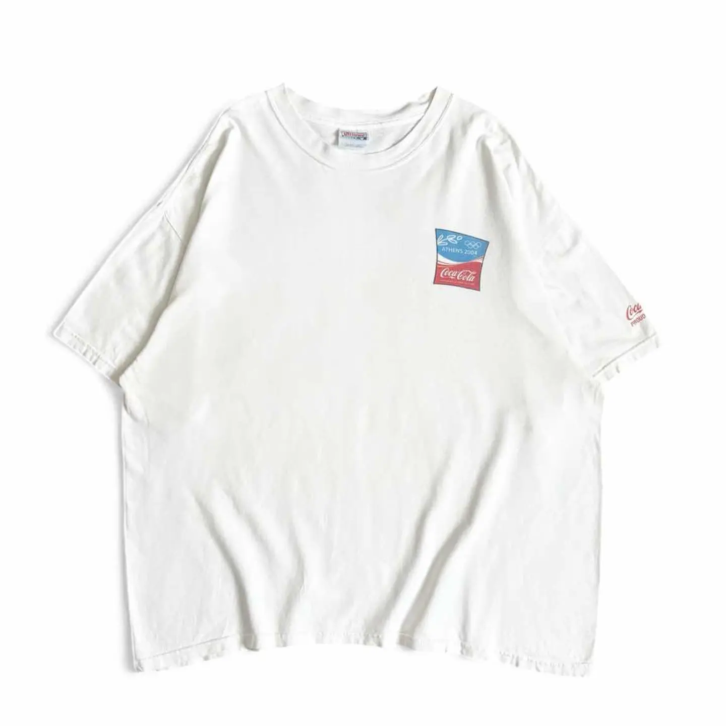 ○商品説明 Hanes Coca-Cola 2004年に開催された アテネオリンピックのコカコーラの ピンバッチのデザインがプリントされた一枚になります。 気になった方は是非。 ○サイズ 表記 XL 平置き ・肩幅60cm ・身幅62cm ・袖丈20cm ・着丈67cm ○商品の状態 B A:使用感がほとんどなく、汚れやシミもなし B:多少使用感はあるが、汚れやシミも少ない C:使用感があり、汚れやシミがある D:使用感があり、大きな汚れや破れあり ○色 ホワイト #Hanes#ヘインズ#Coca-Cola#コカコーラ#Tシャツ