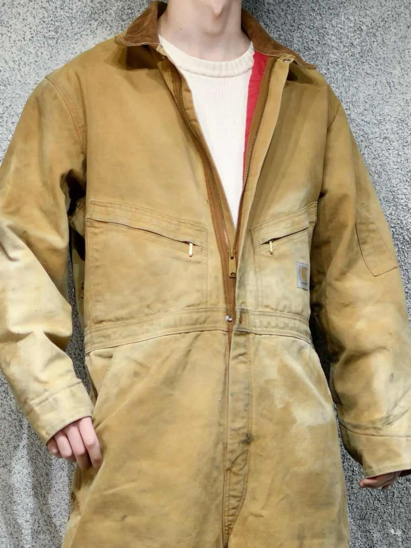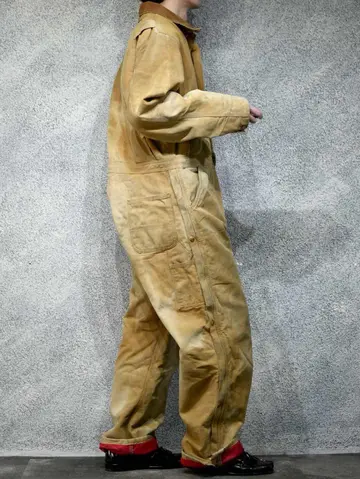 総丈163cm 肩幅50cm 身幅56cm 袖丈63cm 股下73cm わたり41cm 裾幅27cm fabric/cotton 着用画像 177cm/62kg 周りとは違う形で、Carharttを取り入れてみては どうでしょう。 こちらはすこぶるオーバーサイズのつなぎ。 サイドスナップにジップ、シルエットを好みで 変えてみたり、ジップを開けてインナーで 遊んでみたり。 ワークブランドらしい使い込まれた状態も、 この個体の魅力ですがロールアップした時に 見える裏地のキルティングが可愛い、、 ※撮影状況により、実物と多少色が異なる 場合がございます。 ※古着を取り扱っているため、気づかない汚れや ほつれがある場合がございます。 予めご了承ください。 ※サイズは着用感で選んでおり、表記サイズではございません。 古着 オーバーサイズ old vintage ヴィンテージ used 80's 90's アメリカ古着 ユーロ古着 メンズ レディース POLO RALPH LAUREN Eddie Bauer OLD GAP Eddie Bauer LANDS' END ランズエンド LLBean エルエルビーン オールドギャップ エディーバウアー ラルフローレン ブルックスブラザーズ Brooks Brothers ベージュ カーハート オーバーオール ワークジャケット ワークパンツ などがお好きな方 #vintage #オーバーサイズ #old #used #90s #80s #古着 #ヴィンテージ #アメリカ古着 #ユーロ古着 #古着男子 #古着女子 #LLBean #エルエルビーン #EddieBauer #エディーバウアー #oldgap #オールドギャップ #LANDSEND #ランズエンド #NAUTICA #ノーティカ #ラルフローレン #POLORALPHLAUREN #ブルックスブラザーズ #BrooksBrothers #オールインワン #つなぎ #オーバーオール #Carhartt #ワークパンツ #ワークジャケット