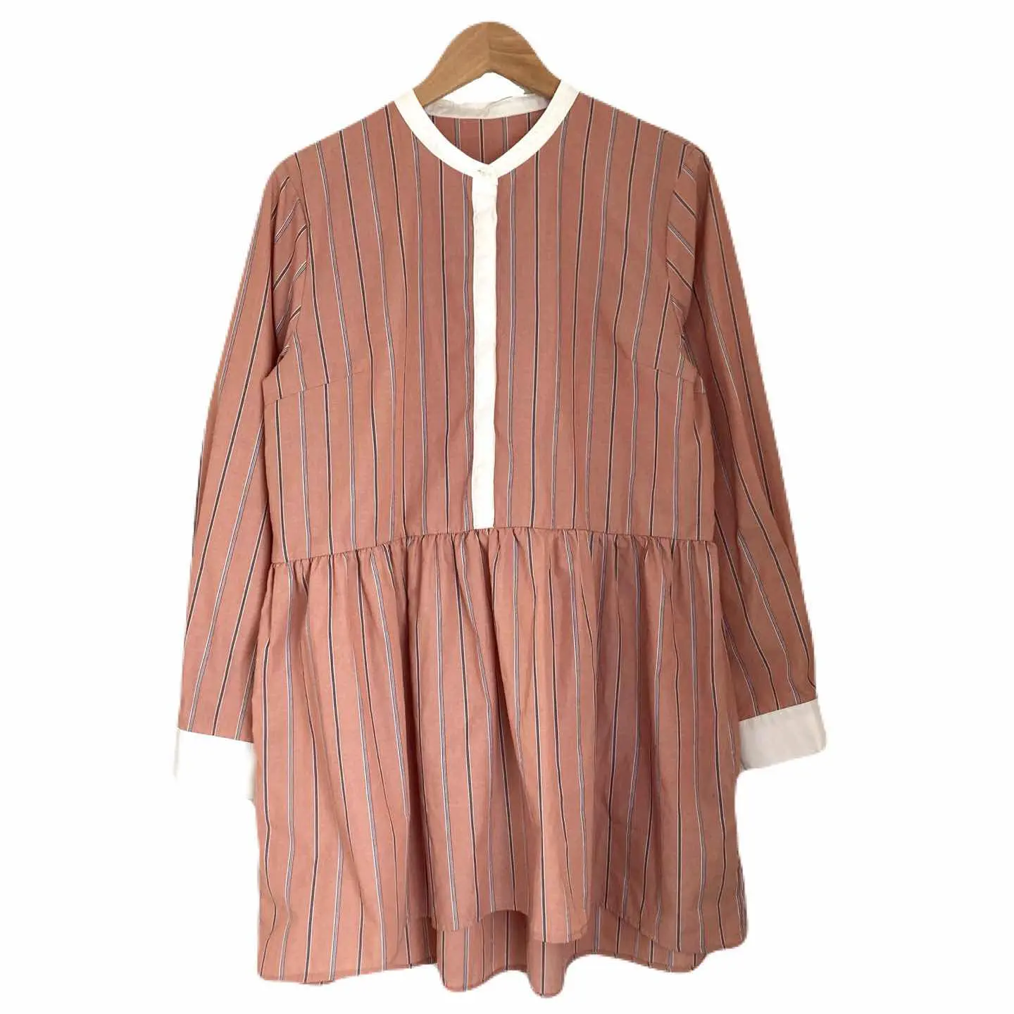 ■デザイン ・前立て、ネック周り、袖口を白に切り替えメリハリを出し、お仕事でもお使い頂ける様に甘くなりすぎないペプラムに仕上げました。 ・サイドから見た時のシルエットにこだわったペプラムがポイント。 ・シンプルなボトムに合わせるだけで主役級になるアイテム。 ■素材 ・ポリエステル混の綿ブロードの素材を使用しています。 ・ほどよく柔らかく張りすぎない素材感がポイント。 ■コーディネート ・少し丈を長めにしていますのでパンツスタイルがおすすめ。 ・デニムやキレイめなパンツなど幅広く合わせて頂けます。 ・白いパンツやデニムなどで合わせるだけで、爽やかな印象に見えるブラウス。 ブランド ships シップス 商品名 シップス ブロードペプラムブラウス ストライプ 長袖 コットン レディース サイズ フリーサイズ 肩幅39㎝ 身幅50㎝ 袖丈55㎝ 着丈75㎝ カラー ピンク系 #ABY280 #ふくしるべのシャツ