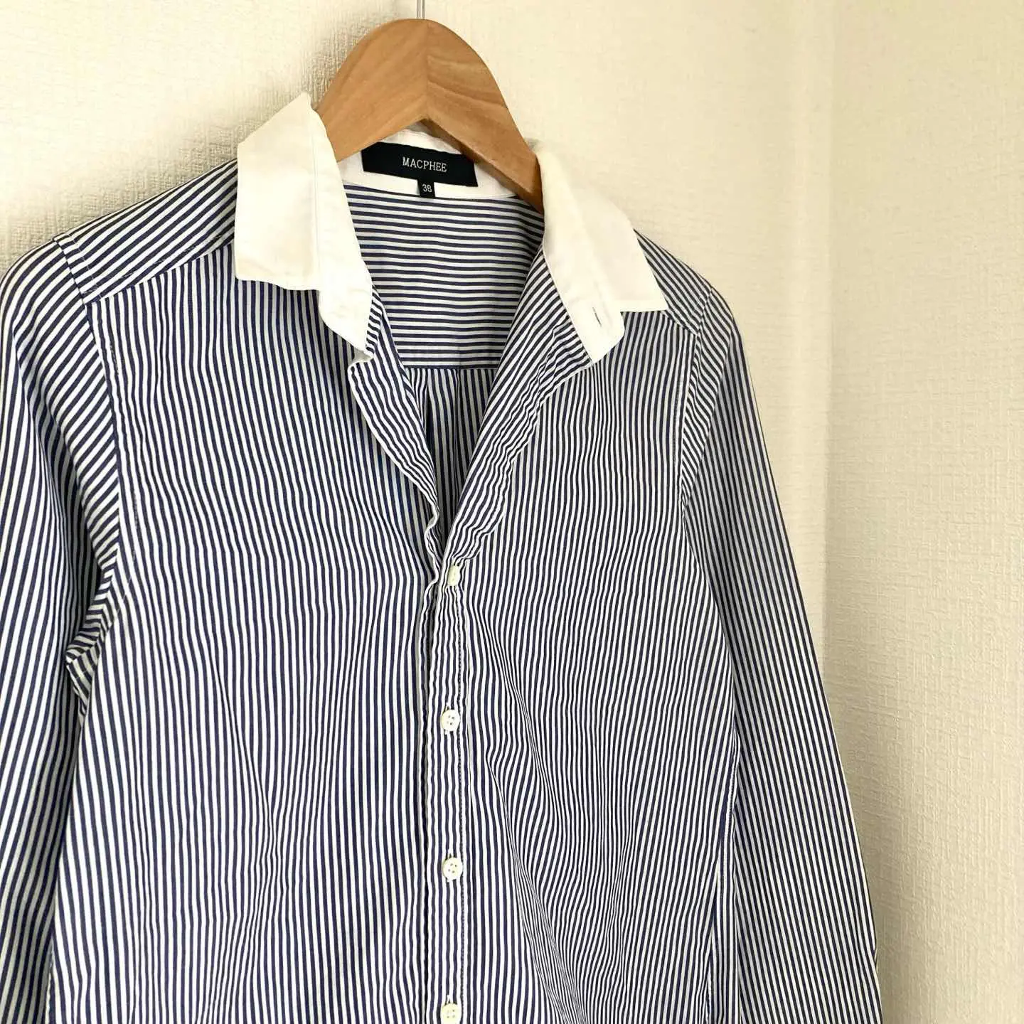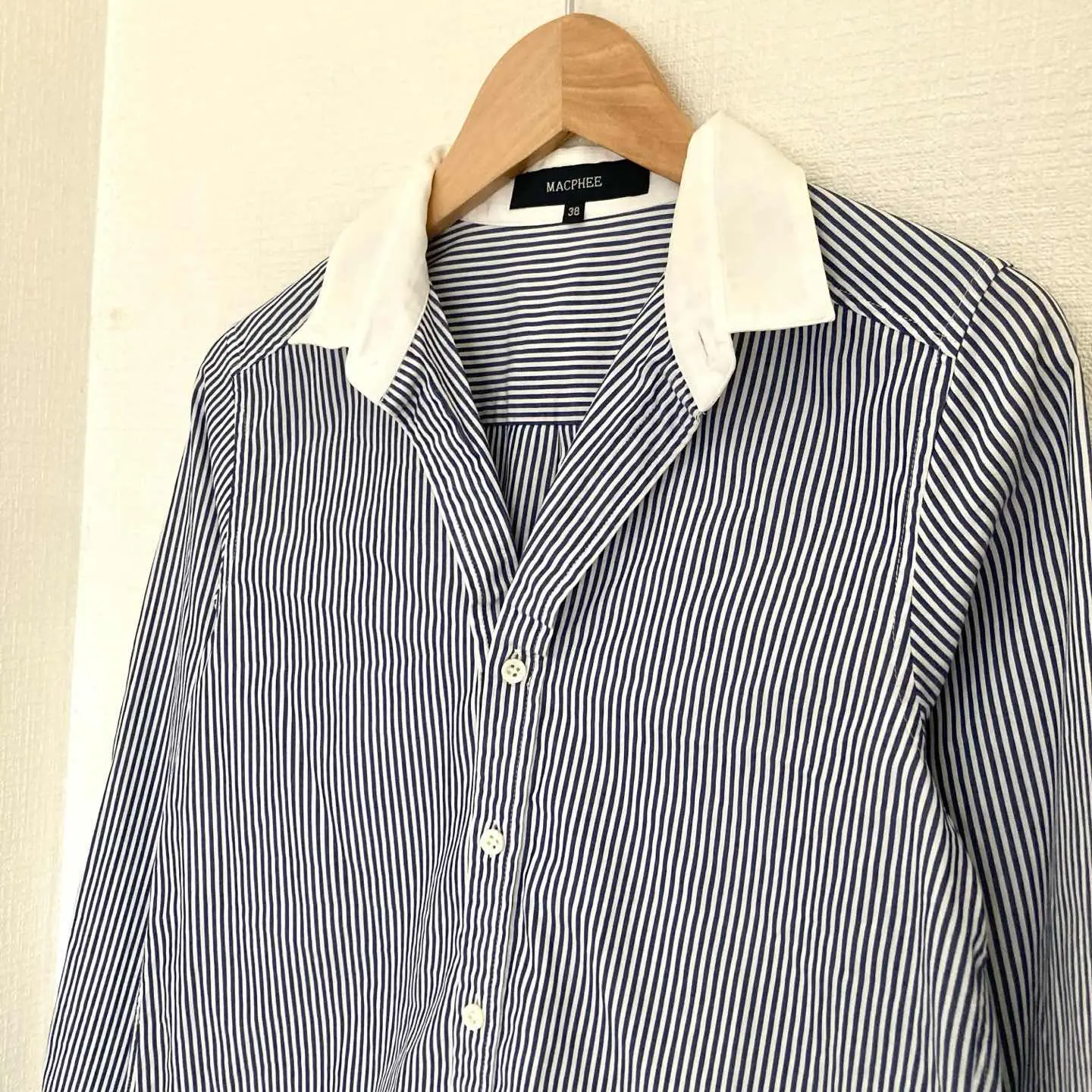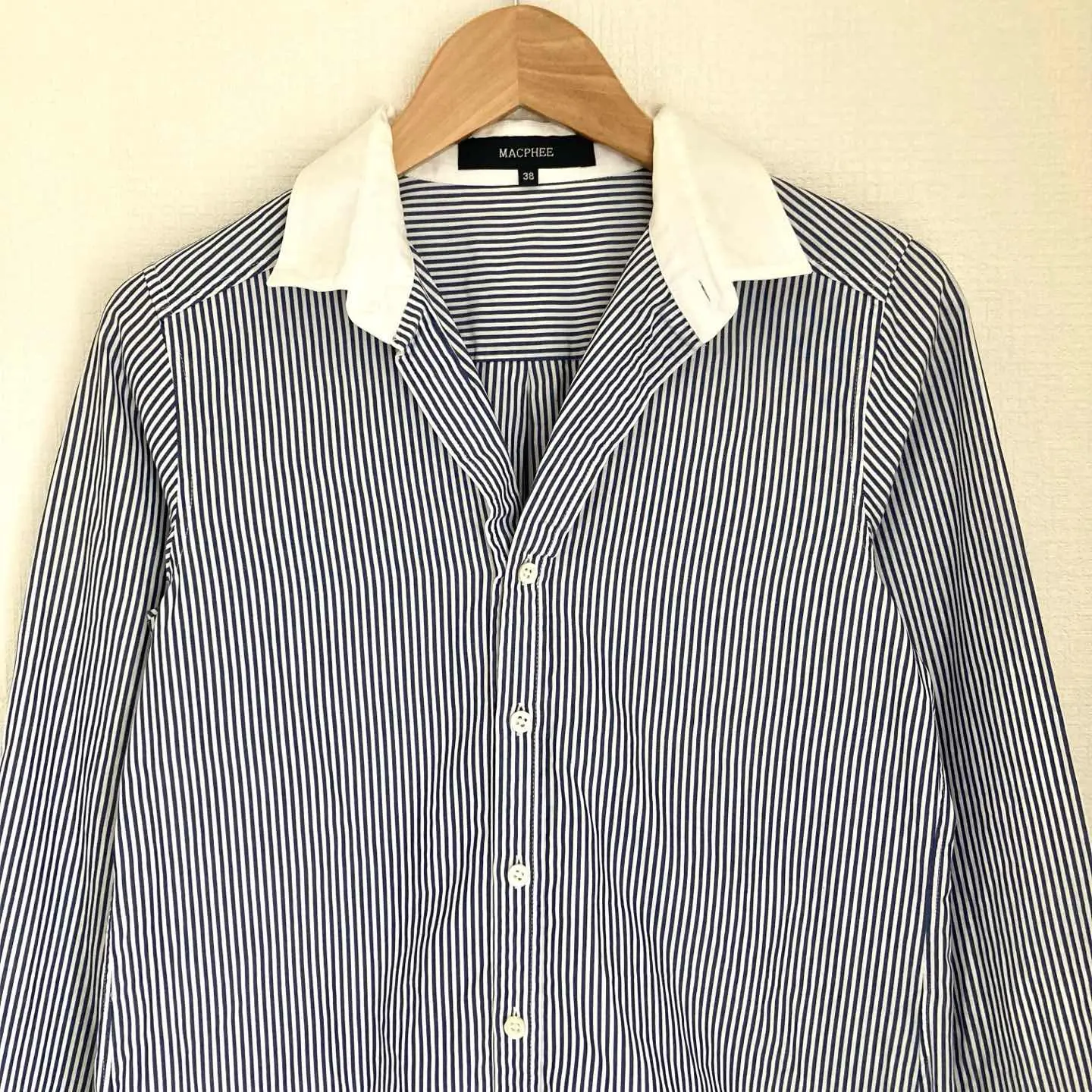 ブランド MACPHEE マカフィー 商品名 マカフィー ストライプ柄 シャツ 長袖 ブルー レディース 薄手 36 サイズ 36サイズ 肩幅36㎝ 肩幅42㎝ 袖丈58㎝ 着丈61㎝ カラー ブルー系 #ABY280 #ふくしるべのシャツ