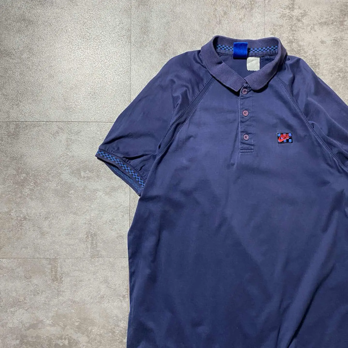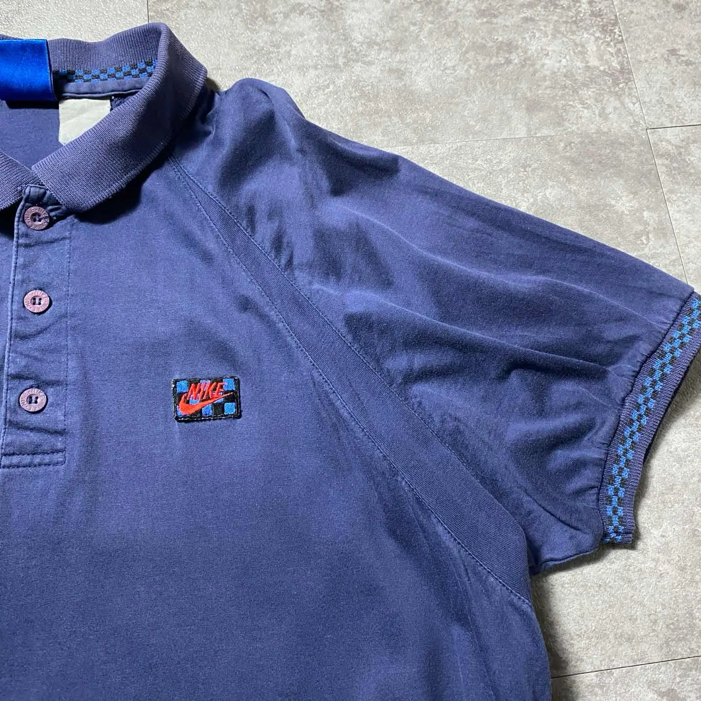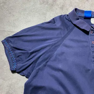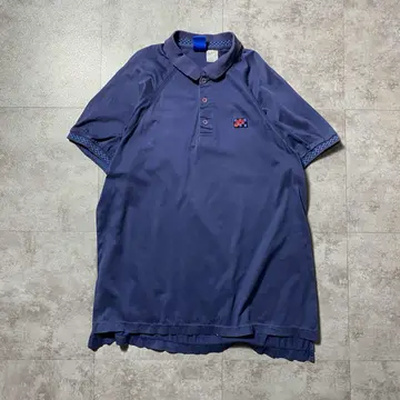 90s Structure ワッペン ストライプ デニム襟 ポロシャツ