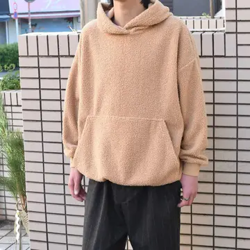 古着 ボア フーディ パーカー プルオーバー ベージュ