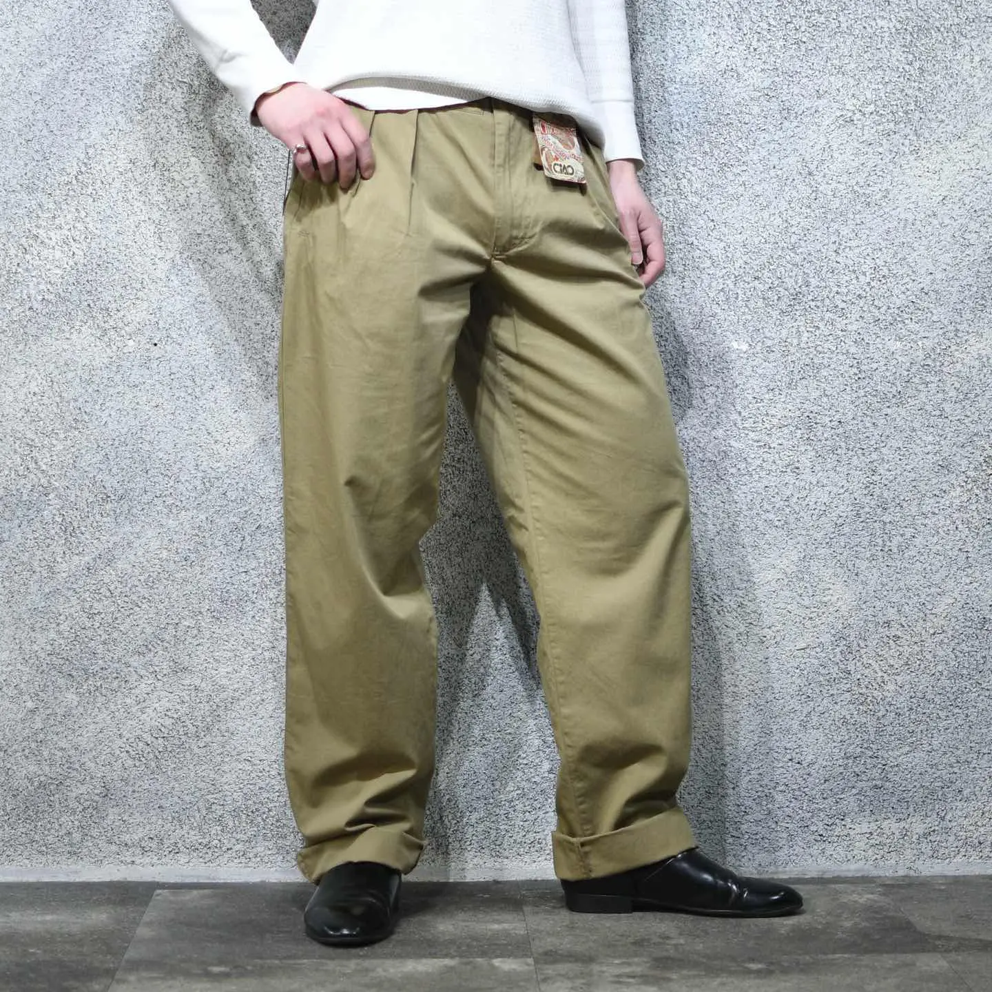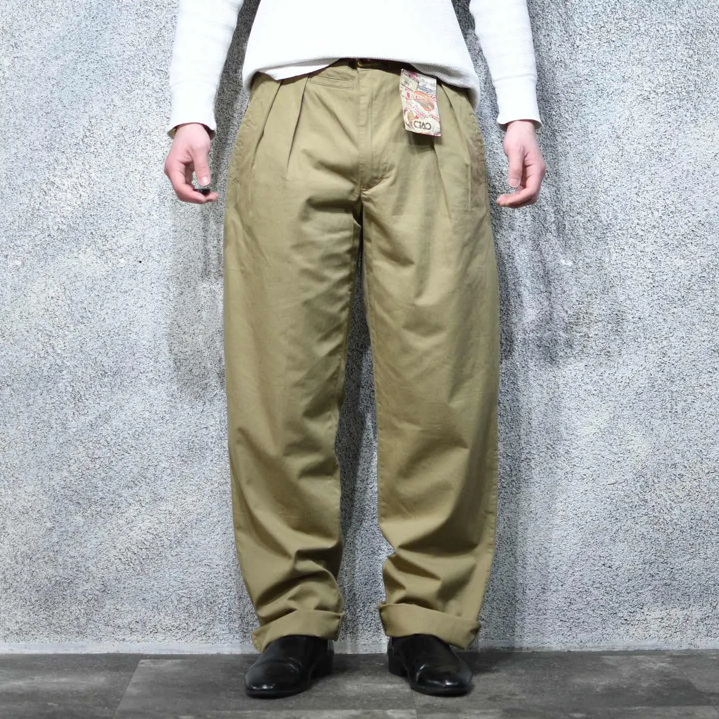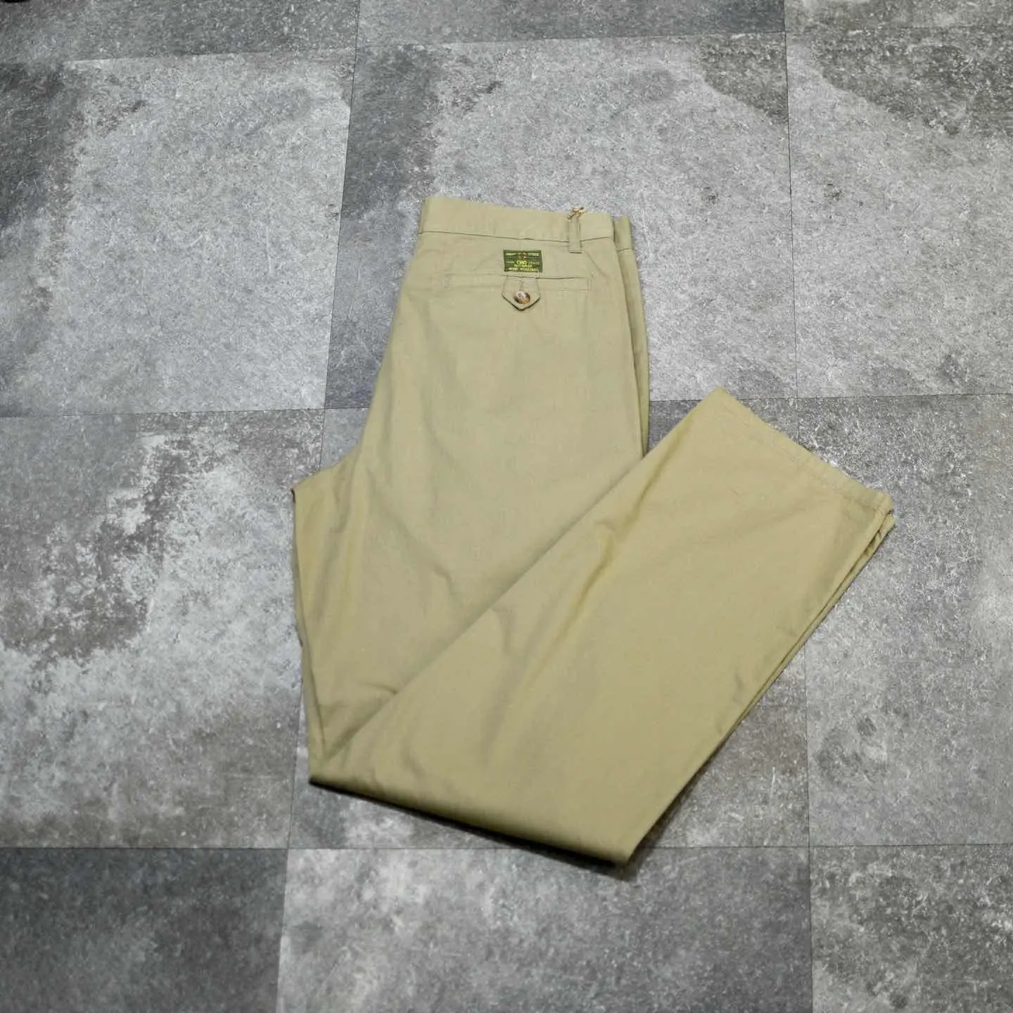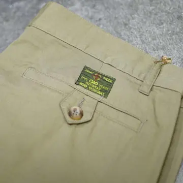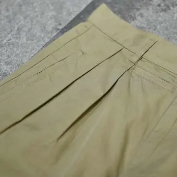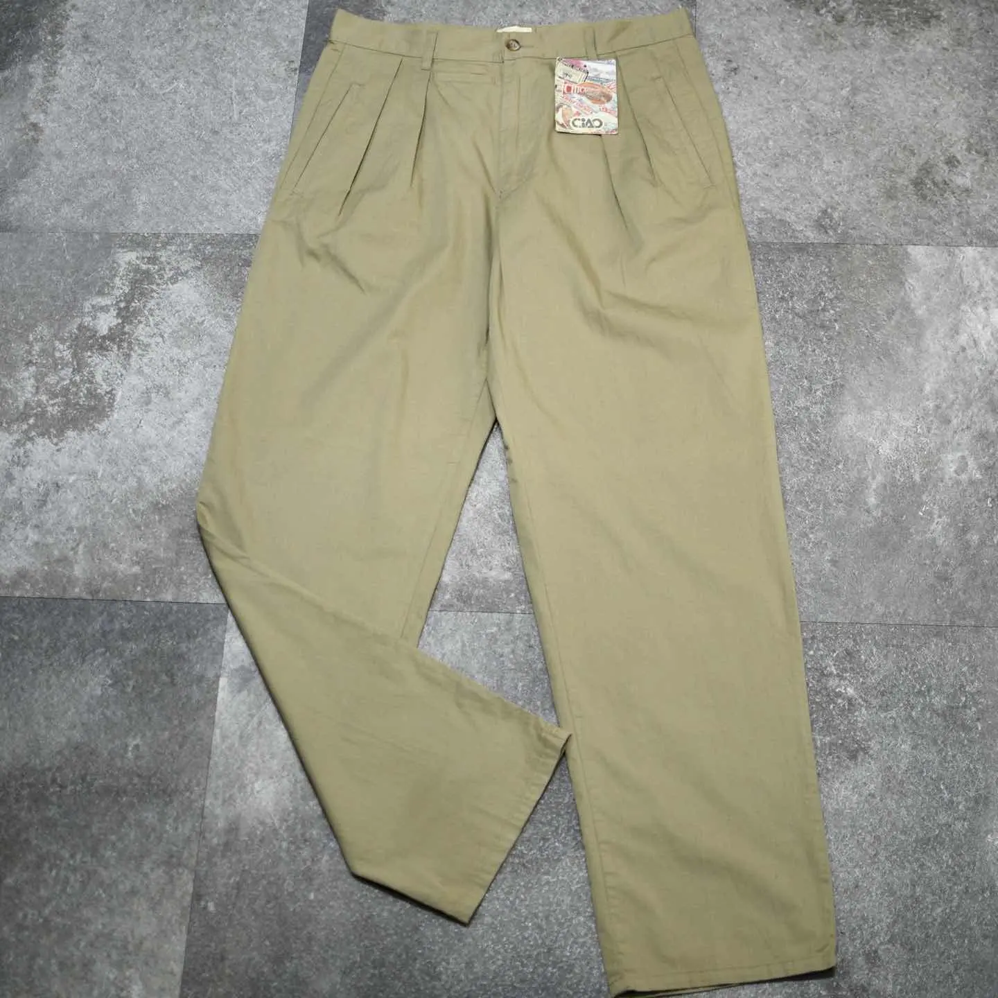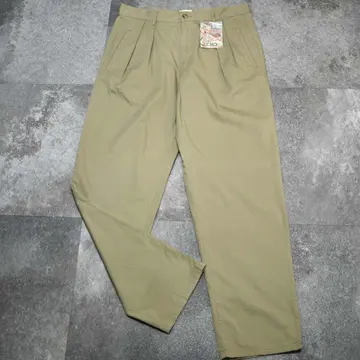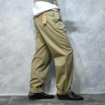 ウエスト83cm 総丈115cm 股下86cm わたり38cm 裾幅22.5cm fabric/cotton 着用画像 177cm/64kg 片側2つのインタック、コインポケットの位置。 チノの野暮ったさの中にも、どこさ品が 見え隠れする1本。 そんなユーロ古着らしいデザインは、 チノパンと言えば、なポロチノとの差別化としても 機能しますし、何よりチノを5本持つ自分にとっても新鮮さを感じた面白い個体。 長めなレングスは、丈を直してもいいですが 個人的にはロールアップ、尚且つ足元に溜めて 穿きたいなと。 Tシャツやスウェットなど、カジュアルなトップスと合わせるだけでなく、インタックから生まれる 太いだけではない綺麗なシルエットで、シャツなど 品のあるアイテムと合わせるのも◎ ※裾上げ等のレングス直しにつきましては、 購入前に、必ずご連絡お願い致します。 また、購入後の直しには対応出来かねます。 ※撮影状況により、実物と多少色が異なる 場合がございます。 ※古着を取り扱っているため、気づかない汚れや ほつれがある場合がございます。 ※サイズは着用感で選んでおり、表記サイズではございません。 old vintage ヴィンテージ used 80's 90's アメリカ古着 ユーロ古着 メンズ レディース POLO RALPH LAUREN Eddie Bauer OLD GAP Eddie Bauer LANDS' END ランズエンド LLBean エルエルビーン オールドギャップ エディーバウアー ラルフローレン ブルックスブラザーズ Brooks Brothers ワークパンツ などがお好きな方 #vintage #オーバーサイズ #old #used #90s #80s #古着 #ヴィンテージ #アメリカ古着 #ユーロ古着 #古着男子 #古着女子 #LLBean #エルエルビーン #EddieBauer #エディーバウアー #oldgap #オールドギャップ #LANDSEND #ランズエンド #NAUTICA #ノーティカ #ラルフローレン #POLORALPHLAUREN #ブルックスブラザーズ #BrooksBrothers #チノパン #デッドストック #ワイドパンツ #タックパンツ #ワークパンツ