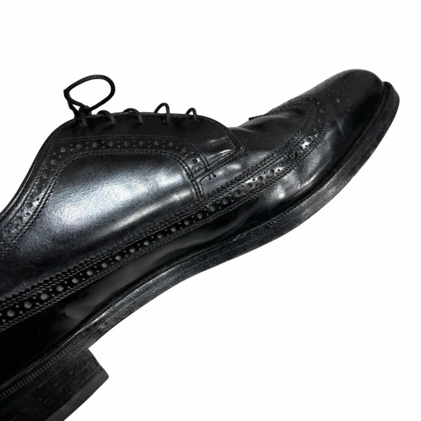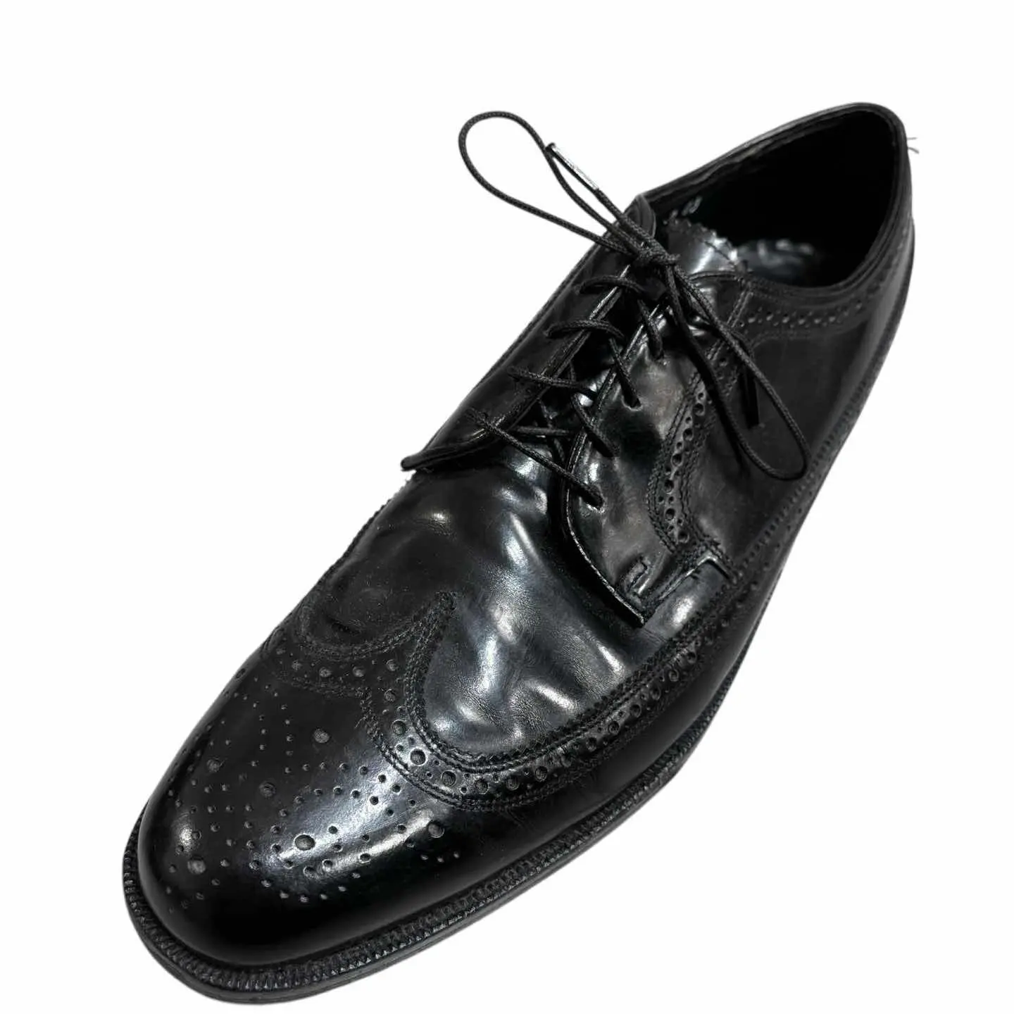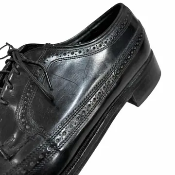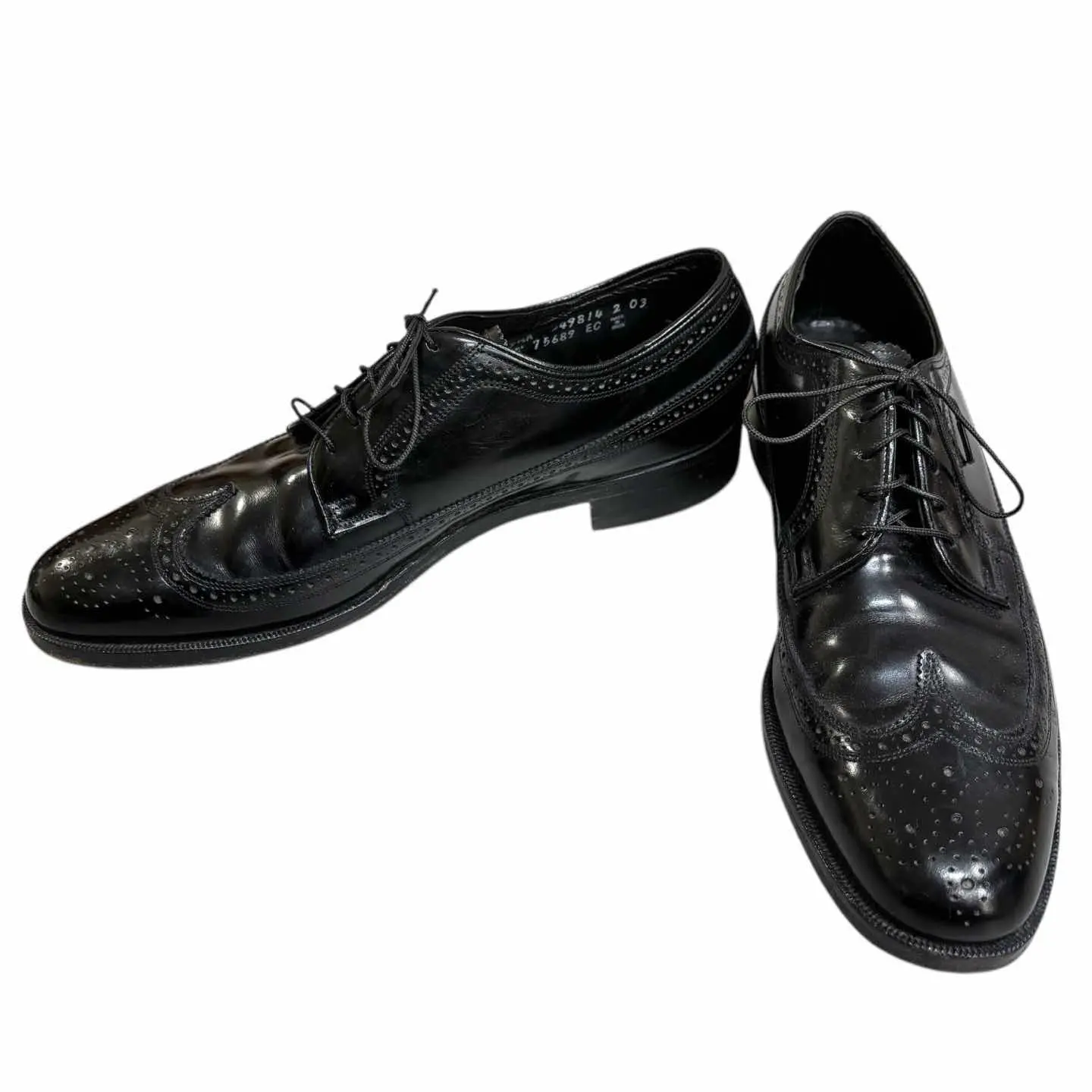【商品名】80-90s FLORSHEIM black long wing tip leather shoes 9 1/2 【ブランド】FLORSHEIM 【コンディション】B ______________________ アメリカントラッドを象徴する アメリカの老舗シューズブランド、FLORSHEIM。 ウイングチップを採用した ブラックレザーシューズ。 カジュアル感や トラッドな雰囲気を演出しやすいとされる メダリオンの装飾が施されたデザイン。 その発祥が労働靴なこともあり カジュアルシーンとの相性も良いとされています。 スラックスやデニム、ワークパンツ、 ミリタリーなど 幅広いアイテムとのスタイリングにオススメです。 サイズ:9 1/2 全長 30.5cm 甲周り 14cm 底幅 10cm ヒール高さ 3cm