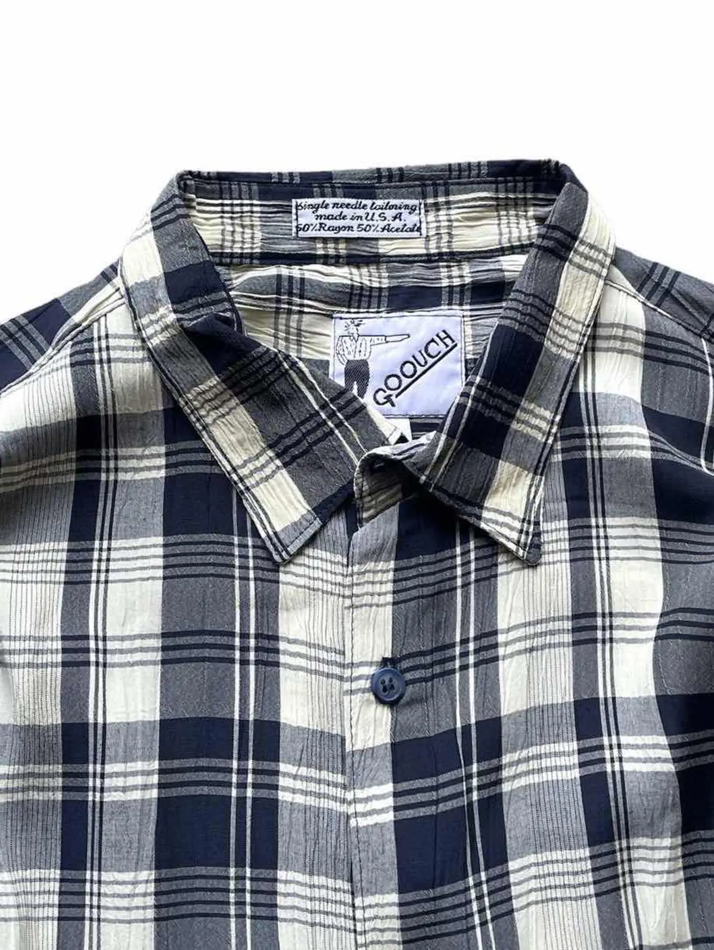 80s〜90s グーチ レーヨンチェックシャツ Made in USA デザインと素材に定評のあるGOOCHより春夏にぴったりな1着 ボックスシルエットにレーヨン×アセテート、しかもUSA製と条件も抜群です。 サイズ 表記 XL 実寸 身幅70cm 着丈80cm #古着 #vintage #ヴィンテージ #ニューヴィンテージ #グーチ #goouch #usa製