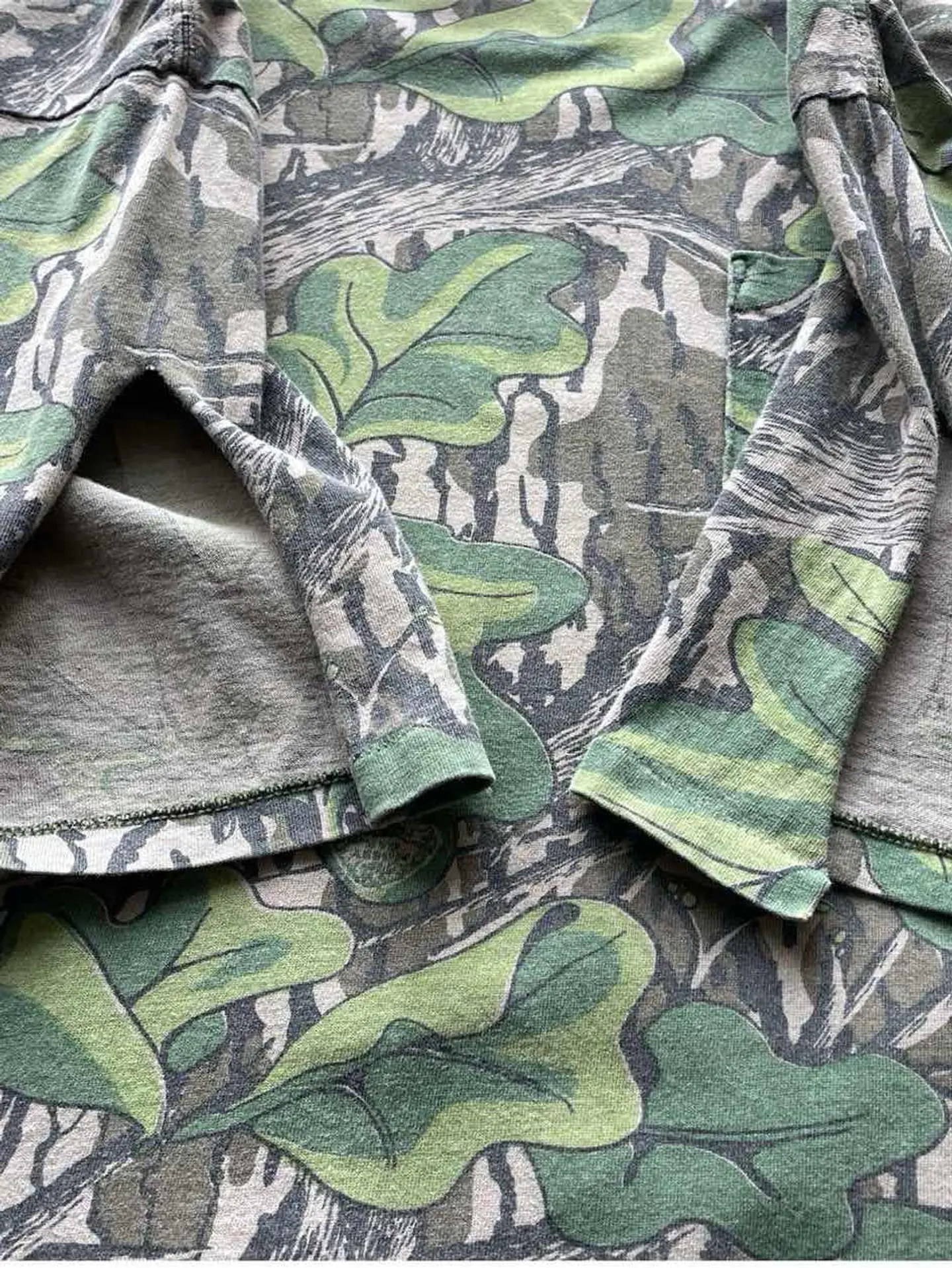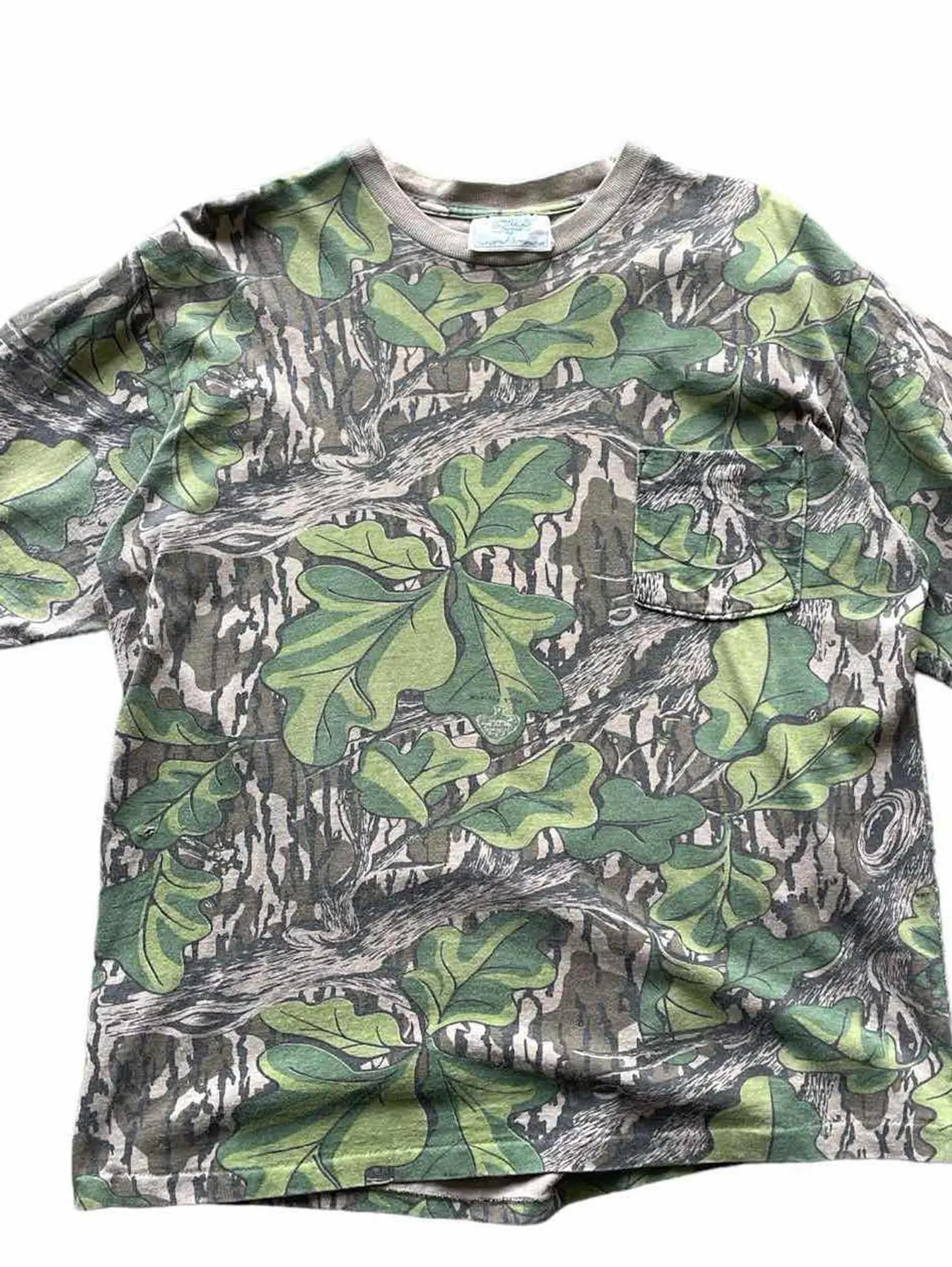 〜90s MOSSY OAK リアルツリーカモ ポケットTシャツ Made in USA リアルツリーのようなリーフのような ちゃんと成立してるレギュラーボロTeeもいいですね。 サイズ 表記 XL 実寸 身幅62cm 着丈69cm