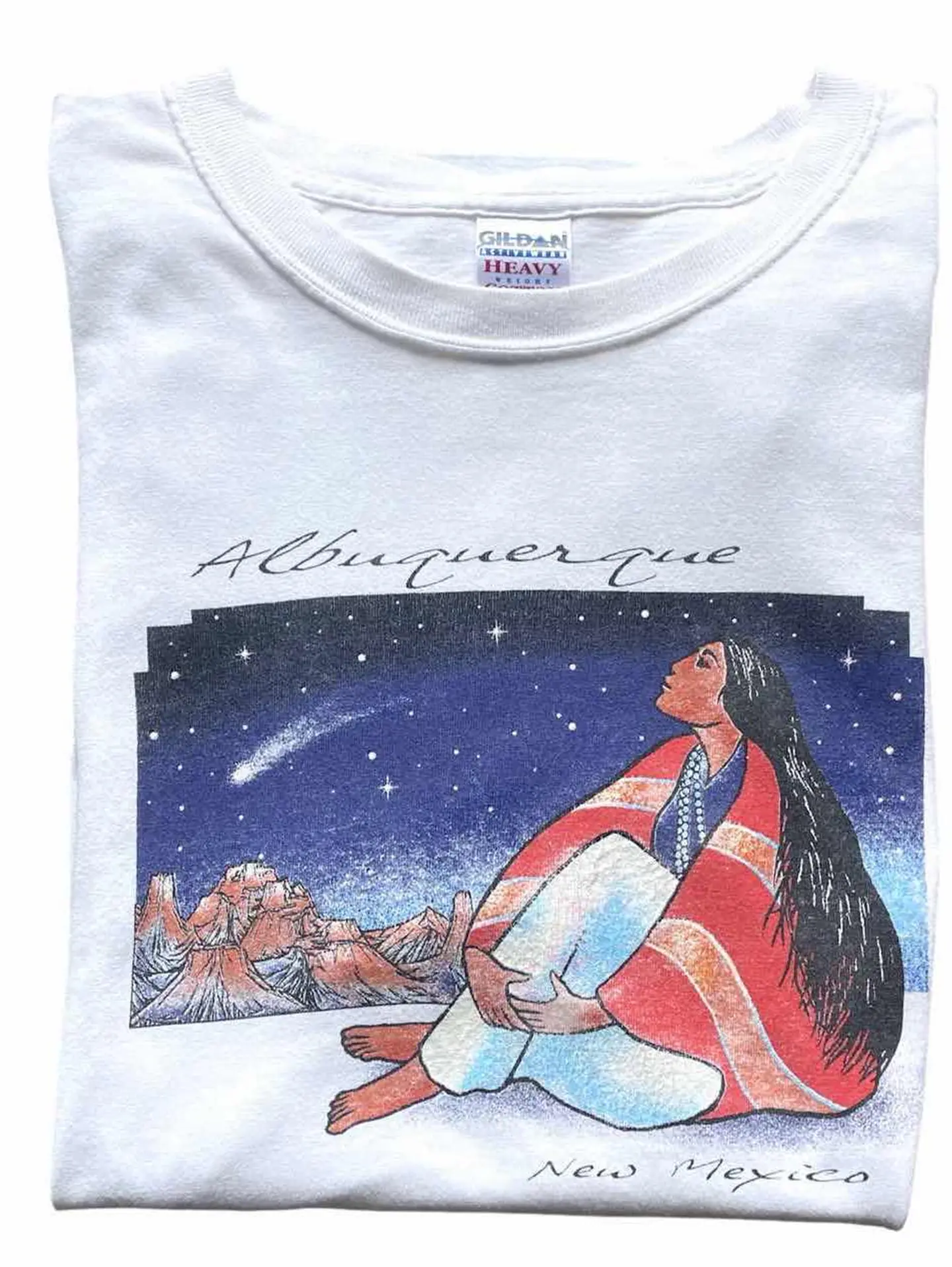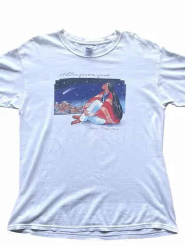 90s〜00s Gildan インディアンプリント スーベニア ニューメキシコ州のインディアン部族のプリントです。 ツラも良くボディもギルダン社製でまさにグッドレギュラーな1着 シミと小穴はありますが古着慣れされた方であれば問題ないコンディションかと。 サイズ 表記 L 実寸 身幅56cm 着丈75cm 写真以外で気になる箇所がある方はコメントくださいませ。 #古着 #vintage #ヴィンテージ #ギルダン #スーベニア