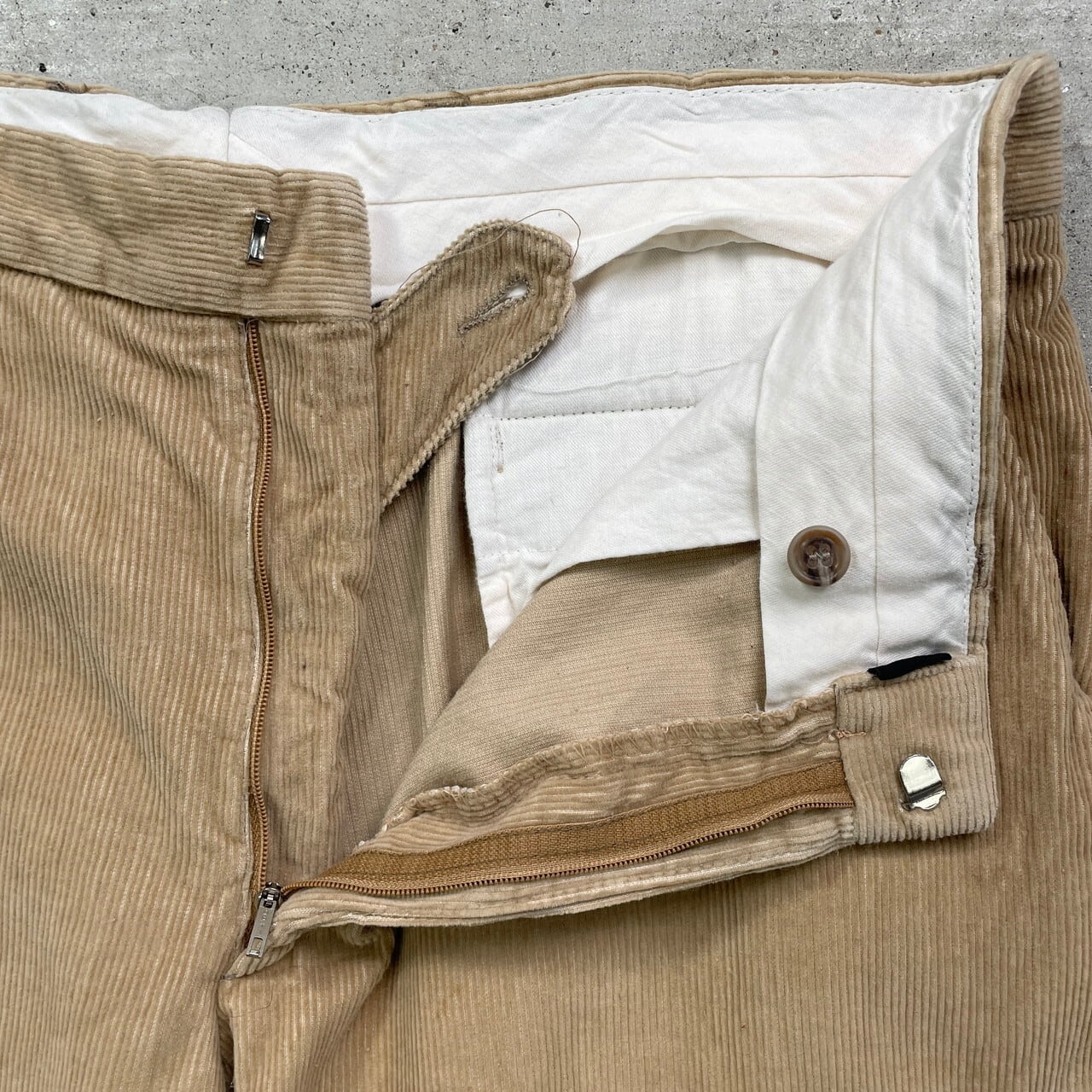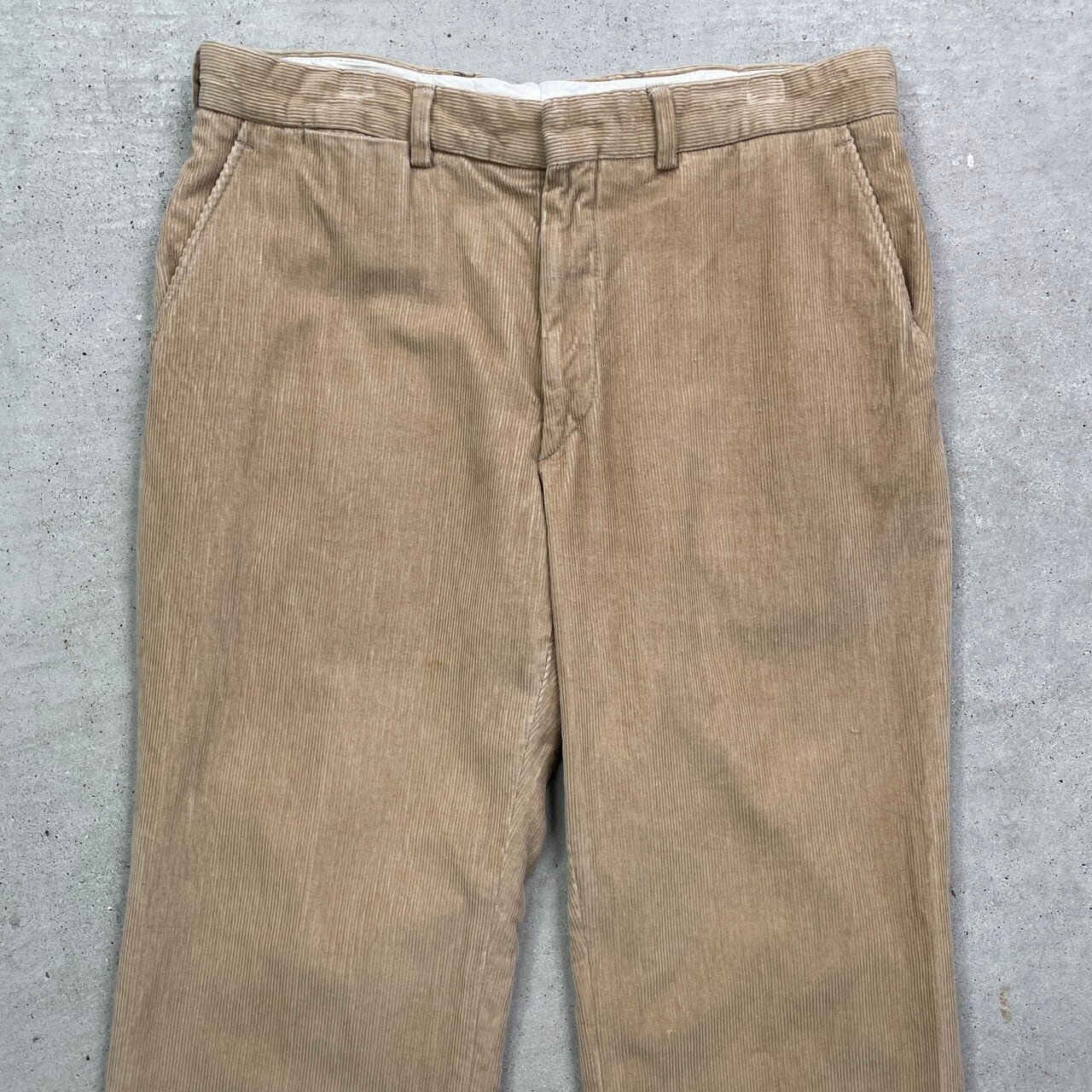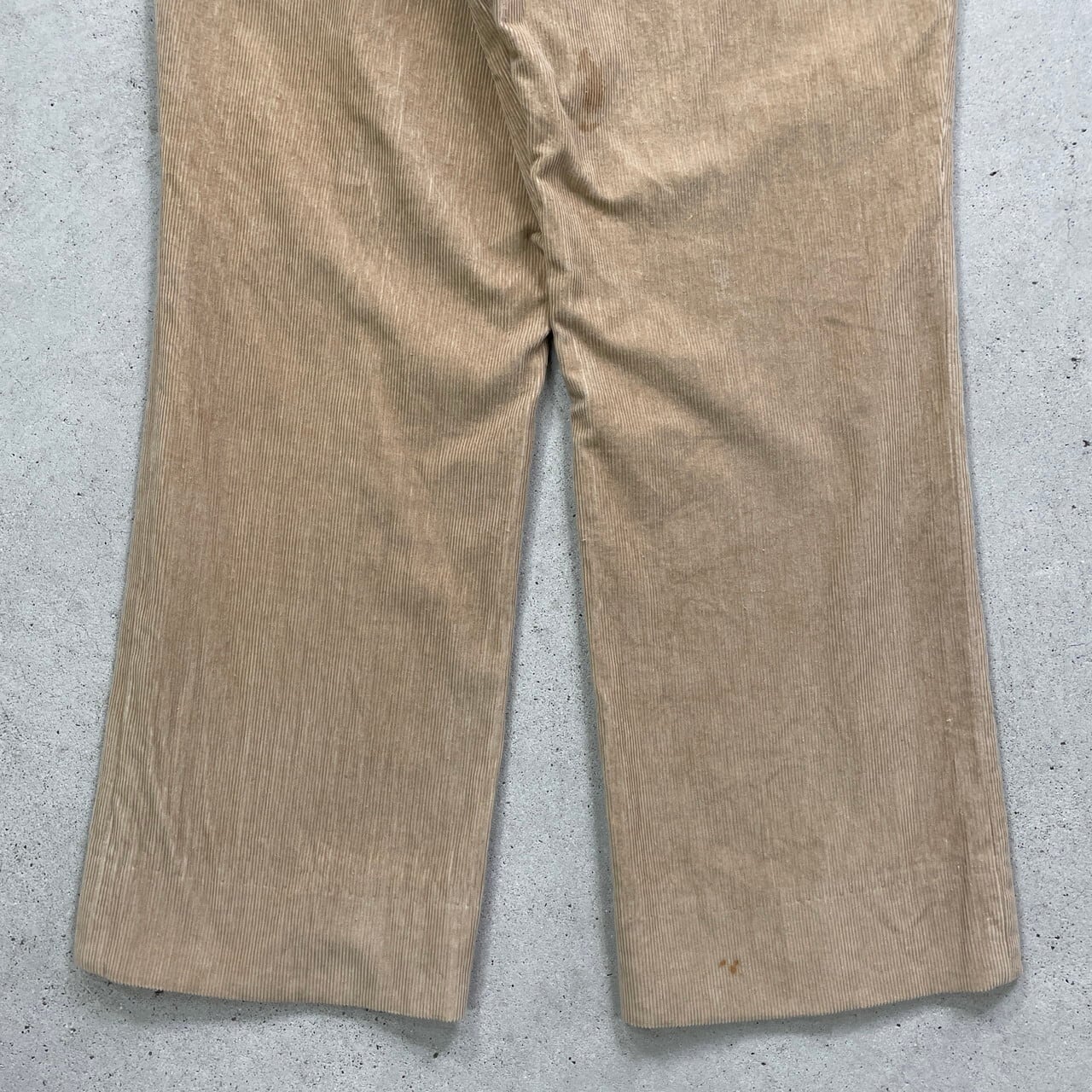■80年代 コーデュロイパンツ メンズW33相当 古着 80s VINTAGE ヴィンテージ ウォッチポケット ピンロックOPTIジッパー【コーデュロイパンツ】/ベージュ 【サイズ】表記 不明(実寸W33相当) ※計測値をご確認ください。 ウエスト(平置き×2)…84 ワタリ幅…29 股上...26 股下…70 裾幅…24 【生産国】不明 【素材】不明 おそらくコットンとポリエステルの混紡かと思われます。 【状態】太もも付近や裾付近に汚れがございます。 画像にてご確認ください。 【c250424156】 ※古着は洗濯、検品などのケアを行っております。(新品・デッドストックは洗濯していません。) ※モニターの発色により実物と異なる場合がございます。予めご了承ください。 ※ 海外直輸入USED品になります。