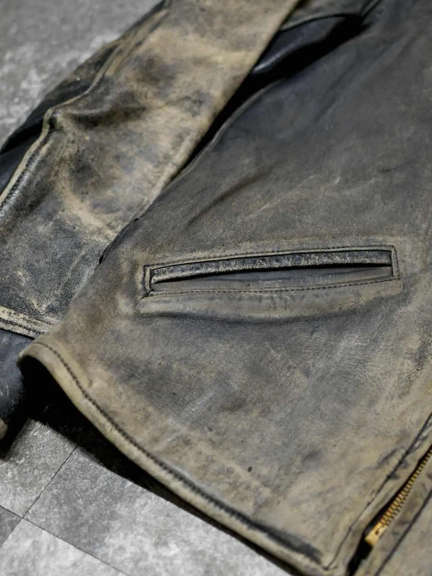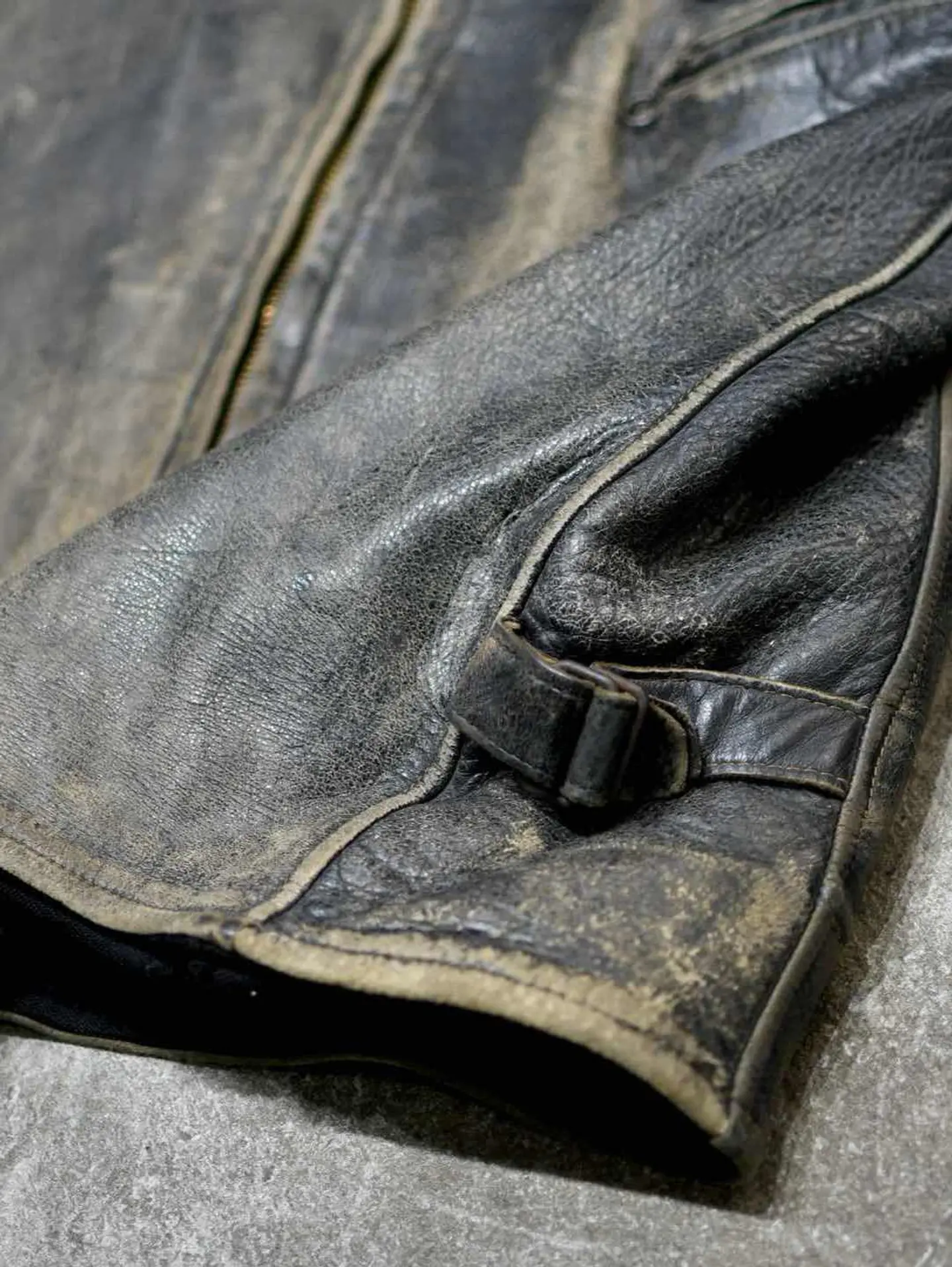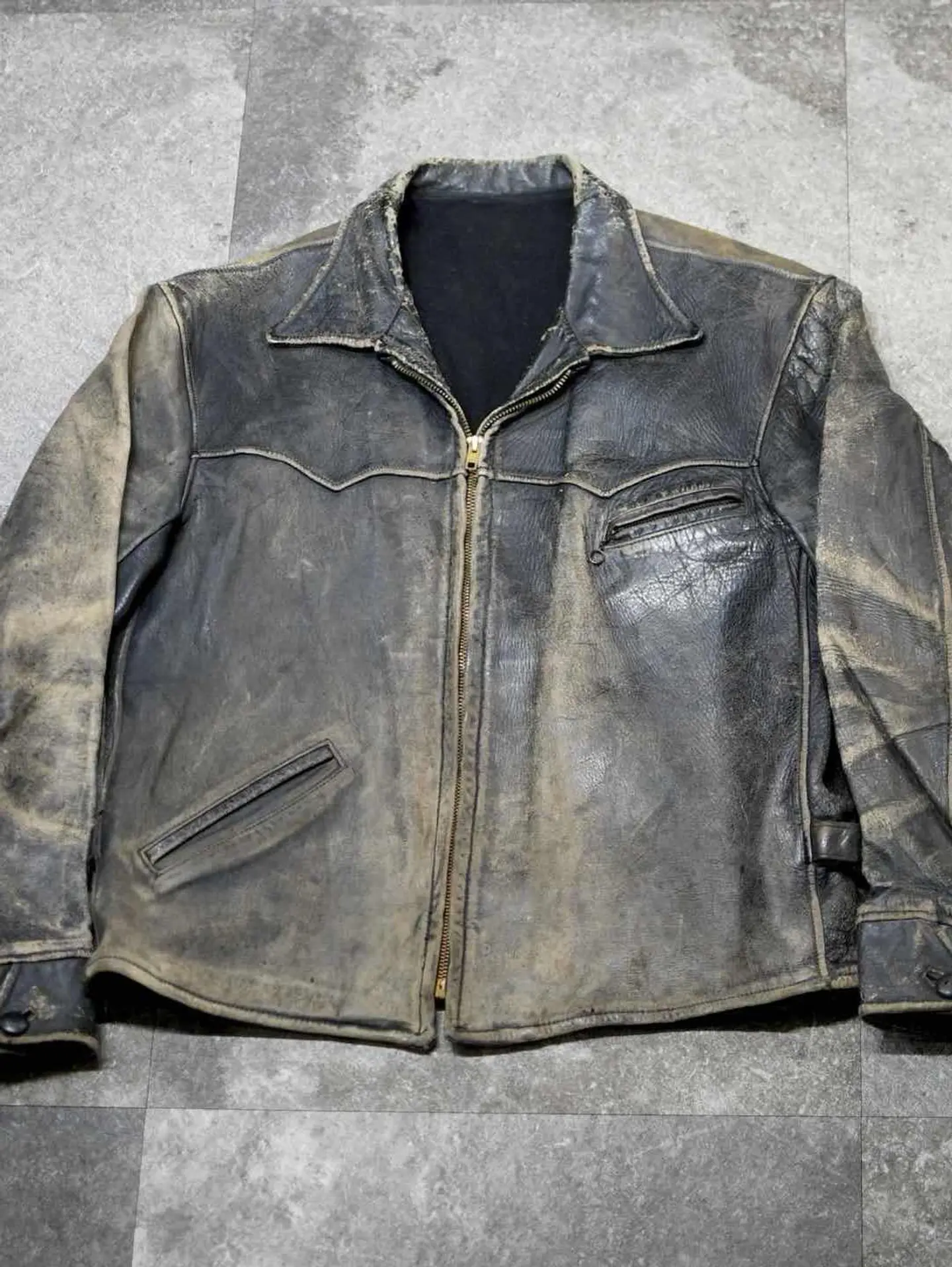 着丈67cm 肩幅52cm 身幅58cm 袖丈60cm fabric/leather 着用画像 177cm/64kg 古着の中で1部。季節というものを取り除いて 探してこそ見つかるアイテムがあるかと思います。 こんなレザージャケットも、その類として 見て頂ければ幸いです。 裏地はウール、サイドにはアジャスターの付く 40'sのスポーツジャケット。 フロントジップは、前任者がキレイにYKKジップに取り替えてくれています。 フェードしたレザーの色合いと、擽られる男心。 一生モノのジャケットとして。 ※撮影状況により、実物と多少色が異なる場合が ございます。 ※古着を取り扱っているため、気づかない汚れや ほつれ等がある場合がございます。 予めご了承ください。 ※サイズは着用感で選んでおり、表記サイズではございません。 古着 オーバーサイズ old vintage ヴィンテージ used 80's 90's アメリカ古着 ユーロ古着 メンズ レディース POLO RALPH LAUREN Eddie Bauer OLD GAP Eddie Bauer LANDS' END ランズエンド LLBean エルエルビーン オールドギャップ エディーバウアー ラルフローレン ブルックスブラザーズ Brooks Brothers ブラック 黒 50's ジャケット ライダース などがお好きな方 #vintage #オーバーサイズ #old #used #90s #80s #古着 #ヴィンテージ #アメリカ古着 #ユーロ古着 #古着男子 #古着女子 #LLBean #エルエルビーン #EddieBauer #エディーバウアー #oldgap #オールドギャップ #LANDSEND #ランズエンド #NAUTICA #ノーティカ #ラルフローレン #POLORALPHLAUREN #ブルックスブラザーズ #BrooksBrothers #ライダースジャケット #ライダース #レザージャケット #ジャケット #シングルライダース