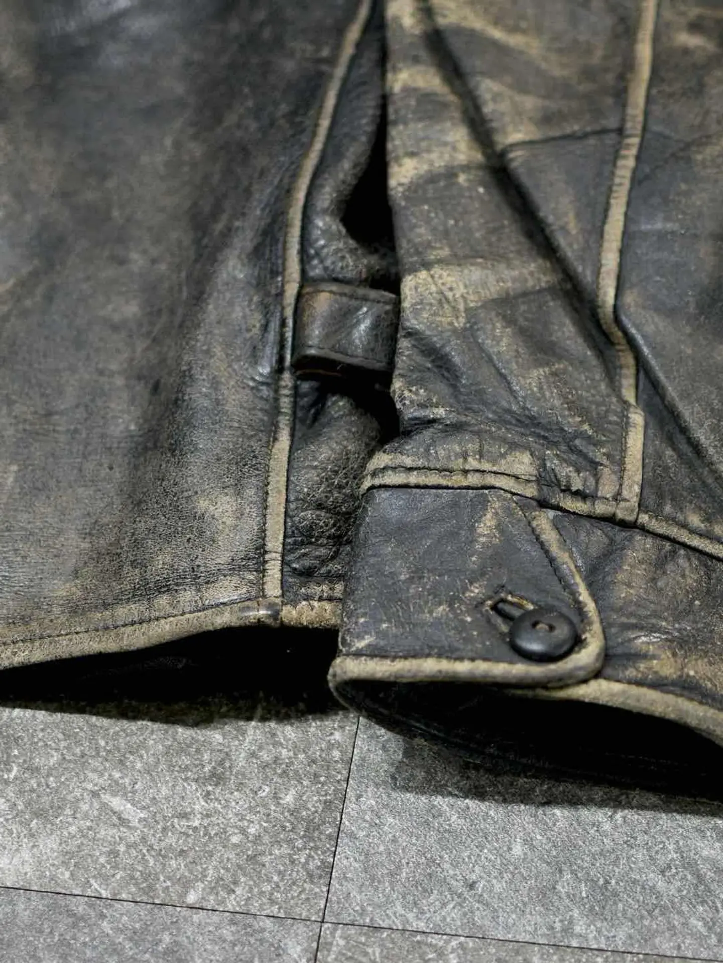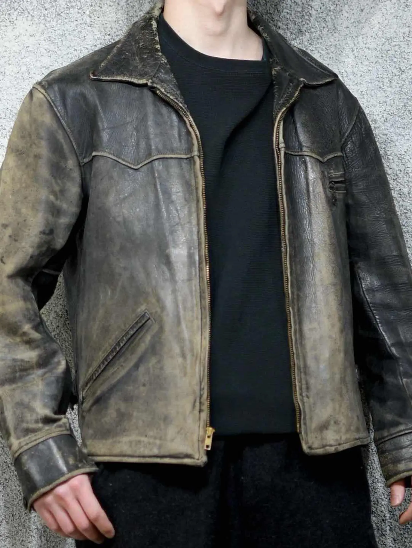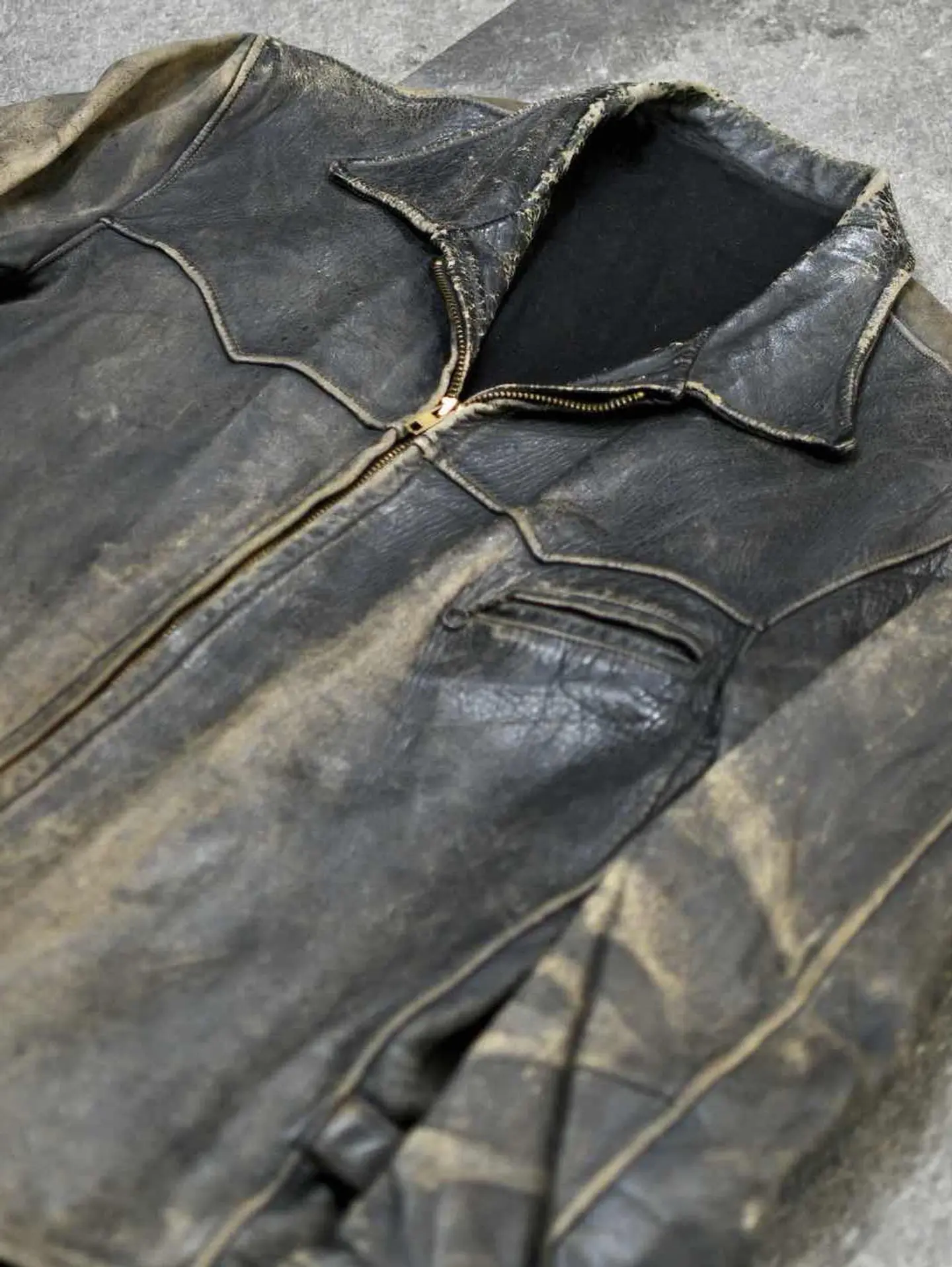 着丈67cm 肩幅52cm 身幅58cm 袖丈60cm fabric/leather 着用画像 177cm/64kg 古着の中で1部。季節というものを取り除いて 探してこそ見つかるアイテムがあるかと思います。 こんなレザージャケットも、その類として 見て頂ければ幸いです。 裏地はウール、サイドにはアジャスターの付く 40'sのスポーツジャケット。 フロントジップは、前任者がキレイにYKKジップに取り替えてくれています。 フェードしたレザーの色合いと、擽られる男心。 一生モノのジャケットとして。 ※撮影状況により、実物と多少色が異なる場合が ございます。 ※古着を取り扱っているため、気づかない汚れや ほつれ等がある場合がございます。 予めご了承ください。 ※サイズは着用感で選んでおり、表記サイズではございません。 古着 オーバーサイズ old vintage ヴィンテージ used 80's 90's アメリカ古着 ユーロ古着 メンズ レディース POLO RALPH LAUREN Eddie Bauer OLD GAP Eddie Bauer LANDS' END ランズエンド LLBean エルエルビーン オールドギャップ エディーバウアー ラルフローレン ブルックスブラザーズ Brooks Brothers ブラック 黒 50's ジャケット ライダース などがお好きな方 #vintage #オーバーサイズ #old #used #90s #80s #古着 #ヴィンテージ #アメリカ古着 #ユーロ古着 #古着男子 #古着女子 #LLBean #エルエルビーン #EddieBauer #エディーバウアー #oldgap #オールドギャップ #LANDSEND #ランズエンド #NAUTICA #ノーティカ #ラルフローレン #POLORALPHLAUREN #ブルックスブラザーズ #BrooksBrothers #ライダースジャケット #ライダース #レザージャケット #ジャケット #シングルライダース