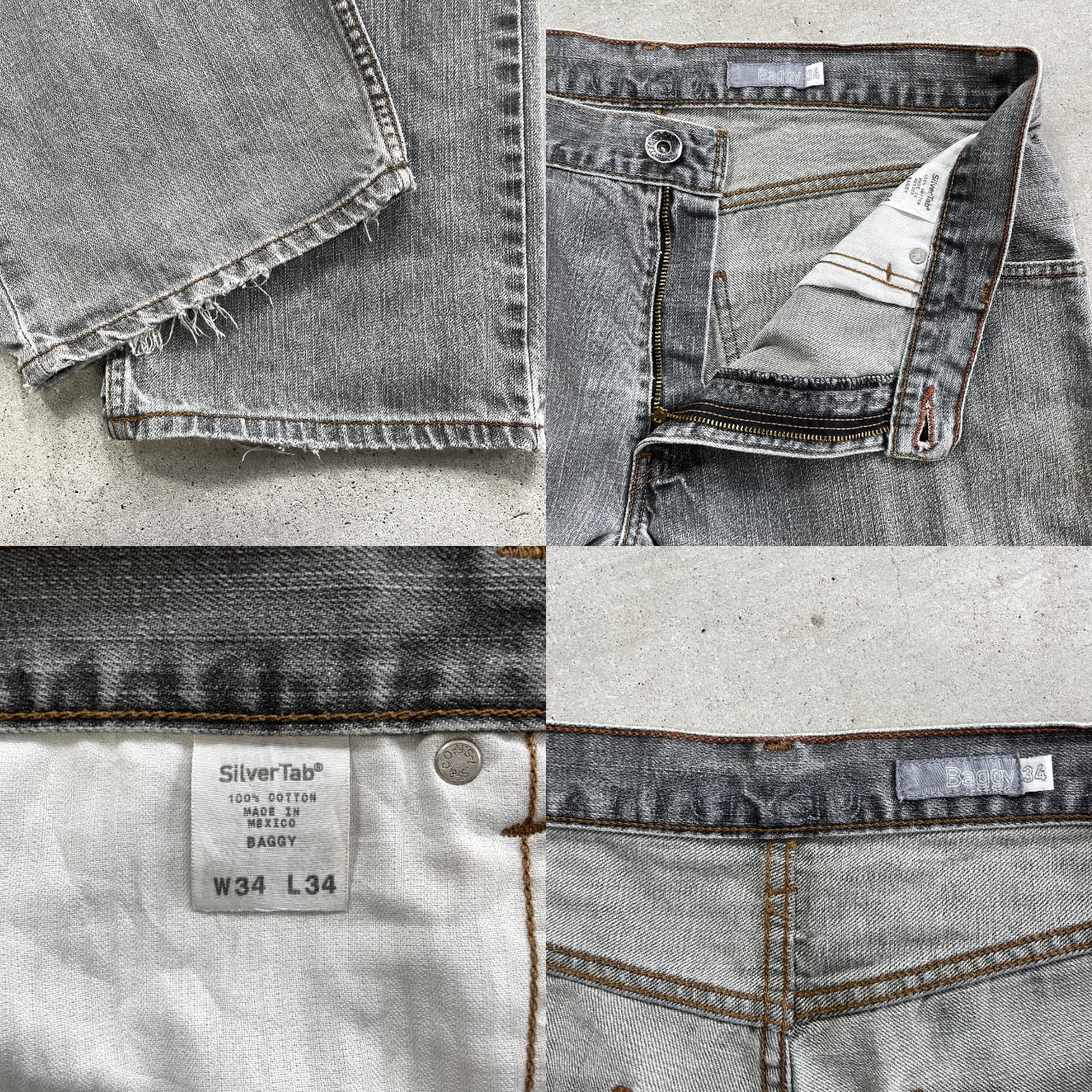 ■00年代 Levi's SILVERTAB リーバイス シルバータブ バギーデニムパンツ BAGGY メンズW34 古着 00s ヴィンテージ VINTAGE Y2K アメカジ ジーンズ ワイドデニム ルーズデニム ブラックデニム グレーデニム 先染め 墨黒 灰色【デニムパンツ】/ブラック ◎バギーデニムといえばな極太シルエット ゆるくテーパードが効いているので溜まり具合も良いのがポイント サイズアップしすぎなくてもしっかり太く履けます 【ブランド】Levi's リーバイス ボタン裏刻印:322M 【サイズ】表記 W34 L34(実寸約W36 L32) ウエスト、レングスに伸び縮みがございます。 ※計測値をご確認ください。 ウエスト(平置き×2)…91 ワタリ幅…37.5 股上…29.5 股下...82.5 裾幅…25 【生産国】メキシコ製 【素材】コットン100% 【状態】全体的にフェード、裾に擦り切れ等の使用感がございます。 画像にてご確認ください。 【c250424004】 ※古着は洗濯、検品などのケアを行っております。(新品・デッドストックは洗濯していません。) ※モニターの発色により実物と異なる場合がございます。予めご了承ください。 ※ 海外直輸入USED品になります。