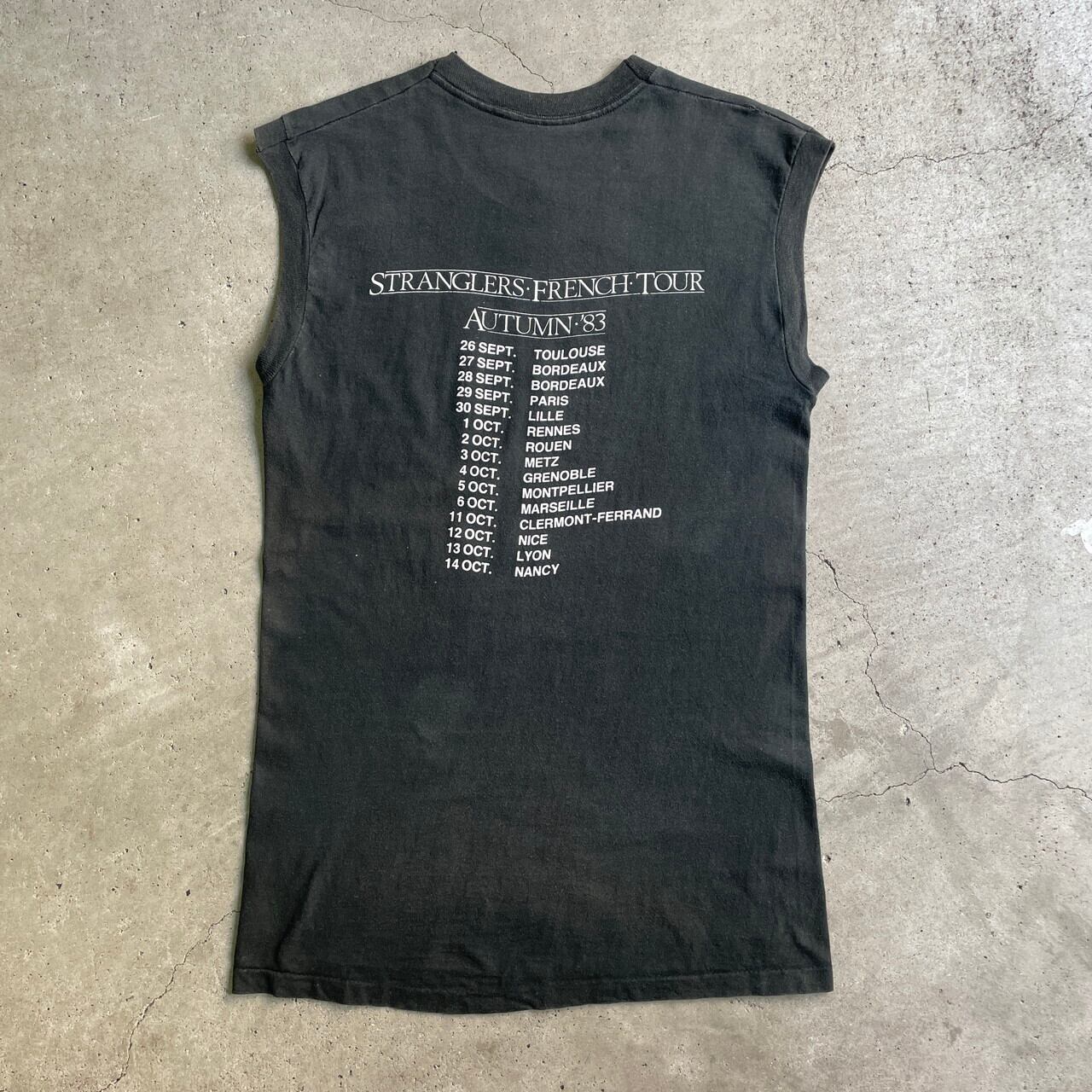 ■80年代 The Stranglers ストラングラーズ FELINE ノースリーブ バンドTシャツ メンズS相当 レディース M相当 古着 80s ビンテージ ヴィンテージ FRENCH TOUR 1983 両面プリント バックプリント シングルステッチ バンT フェードブラック 墨黒 【Tシャツ】 ◎70年代結成、パンクムーブメントの代表格のイギリス発パンクロックバンド"The Stranglers" 1983年リリースのアルバムFELINEのツアーT グラフィックはもちろん、リブ付きのノースリーブ仕様が独特ながらファッション的にもナイスな一枚です 【ブランド】FRUIT OF THE LOOM フルーツオブザルーム 【サイズ】表記 M(着用感メンズS相当 レディースM相当) ※計測値をご確認ください。 着丈…68 肩幅…46 身幅…44 【生産国】不明 【素材】不明(おそらくコットン,ポリエステルかと思われます。) 【状態】 多少のフェード等の使用感はございますが、 目立った汚れやダメージ等は無くまだまだ長く愛用していただけます。 画像にてご確認ください。 【c250422003】 ※古着は洗濯、検品などのケアを行っております。(新品・デッドストックは洗濯していません。) ※モニターの発色により実物と異なる場合がございます。予めご了承ください。 ※ 海外直輸入USED品になります。