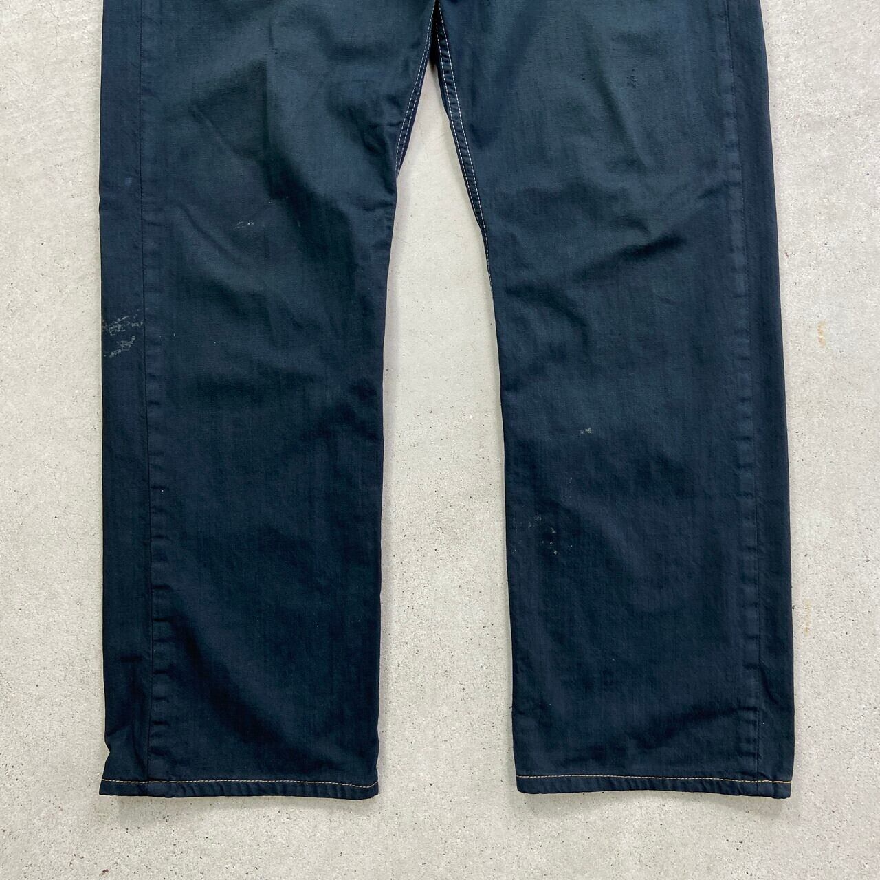 ■Levi's リーバイス 569 ブラックデニムパンツ ルーズストレート 後染め メンズW34 古着 アメカジ ヴィンテージ VINTAGE ワイドストレート ジーンズ ワイドデニム 黒色【デニムパンツ】/ブラック ◎シルバータブのLOOSEに近い 程よくバギーした太ストレートシルエット 価格的にシルバータブよりも買いやすく、 緩く履けるデニムをお探しの方にピッタリのモデル こちらはブラックに後染めを施しており、 古着で探すとなかなか無い太く履けるブラックデニムにカスタムしました 染まらずにに浮かび上がったステッチもポイントです 【ブランド】Levi's リーバイス 【サイズ】表記 W34 L34 ※計測値をご確認ください。 ウエスト(平置き×2)…94 ワタリ幅…35 股上…30 股下…77 裾幅…23.5 【生産国】カンボジア製 【素材】コットン100% 【状態】 全体的に生地擦れ、シミ汚れ、バックポケット付近にリペア跡御座います。 画像にてご確認ください。 【c250416315】 ※古着は洗濯、検品などのケアを行っております。(新品・デッドストックは洗濯していません。) ※モニターの発色により実物と異なる場合がございます。予めご了承ください。 ※ 海外直輸入USED品になります。