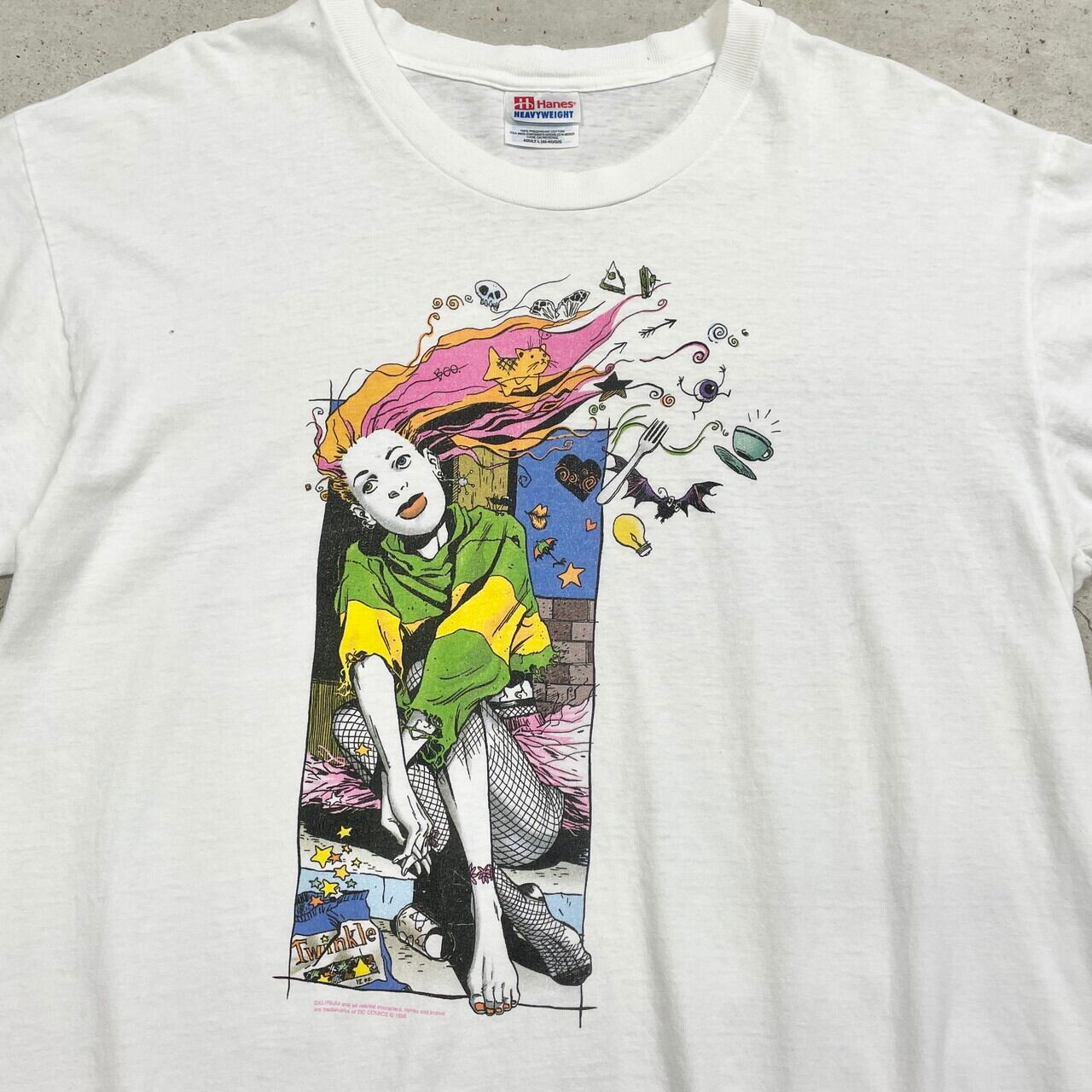 ■90年代 DC COMICS DELIRIUM SANDMAN キャラクタープリントTシャツ アメコミ 漫画 メンズL 古着 90s ヴィンテージ VINTAGE マンガ アート 白色【Tシャツ】/ホワイト 【ブランド】 Hanes 【サイズ】表記 L ※計測値をご確認ください。 着丈…68.5 身幅…57 肩幅…56 袖丈…20.5 【生産国】メキシコ製 【素材】コットン100% 【状態】全体的に小穴や擦れが御座います。 また生地が薄くなっております。 画像にてご確認ください。 【c250405014】 ※古着は洗濯、検品などのケアを行っております。(新品・デッドストックは洗濯していません。) ※モニターの発色により実物と異なる場合がございます。予めご了承ください。 ※ 海外直輸入USED品になります。