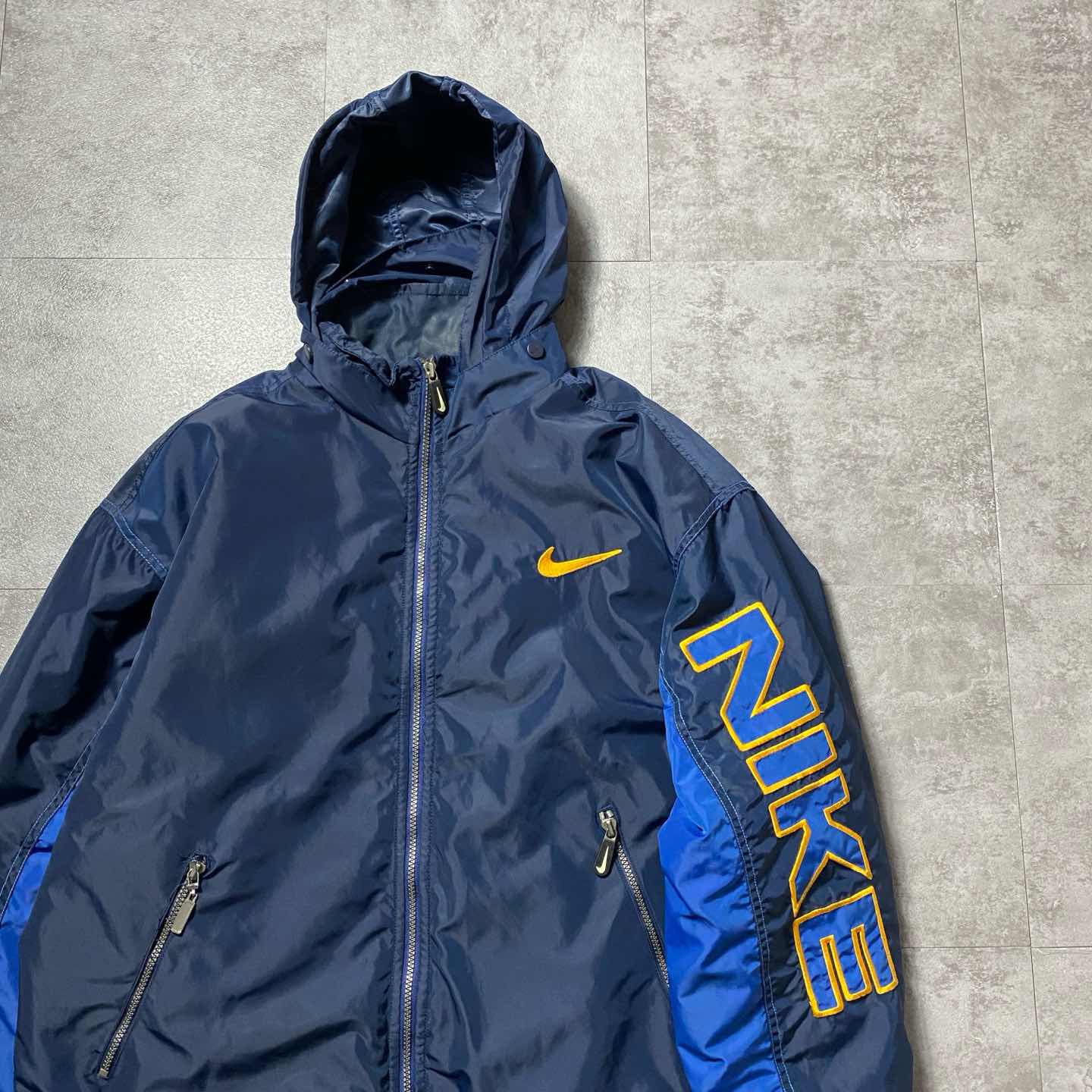 90s NIKE ナイキ 刺繍ワンポイント バックロゴ 中綿 フード ナイロンジャケット