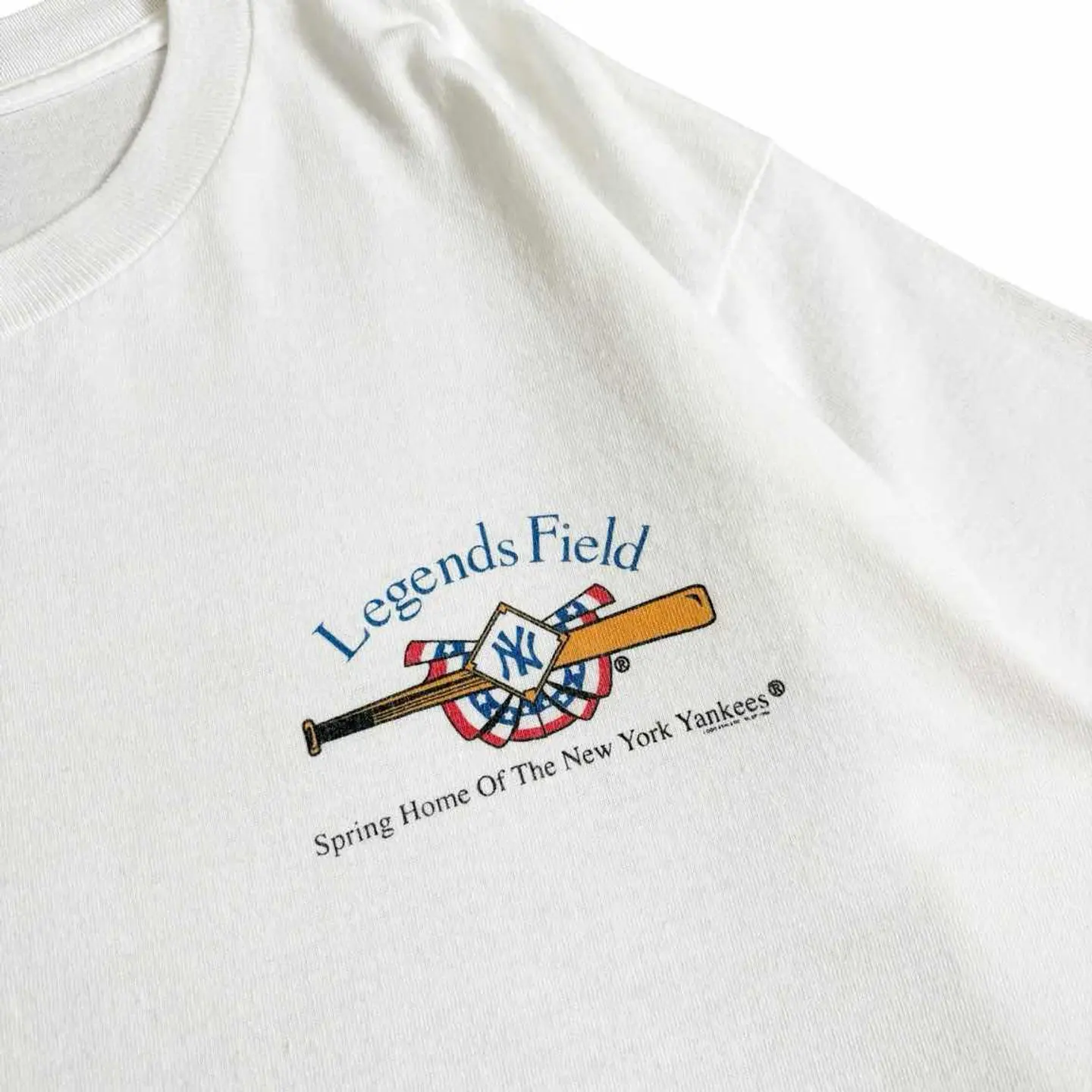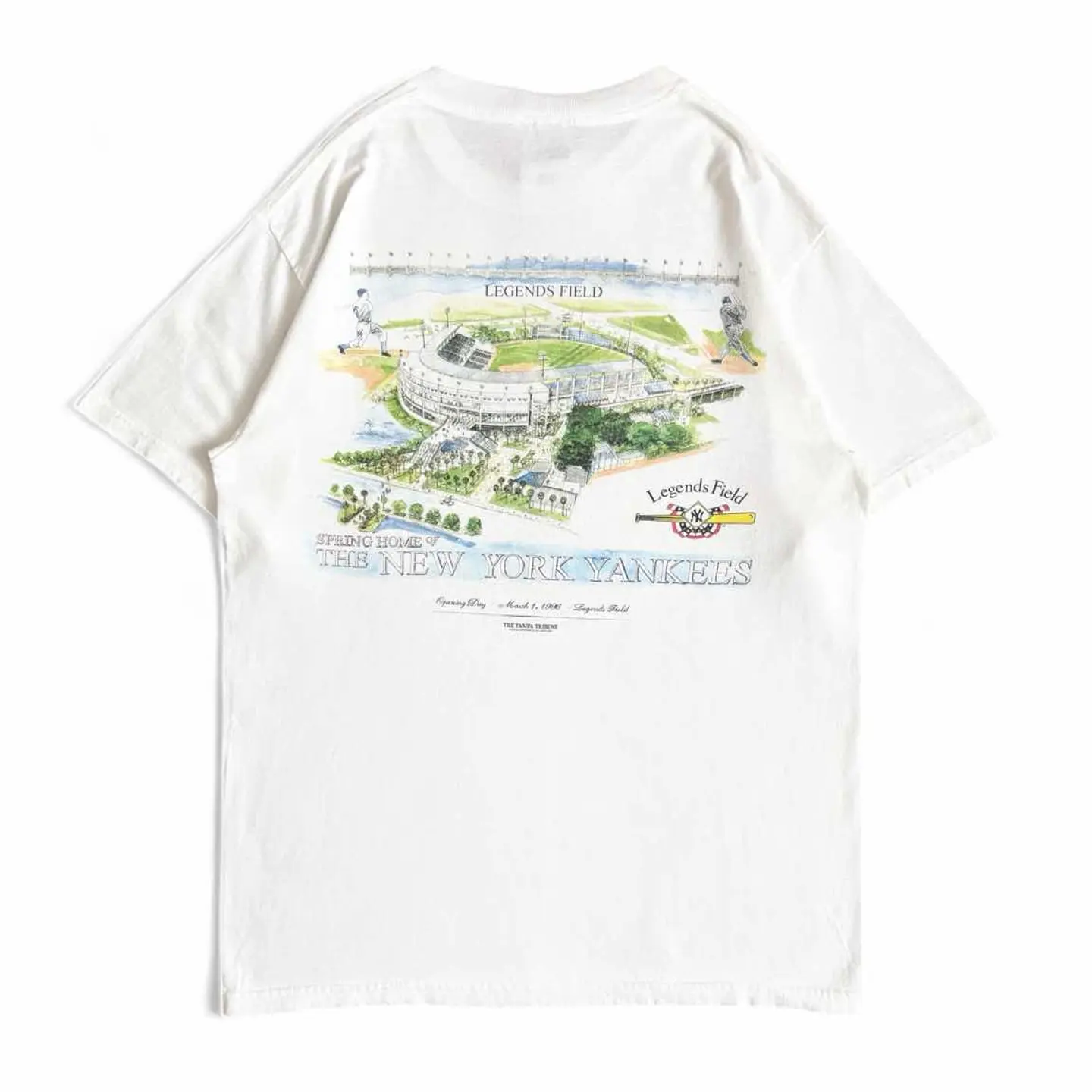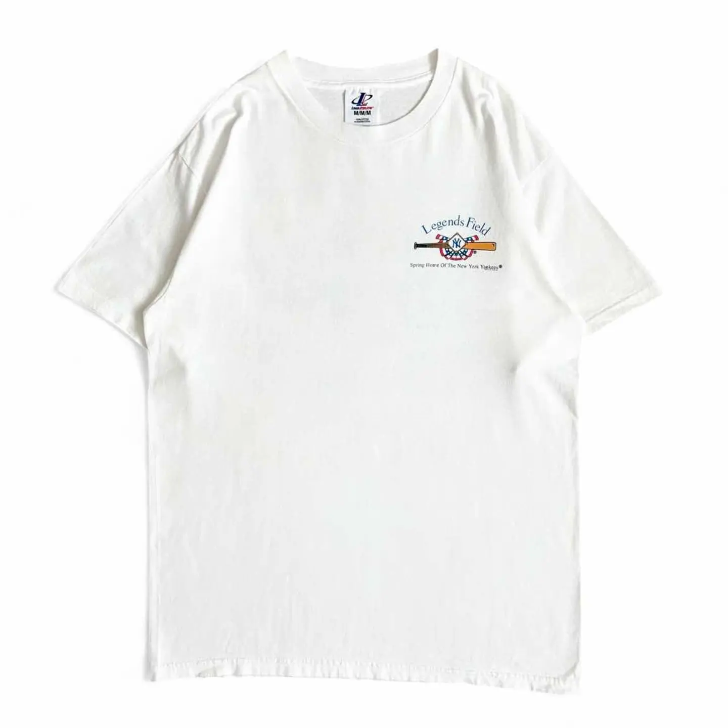 ○商品説明 LOGOATHLETIC ニューヨーク・ヤンキースの春季キャンプ地 「レジェンズ・フィールド(Legends Field)」が デザインされた一枚になります。 中央には「Legends Field(レジェンズ・フィールド)」の全景が美しいイラスト調で描かれており、緑豊かな周囲や観客席まで細かく描かれています。 左右には往年の選手と思われる野球選手のシルエットが 描かれ、野球の歴史と伝統を強調しています。 是非。 ○サイズ 表記M(L相当) 平置き ・肩幅48cm ・身幅51cm ・袖丈20cm ・着丈69cm ○商品の状態B A:使用感がほとんどなく、汚れやシミもなし B:多少使用感はあるが、汚れやシミも少ない C:使用感があり、汚れやシミがある D:使用感があり、大きな汚れや破れあり ○色 ホワイト #LOGOATHLETIC#ロゴアスレチック#Yankees#ヤンキース#Tシャツ