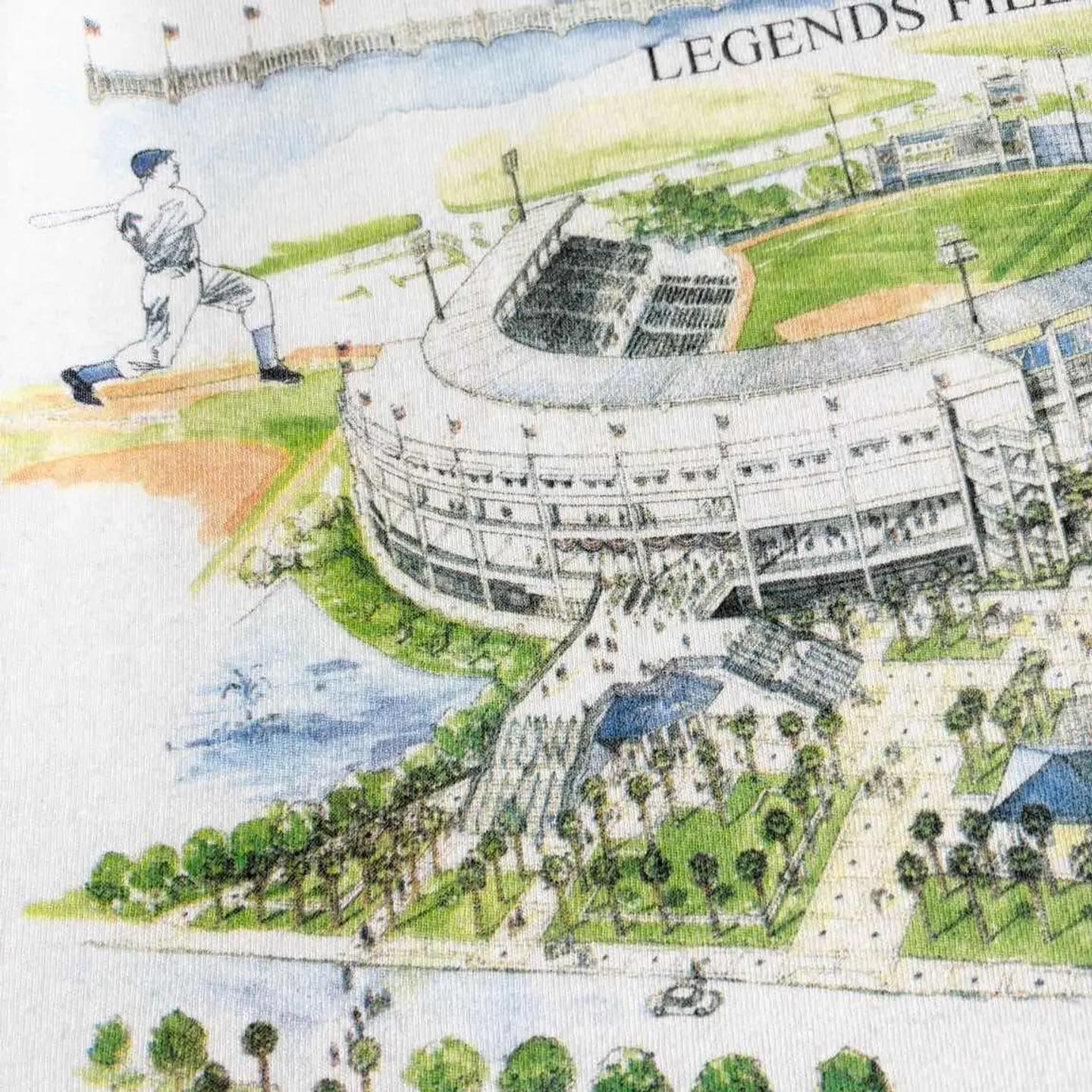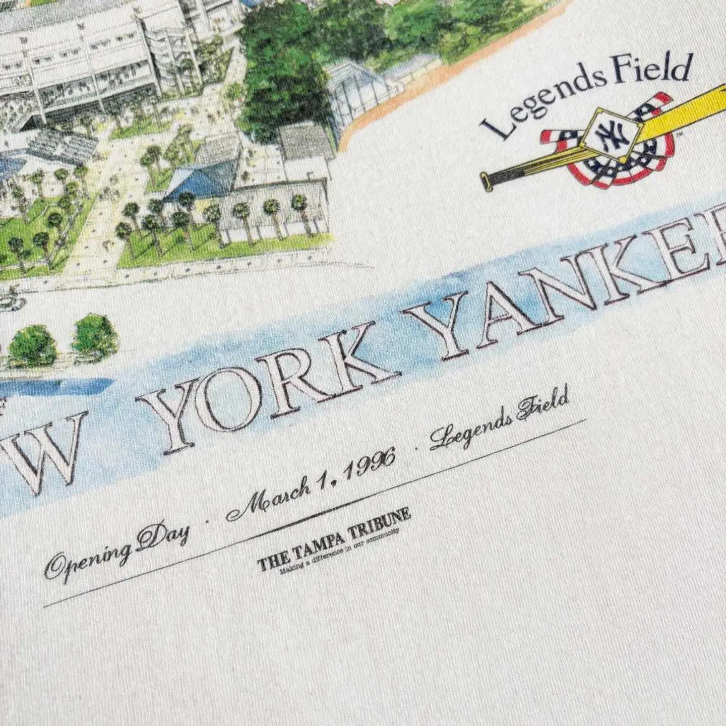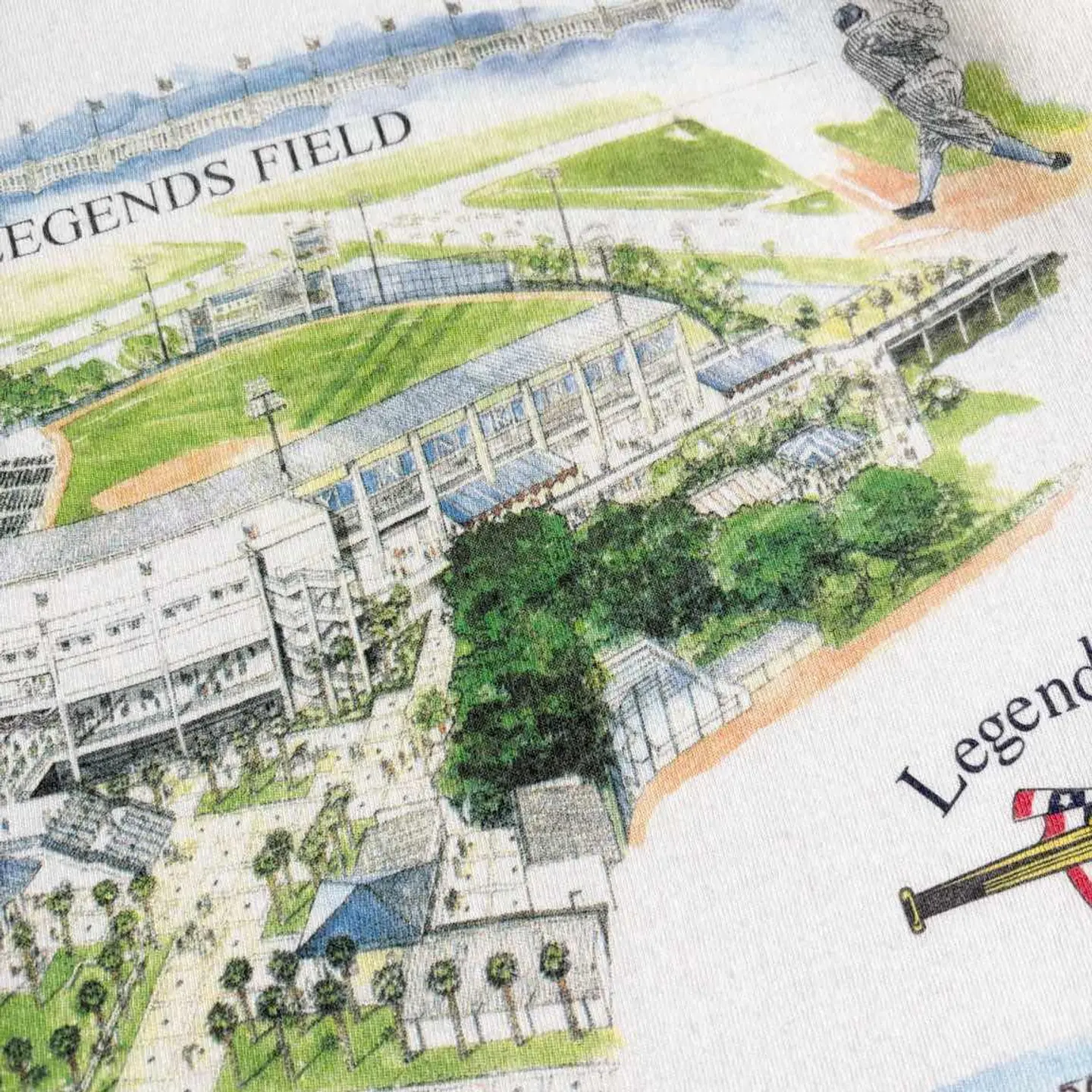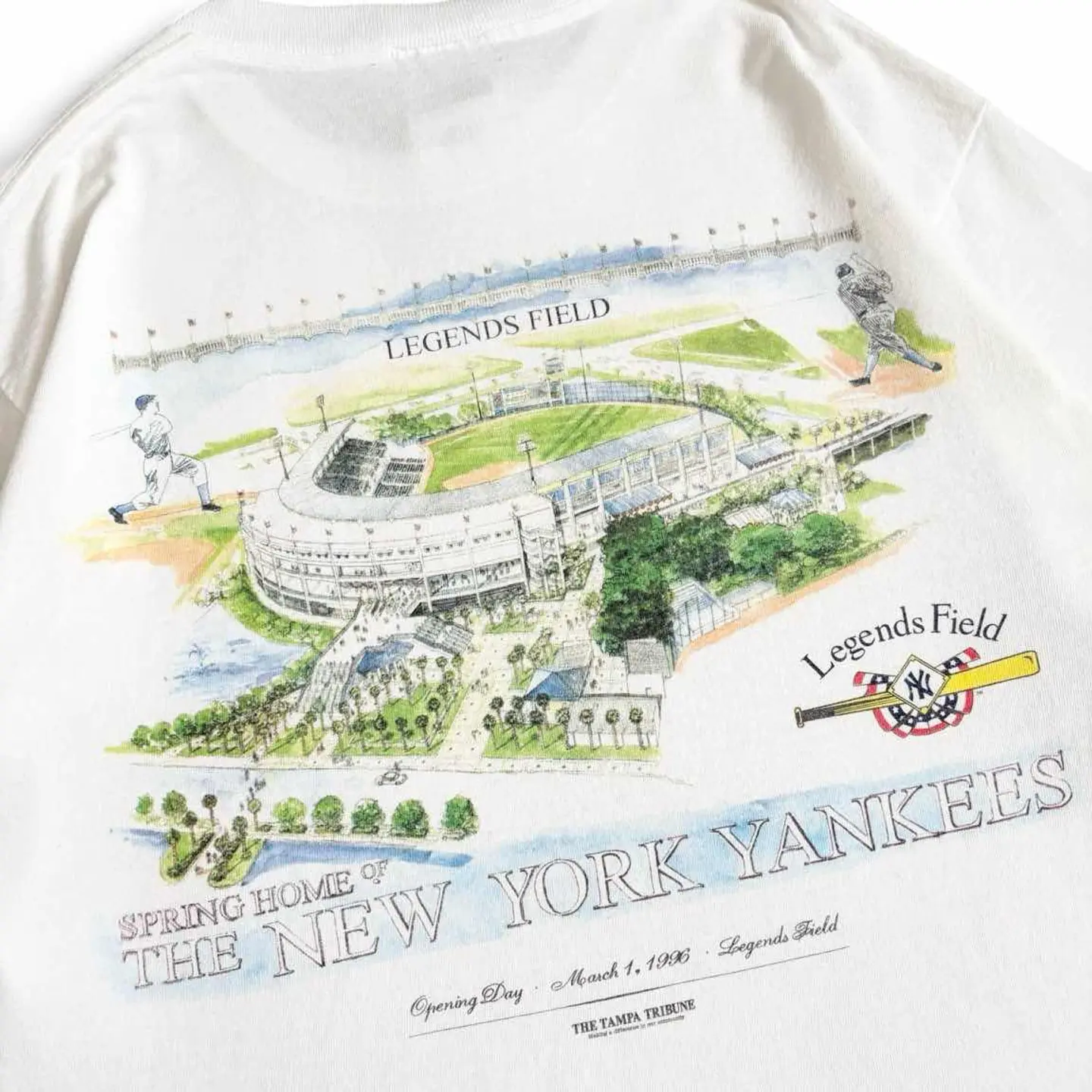○商品説明 LOGOATHLETIC ニューヨーク・ヤンキースの春季キャンプ地 「レジェンズ・フィールド(Legends Field)」が デザインされた一枚になります。 中央には「Legends Field(レジェンズ・フィールド)」の全景が美しいイラスト調で描かれており、緑豊かな周囲や観客席まで細かく描かれています。 左右には往年の選手と思われる野球選手のシルエットが 描かれ、野球の歴史と伝統を強調しています。 是非。 ○サイズ 表記M(L相当) 平置き ・肩幅48cm ・身幅51cm ・袖丈20cm ・着丈69cm ○商品の状態B A:使用感がほとんどなく、汚れやシミもなし B:多少使用感はあるが、汚れやシミも少ない C:使用感があり、汚れやシミがある D:使用感があり、大きな汚れや破れあり ○色 ホワイト #LOGOATHLETIC#ロゴアスレチック#Yankees#ヤンキース#Tシャツ