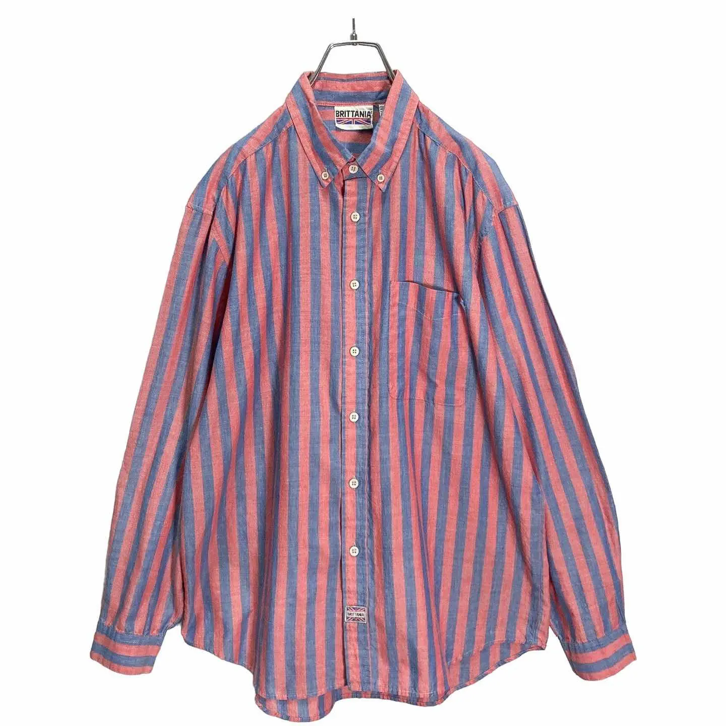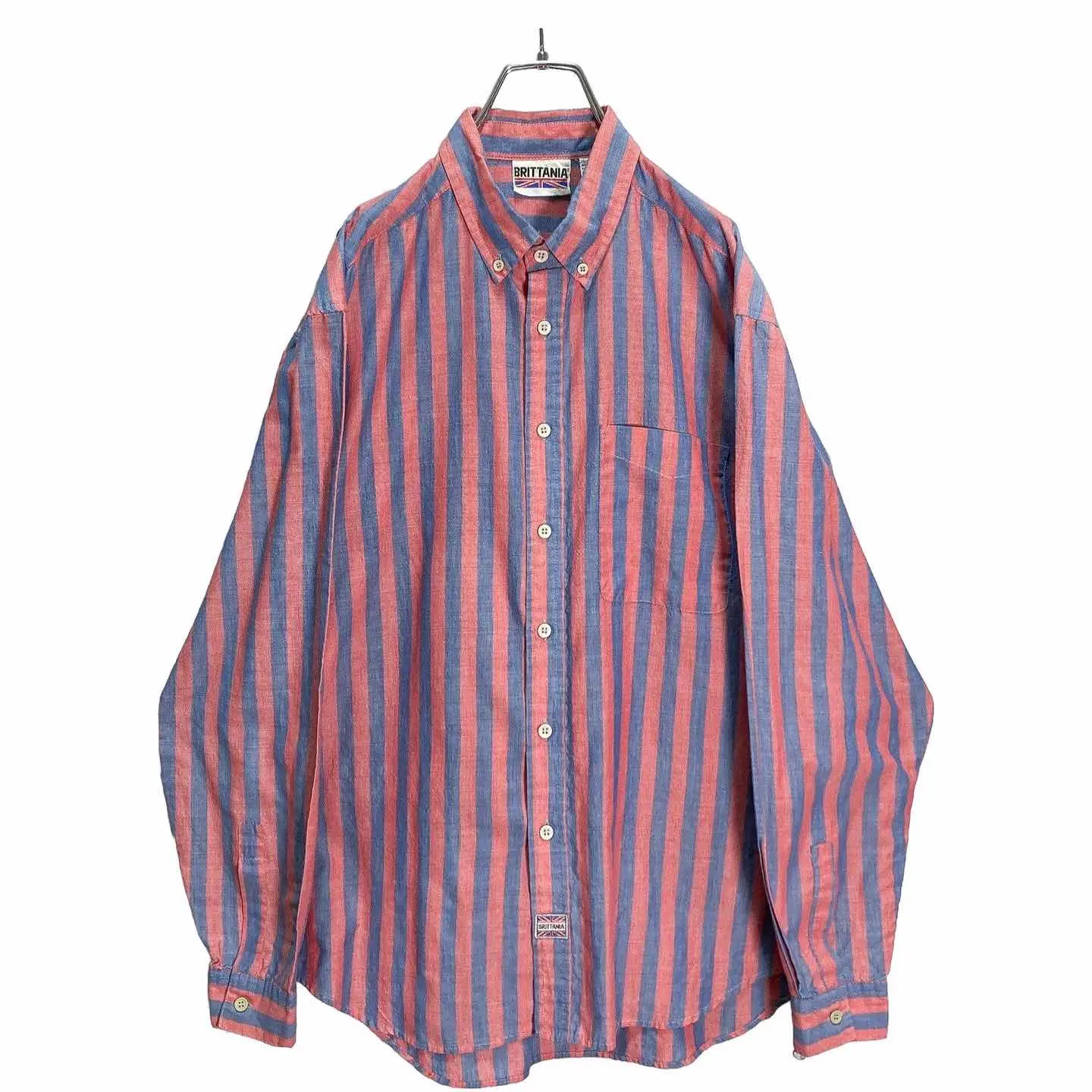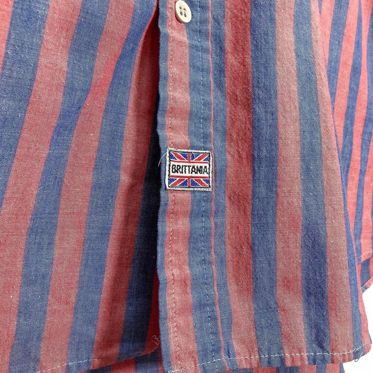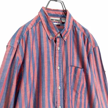 80-90s BRITTANIA Red × Blue L/S BD stripe shirt