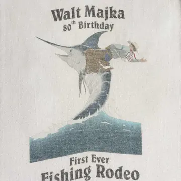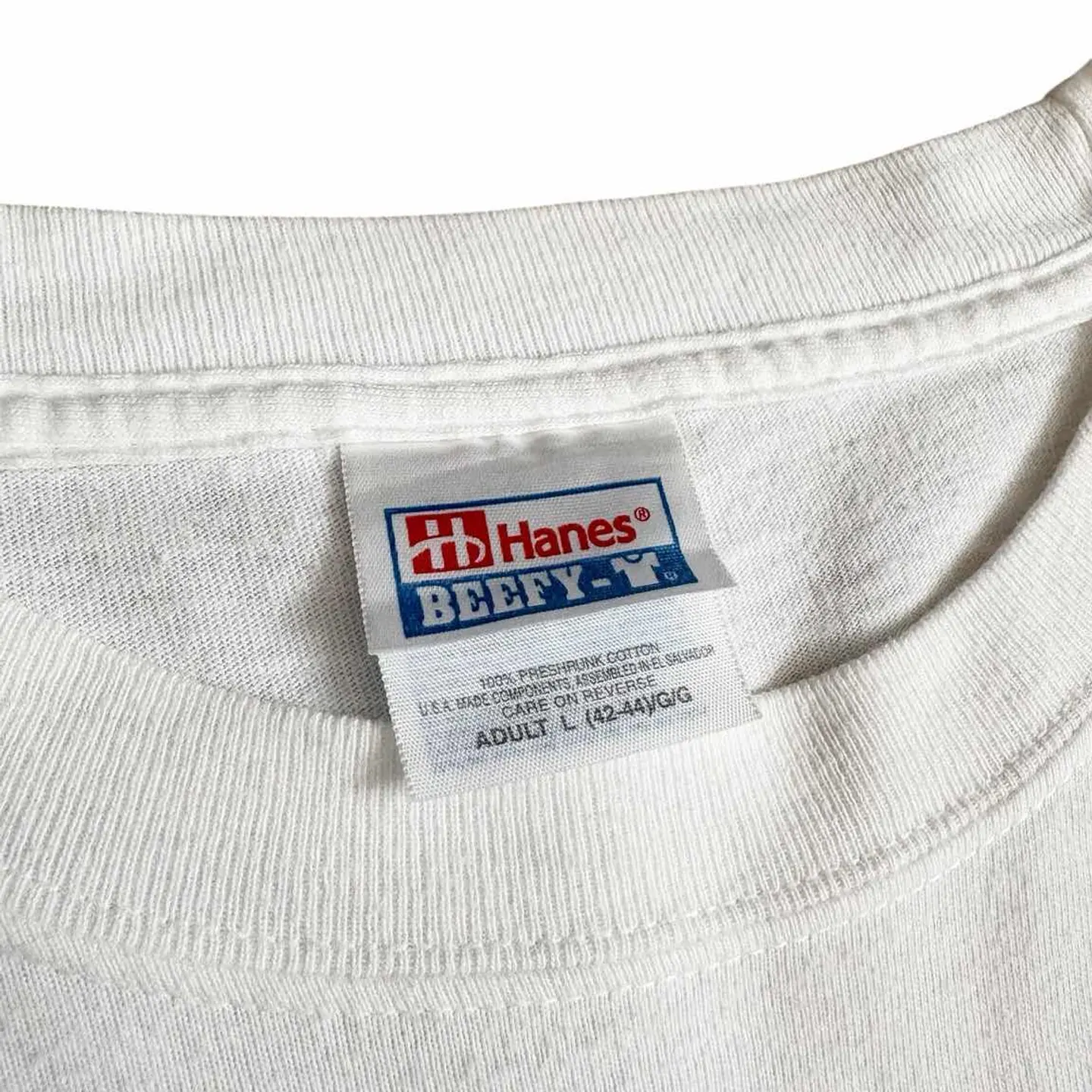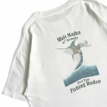 ○商品説明 Hanes ウォルト・マイカという人が 80歳の誕生日の時に 人生初の釣りロデオをしている プリントです。 めちゃくちゃですね笑 カーボーイの格好してカジキマグロに またがって釣りとかあり得ないですね笑 ビビッときた方は是非。 ○サイズ 表記 L 平置き ・肩幅56cm ・身幅55cm ・袖丈21cm ・着丈74cm ○商品の状態 B A:使用感がほとんどなく、汚れやシミもなし B:多少使用感はあるが、汚れやシミも少ない C:使用感があり、汚れやシミがある D:使用感があり、大きな汚れや破れあり ○色 ホワイト #Hanes#ヘインズ#Tシャツ