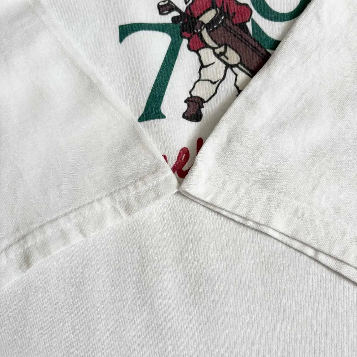 ○商品説明 GILDAN “Doubles Smash” はおそらくペアで行うゴルフの スポーツイベントだと思います。 男の子がゴルフバックを担いでいますね。 「at Pinehurst No. 9」 とあり、これはノースカロライナ州にある著名な ゴルフリゾート「Pinehurst(パインハースト)」の 9番コースを指しています。 Pinehurst No. 9 は、ジャック・ニクラス設計の チャンピオンシップコースで、Pinehurstリゾートの中でも格式あるコースの一つです。 ○サイズ 表記XL 平置き ・肩幅59cm ・身幅60cm ・袖丈20cm ・着丈73cm ○商品の状態 B A:使用感がほとんどなく、汚れやシミもなし B:多少使用感はあるが、汚れやシミも少ない C:使用感があり、汚れやシミがある D:使用感があり、大きな汚れや破れあり ○色 ホワイト #GILDAN#ギルダン #Tシャツ