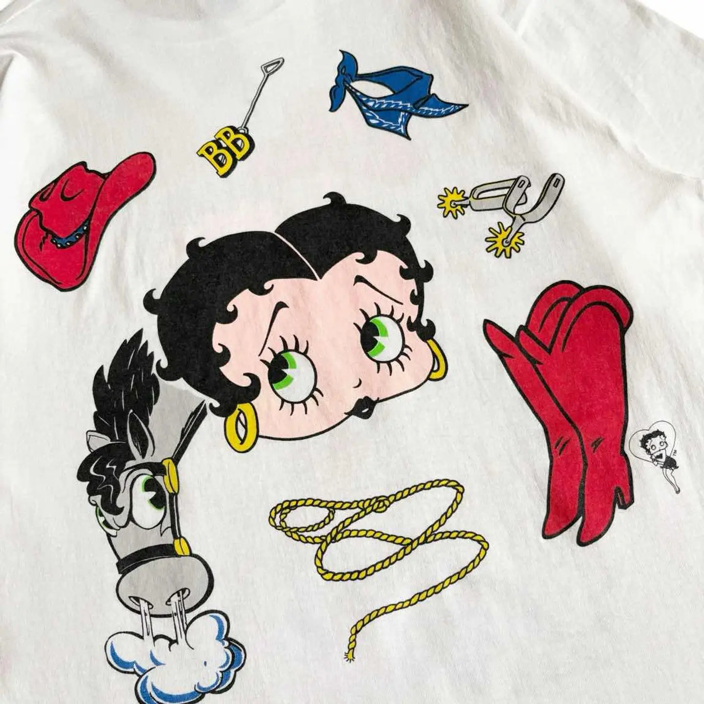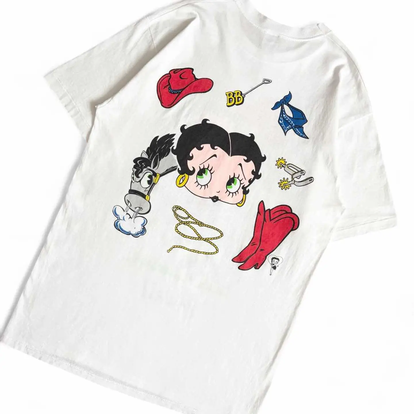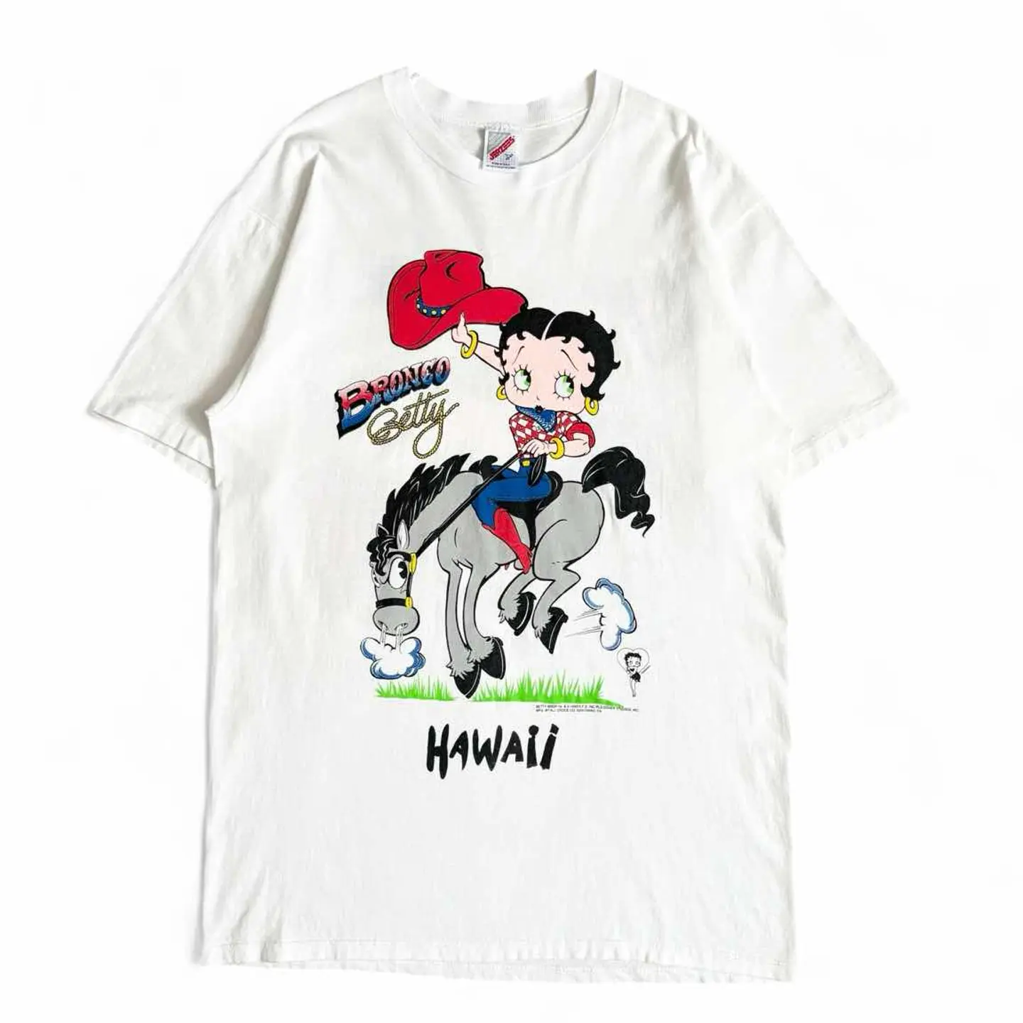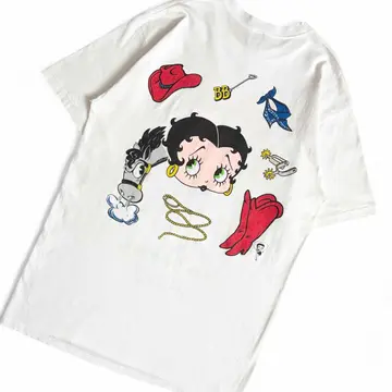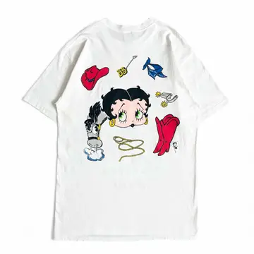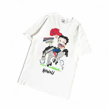 ○商品説明 90s USA製 JERZEES 両面プリントのベティちゃんになります。 サイズ、状態◎ お探しの方は是非。 ○サイズ 表記L 平置き ・肩幅50cm ・身幅51cm ・袖丈22cm ・着丈74cm ○商品の状態 B A:使用感がほとんどなく、汚れやシミもなし B:多少使用感はあるが、汚れやシミも少ない C:使用感があり、汚れやシミがある D:使用感があり、大きな汚れや破れあり ○色 ホワイト #90s#USA製#JERZEES#ジャージーズ#ベティちゃん#両面#Tシャツ