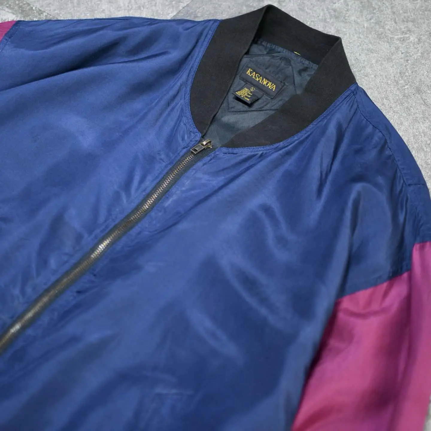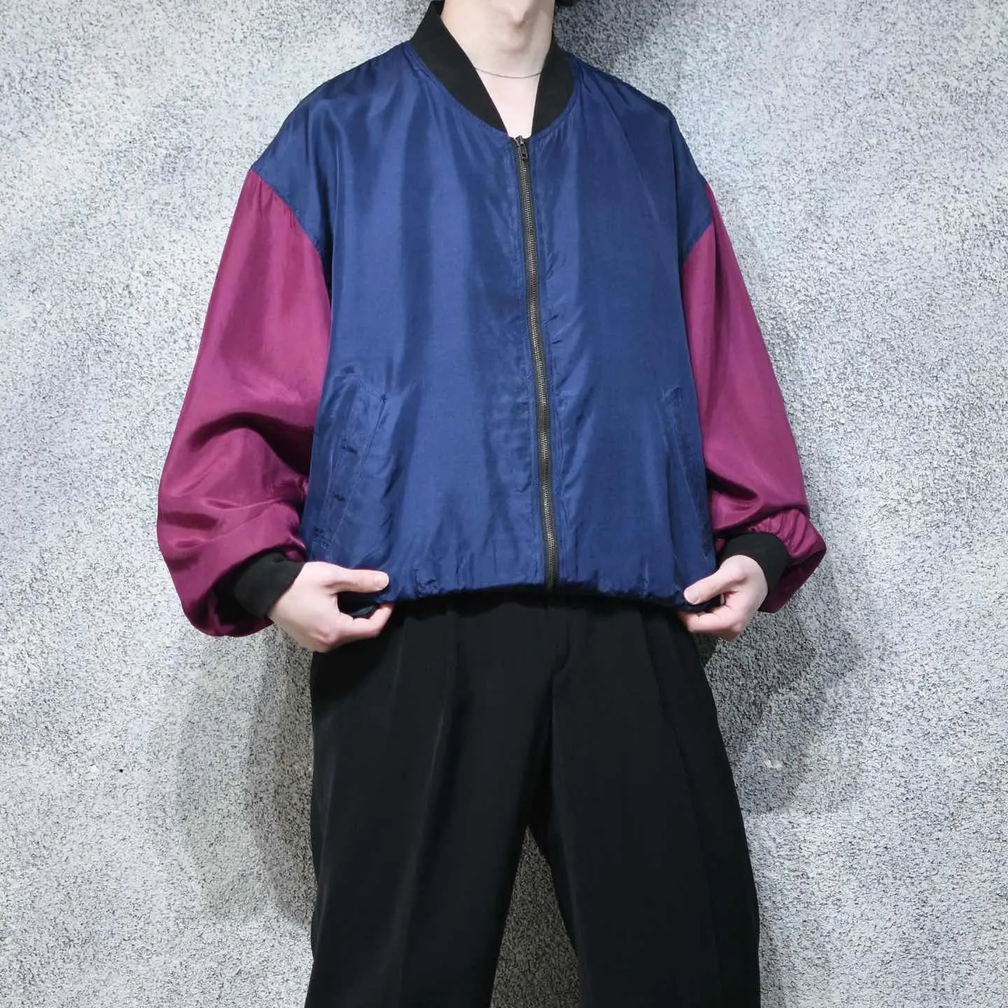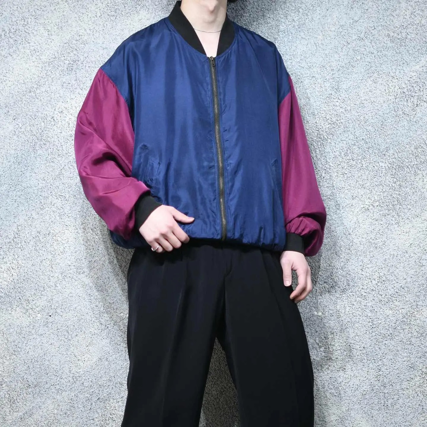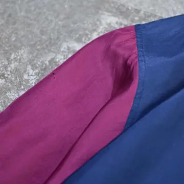 着丈71cm 肩幅63cm 身幅75cm 袖丈65cm fabric/silk 着用画像 177cm/64kg 寒暖差のある季節に、さっと羽織ることの出来る シルクブルゾン。 そんな使い勝手の良さと、シルクの上品な生地感、 なびくシルエットで、コーデ全体が昇華する逸品。 深みのある色合い2色の切り替えは、 繊細な発色も相まって、古着らしくていいなぁと。 ライトアウターの実用性を問われる、 至近の日本の四季ですが、結局のところ 手元に置くと手が伸びますし、何よりコーデの幅が 広がるカテゴリーではないでしょうか。 "実用性"ももちろん大事、されど"心躍る"を 大事にしたいなと。 ※右ポケット上、右アームにピンホールあり。 ※撮影状況により、実物と多少色が異なる場合が ございます。 ※古着を取り扱っているため、気づかない汚れや ほつれ等がある場合がございます。 予めご了承ください。 ※サイズは着用感で選んでおり、表記サイズではございません。 古着 オーバーサイズ old vintage ヴィンテージ used 80's 90's アメリカ古着 ユーロ古着 メンズ レディース POLO RALPH LAUREN Eddie Bauer OLD GAP Eddie Bauer LANDS' END ランズエンド LLBean エルエルビーン オールドギャップ エディーバウアー ラルフローレン ブルックスブラザーズ Brooks Brothers ネイビー ワインレッド バーガンディ 紺色 ma1 フライトジャケット などがお好きな方 #vintage #オーバーサイズ #old #used #90s #80s #古着 #ヴィンテージ #アメリカ古着 #ユーロ古着 #古着男子 #古着女子 #LLBean #エルエルビーン #EddieBauer #エディーバウアー #oldgap #オールドギャップ #LANDSEND #ランズエンド #NAUTICA #ノーティカ #ラルフローレン #POLORALPHLAUREN #ブルックスブラザーズ #BrooksBrothers #ブルゾン #シルクブルゾン #ma1 #フライトジャケット