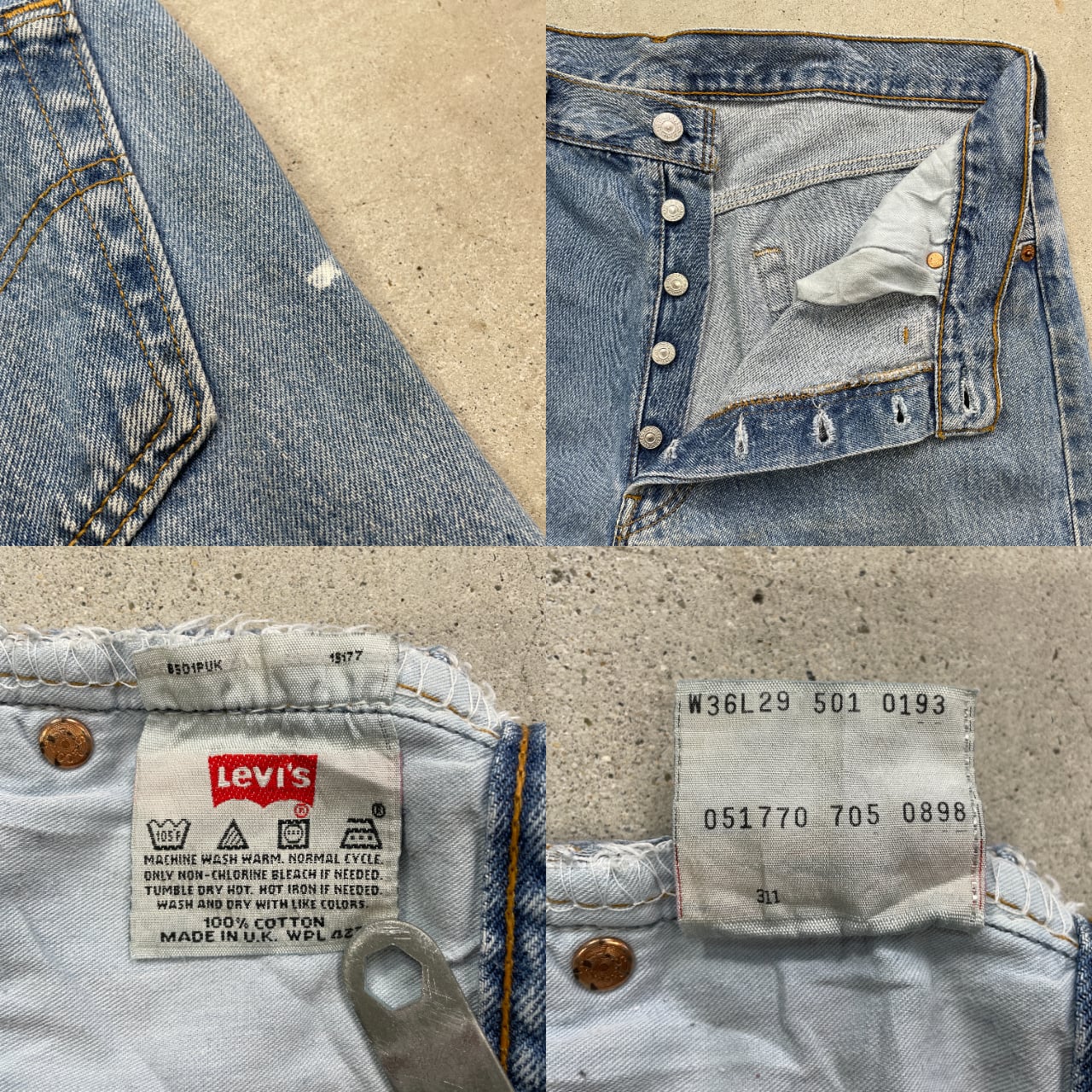 ■90年代 英国製 Levi's ユーロリーバイス 501 ストレート デニムパンツ ジーンズ メンズW36 古着 90s ヴィンテージ VINTAGE アメカジ クラッシュデニム ダメージデニム ヨーロッパ規格 【デニムパンツ】/ブルー 【ブランド】Levi's リーバイス ボタン裏刻印:311 【サイズ】表記 W36 L29 ※計測値をご確認ください。 ウエスト(平置き×2)…87 ワタリ幅…35 股上…30.5 股下…73 裾幅...21 【生産国】UK製 【素材】コットン100% 【状態】数か所汚れ、右バックポケット横に色抜け等の使用感がございます。 画像にてご確認ください。 【c250506008】 ※古着は洗濯、検品などのケアを行っております。(新品・デッドストックは洗濯していません。) ※モニターの発色により実物と異なる場合がございます。予めご了承ください。 ※ 海外直輸入USED品になります。