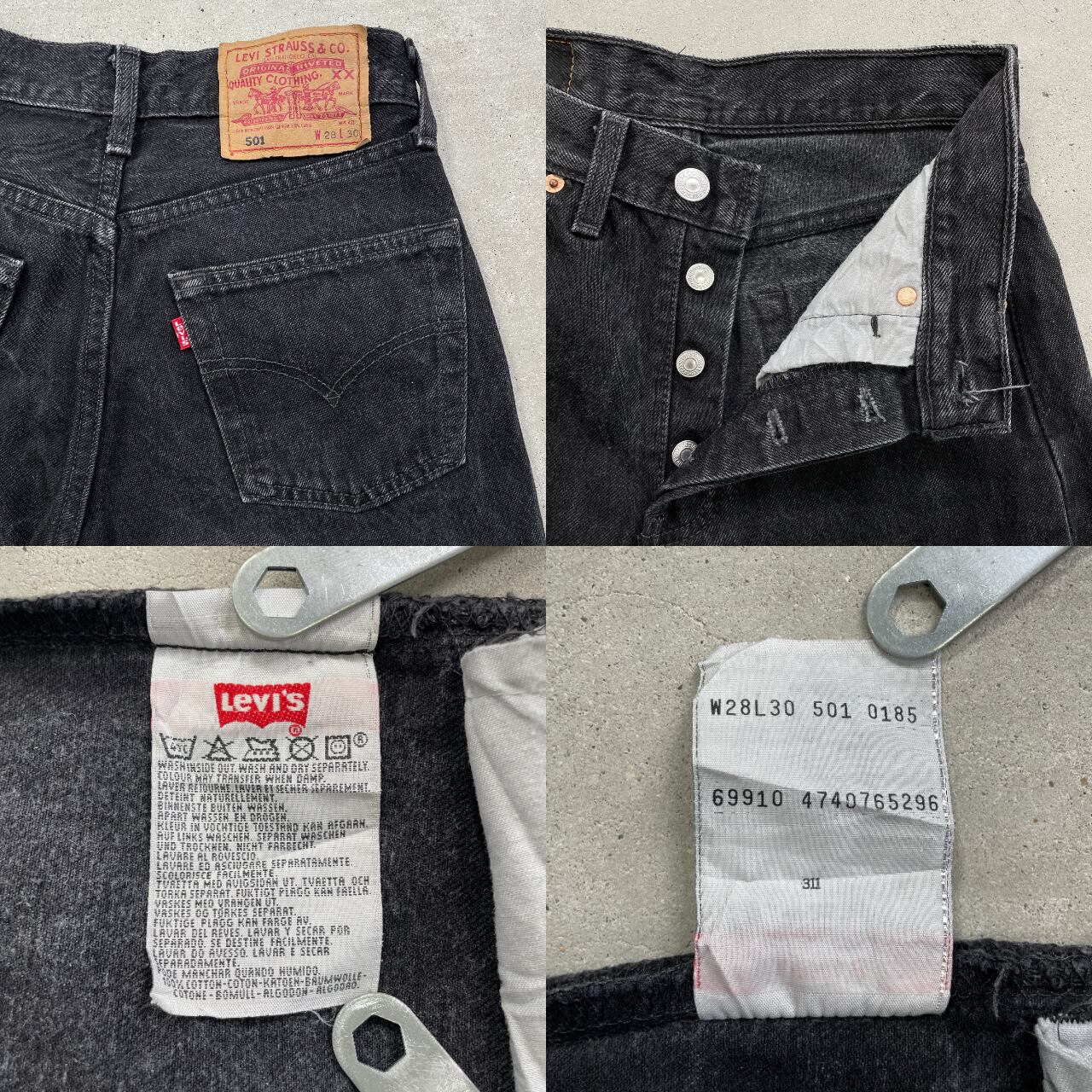 ■90年代 英国製 Levi's ユーロリーバイス 501 ブラックデニムパンツ メンズW28 レディース 古着 90s ヴィンテージ VINTAGE Y2K ジーンズ 黒【デニムパンツ】/ブラック ◎生産国の表記はございませんが、ボタン裏刻印"311"からおそらくUK製かと思われます。 【ブランド】Levi's リーバイス 【サイズ】表記 W28 L30 ※計測値をご確認ください。 ウエスト(平置き×2)…66 ワタリ幅…29 股上…27 股下…76 裾幅…18 【生産国】UK製 【素材】コットン100% 【状態】左膝付近に色落ち箇所等の使用感がございます。 画像にてご確認ください。 【c250502020】 ※古着は洗濯、検品などのケアを行っております。(新品・デッドストックは洗濯していません。) ※モニターの発色により実物と異なる場合がございます。予めご了承ください。 ※ 海外直輸入USED品になります。